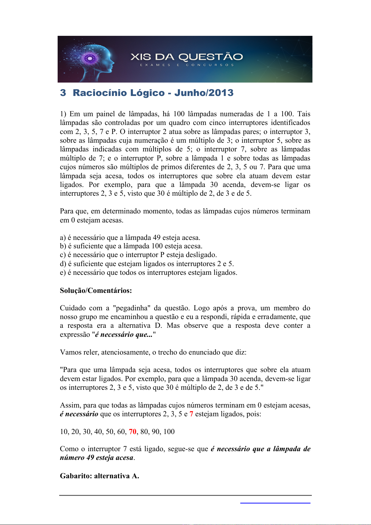 3 Raciocínio Lógico - Junho/2013