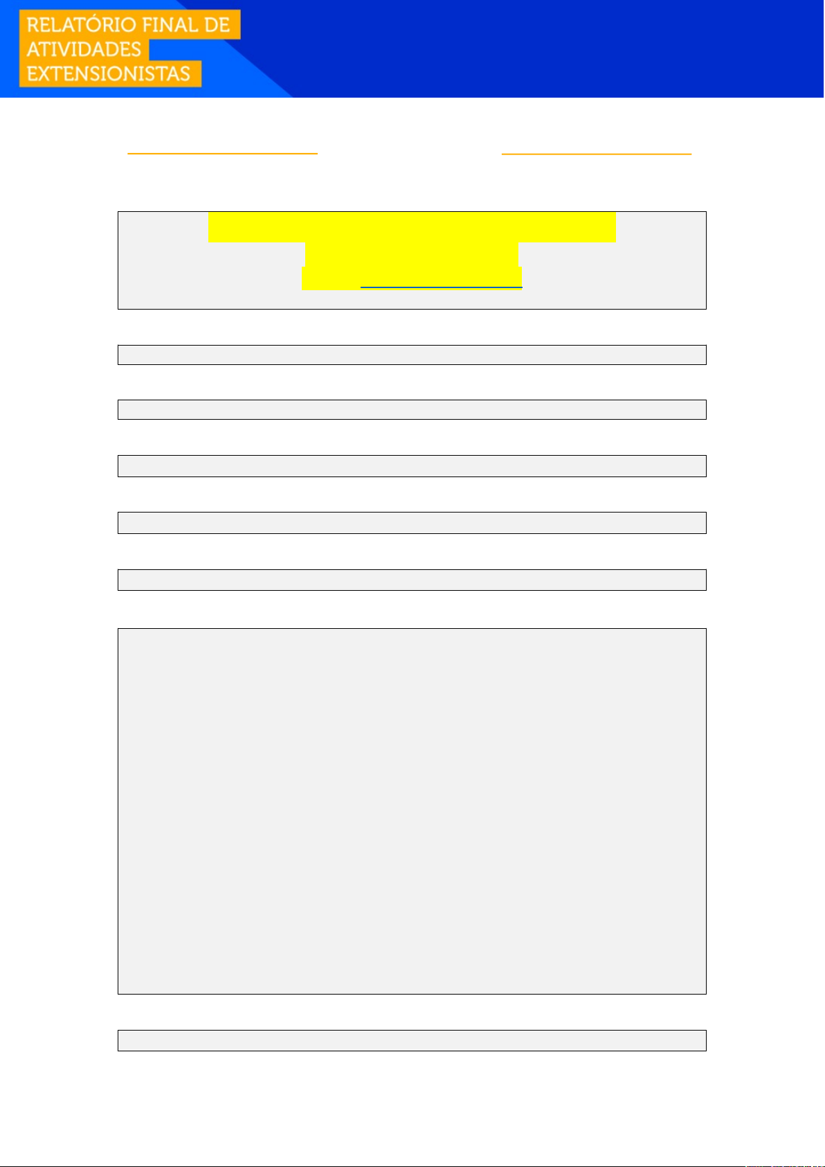 DADOS DO ALUNO: Aluno: [Nome completo] Caso tenha interesse entre em contato: WhatsApp: 73 9 9912 5456 E-mail: raildoyy@gmail.com RA: [Número do RA do aluno] POLO / UNIDADE: CURSO: FISIOTERAPIA - BACHARELADO COMPONENTE CURRICULAR: PROJETO DE EXTENSÃO III - FISIOTERAPIA PROGRAMA DE EXTENSÃO: PROGRAMA DE SUSTENTABILIDADE. FINALIDADE E MOTIVAÇÃO: O programa extensionista voltado as ações de Sustentabilidade do curso de Fisioterapia possui a finalidade de apoiar a comunidade por meio da disseminação do conhecimento adquirido no curso, priorizando o cuidado e compreensão do meio ambiente. Tais ações poderão reduzir impactos socioambientais negativos e criar uma cultura regenerativa para gerar impactos positivos que irão refletir no meio ambiente, que são importantes para possibilitar uma continuidade do uso de recursos naturais de forma sustentável. Ao identificar as problemáticas ambientais da comunidade os alunos terão a motivação para efetuar as ações de apoio relacionadas ao curso, pelas quais poderão ser desenvolvidas competências técnicas e soft skills específicas. Os conteúdos programáticos sugeridos para correlacionar as ações são: Atenção fisioterapêutica nos diversos níveis de atenção a saúde, fisioterapia e inovações, saúde pública, vigilância em saúde, saúde do trabalhador, saúde neurofuncional. Os locais que poderão contemplar esse projeto são: Parcerias com a Prefeitura e atuação em Unidades Básicas de Saúde; Associações de Bairros; Clínicas de Saúde Públicas e Privadas; Hospitais; Centros de Saúde; Spas; Salões de Beleza; Centros Estéticos; Casas de Repouso; Instituições de Longa Permanência para Idosos; Creches; Templos Religiosos; Escolas; ONGs. COMPETÊNCIAS: I - Avaliar, de forma integral, o ser humano, no âmbito individual ou coletivo; II - Orientar usuários e cuidadores em relação à atenção com a saúde e à adesão ao tratamento fisioterapêutico; III - Atuar como agente de educação em saúde, no âmbito individual e coletivo, nos diferentes níveis de atenção à saúde; IV - Trabalhar de forma interprofissional nos diferentes níveis de atenção à saúde. PERFIL DO EGRESSO: O perfil do egresso do curso de Fisioterapia idealizado pela IES proporciona a formação de um profissional que, de acordo com as determinações legais do curso de Bacharelado em Fisioterapia, tenha uma formação generalista e humanista, com habilidades e conhecimentos para agir eticamente no desenvolvimento da promoção, manutenção e prevenção da saúde do indivíduo e da comunidade, na recuperação do movimento do corpo humanos em todas as suas formas de expressão e potencialidades, conduzindo o processo desde o diagnóstico físico e funcional até a escolha da conduta fisioterapêutica pertinente a cada situação, atento às alterações patológicas, cinético funcionais e suas repercussões psíquicas e orgânicas e no gerenciamento do trabalho e os recursos materiais de modo compatível com as políticas públicas de saúde vigentes. SOFT SKILLS (COMPETÊNCIAS SOCIOEMOCIONAIS): Análise e resolução de problemas Planejamento e organização Comunicação Interpessoal OBJETIVOS DE APRENDIZAGEM: O objetivo da extensão universitária em Programa de Sustentabilidade do curso de Fisioterapia, está relacionado a transferir para a sociedade os conhecimentos desenvolvidos no curso mediante projetos e ações de apoio na resolução de diversas problemáticas, e com isso a possibilidade de potencializar a geração de conhecimentos aplicados, utilizados na resolução dos problemas relacionados ao meio ambiente com interação aos conteúdos específicos de radiologia estudados no curso, trazendo mais elementos para o desenvolvimento das habilitados do egresso. CONTEÚDOS: I - Epidemiologia; II - Políticas de saúde; III - Determinantes do processo de saúde-doença; IV - Níveis de atenção à saúde. INDICAÇÕES BIBLIOGRÁFICAS: MOREIRA, Taís Campos. Saúde Coletiva. Porto Alegre: Grupo A, 2018. COSTA, Aline do Amaral Zils; HIGA, Camila Braga de Oliveira. Vigilância em saúde. Porto Alegre: SAGAH, 2018. TORRES, Diego de Faria Magalhães. Fisioterapia: guia prático para a clínica. Rio de Janeiro: Guanabara Koogan, 2006. RELATÓRIO FINAL: Aluno e Aluna, após realizar suas atividades de extensão, é necessário que você o formalize, enviando esse Relatório Final para ser avaliado junto ao seu Ambiente Virtual (AVA) e também para você poder comprovar sua atuação. Para o preenchimento, busque as anotações junto ao TEMPLATE PCDA para auxiliar na apresentação das atividades desenvolvidas. Todos os campos são de preenchimento obrigatório! DESCRIÇÃO DA AÇÃO COM RESULTADOS ALCANÇADOS Metas dos Objetivos de Desenvolvimento Sustentável (ODS) aderentes a este projeto: CAMPO OBRIGATÓRIO – busque no seu Template PDCA quais Metas você selecionou como aderentes ao seu projeto, conforme cada Objetivo de Desenvolvimento Sustentável (ODS) da Organização das Nações Unidas (ONU) que você explorou no seu planejamento. Liste as Metas selecionadas (pelo menos uma opção): Local de realização da atividade extensionista: Durante a ação: Caso necessário, houve mudança de estratégia para alcançar o resultado: Resultado da ação: Conclusão: Depoimentos (se houver): RELATE SUA PERCEPÇÃO DAS AÇÕES EXTENSIONISTAS REALIZADAS NO PROGRAMA DESENVOLVIDO: CAMPO OBRIGATÓRIO – relate em no mínimo 15 (quinze) linhas sua experiência com as ações extensionistas. O texto deve ser de sua autoria e inédito, evite plágio. Questões norteadoras: (1) Você notou que suas habilidades profissionais foram aprimoradas, com a atuação nas ações extensionistas? (2) Você identificou melhoria/resolução do problema identificado? (3) Você conseguiu articular os conhecimentos adquiridos no curso com as ações extensionistas? Ao escrever seu texto evite deixá-lo em forma de respostas as questões nortead
