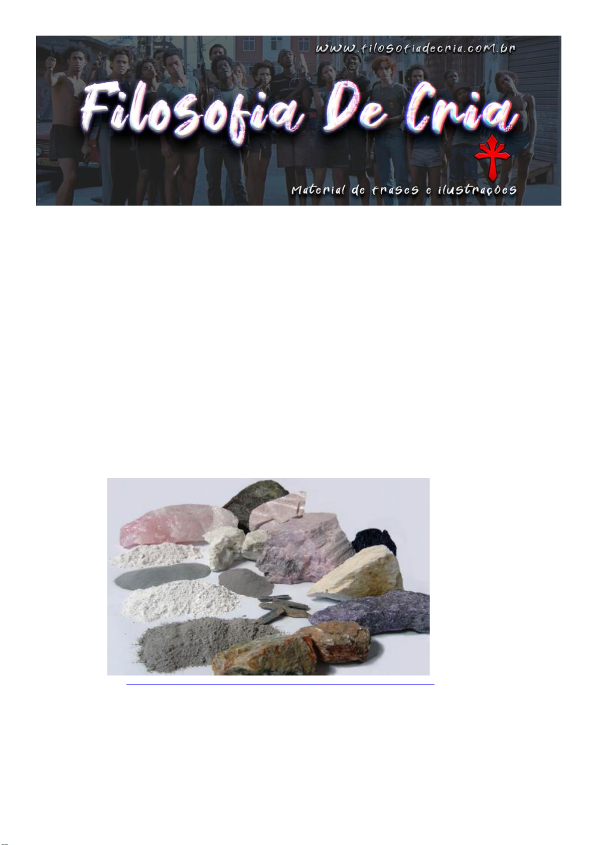 #G08 Mineração [GEOGRAFIA FÍSICA] Vamos discutir sobre os tipos de recursos minerais disponíveis no Universo, algumas aplicações e um pouco sobre a mineração no Brasil. Introdução Minerais são um tipo de materiais sólidos inorgânicos. Combinação de vários elementos químicos. Minério é o que corresponde a um grupo específico de rochas ou minerais. Possuindo valor econômico. Esses minerais estão presentes em praticamente todos os materiais da indústria. Edificações civis, concreto, metais, vidros, pisos, cerâmicas, fibras de celulosa, moedas, etc. Recursos Minerais De acordo com o USGC (United States Geological Survey), recursos são a concentração natural de material sólido, líquido, ou gasoso na Terra. Muitos minérios podem ser lavrados, ou extraídos de forma simples. Ação manual e rudimentar. Link: https://industriahoje.com.br/novo-mineral-descoberto-pode-ter-aplicacoes-tecnologicas Objetivos principais da mineração: Suprir as necessidades internas. Geração de recursos financeiros. Cada mineral tem um valor diferente de mercado. Baseado em pureza e raridade. Geralmente, os mais baratos são devido à grande abundância, ou qualidade menor. Mesmo sendo um dos maiores exportadores mundiais, o Brasil importa alguns minerais. Fosfato, potássio, enxofre, cobre, carvão e chumbo. https://industriahoje.com.br/novo-mineral-descoberto-pode-ter-aplicacoes-tecnologicas Tipos de Minerais Metálicos Mercúrio. Link: https://pt.dreamstime.com/myrickite-um-min%C3%A9rio-do-merc%C3%BArio-image112003577 Ferro. Alumínio. Cromo. Manganês. Titânio. Magnésio. Cobre. Chumbo. Zinco. Tungstênio. Ouro. Link: http://www.megatimes.com.br/2017/03/Ouro-Solo.html Estanho. Prata. Urânio. Etc. Não metálicos Cloreto de sódio. Link: https://eagorainst.wordpress.com/2013/02/06/e-o-sodiosal/ Fosfatos. https://pt.dreamstime.com/myrickite-um-min%C3%A9rio-do-merc%C3%BArio-image112003577 http://www.megatimes.com.br/2017/03/Ouro-Solo.html https://eagorainst.wordpress.com/2013/02/06/e-o-sodiosal/ Nitratos. Enxofre. Link: https://www.manualdaquimica.com/quimica-geral/enxofre.htm Areia. Calcário. Petróleo. Carvão mineral. Link: http://www.sobregeologia.com.br/2018/04/carvao-mineral.html?m=0 Água. Etc. Usos de Minerais Os seres humanos precisam de diversos minerais para uso no cotidiano e para o funcionamento correto do corpo. Temos ferro no sangue, potássio nas células, calcificações de apatita no cérebro, músculos e pulmões. O uso desses recursos não é uniforme entre toda a população mundial. Pessoas mais ricas usufruem muito mais que o restante. 1/3 da população mundial utiliza ~85% dos recursos minerais do planeta. Os outros 15% dos recursos é divido entre os 2/3 restantes da população. Alimentação Link: https://www.opopular.com.br/noticias/ludovica/blogs/2.233701/nutricomunica%C3%A7%C3%A3o-1.944185/sais-minerais- 1.987562 https://www.manualdaquimica.com/quimica-geral/enxofre.htm http://www.sobregeologia.com.br/2018/04/carvao-mineral.html?m=0 https://www.opopular.com.br/noticias/ludovica/blogs/2.233701/nutricomunica%C3%A7%C3%A3o-1.944185/sais-minerais-1.987562 https://www.opopular.com.br/noticias/ludovica/blogs/2.233701/nutricomunica%C3%A7%C3%A3o-1.944185/sais-minerais-1.987562 Agricultura (Fertilizantes). Fosfato, potássio, nitrato, calcário. Condimentos (Temperos). Sal de cozinha. Indústria Alimentícia (Embalagens). Estanho, ferro, caulim, talco. Higiene e Saúde Link: https://www.minasjr.com.br/minerais-em-cosmeticos/ Indústria Cosmética (Higiene e Maquiagem). Caulim, talco, alumínio, chumbo, quartzo, diatomito. Indústria Farmacêutica (Remédios) Sais minerais, petróleo, diatomito, calcita. Indústria Odontológica (Dentes) Feldspato, caulim, quartzo. Construção Civil Link: https://www.bemparana.com.br/noticia/construcao-civil-e-restaurantes-impulsionam-empregos-em- curitiba#.YVIXHLhKi00 Habitação (Moradia). Ferro, zinco, argila. Indústria de tintas (Corantes) Hematita, grafita, carvão. Consequências da Mineração Link: https://www.geoanalisys.com/geofisica-aplicada-na-mineracao-como-se-da-essa-relacao/ https://www.minasjr.com.br/minerais-em-cosmeticos/ https://www.bemparana.com.br/noticia/construcao-civil-e-restaurantes-impulsionam-empregos-em-curitiba#.YVIXHLhKi00 https://www.bemparana.com.br/noticia/construcao-civil-e-restaurantes-impulsionam-empregos-em-curitiba#.YVIXHLhKi00 https://www.geoanalisys.com/geofisica-aplicada-na-mineracao-como-se-da-essa-relacao/ Impactos Positivos Desenvolvimento da sociedade moderna. Geração de riquezas e recursos. Ampliação da construção civil. Transformação em setores da indústria. Desenvolvimento regional. Incentivo de outras atividades econômicas. Arrecadação de tributos aos governos. Impactos Negativos Degradação ambiental é a principal consequência. Poluição do ar, águas, sonora e visual. Modificação da evolução natural da superfície terrestre. Devastação da fauna e da flora. Link: https://www.institutoclaro.org.br/educacao/para-ensinar/planos-de-aula/mineracao-meio-ambiente-e-consumismo-alguma- relacao/ A maior parte dos impactos negativos podem ser minimizados. Extração previamente planejada. Harmonização entre mineração e meio ambiente. Proteção de reservas minerais. Integração do setor mineral e economias. Relação conservação e desenvolvimento. Respeito à capacidade do planeta. Comércio Mundial de Minerais Os minerais ficam localizados de forma irregular pelas regiões do planeta. Produção de Ferro O ferro é a base da indústria moderna. Link: https://www.bahiadevalor.com.br/2019/11/licitacao-para-extracao-de-minerio-de-ferro-em-ibipitanga-sera-no-dia- 10/ Usado na fabricação de aço e ferroligas. Maiores produtores são Austrália, Brasil, China, Índia e Rússia. https://www.institutoclaro.org.br/educacao/para-ensinar/planos-de-aula/mineracao-meio-ambiente-e-consumismo-alguma-relacao/ https://www.institutoclaro.org.br/educacao/para-ensinar/planos