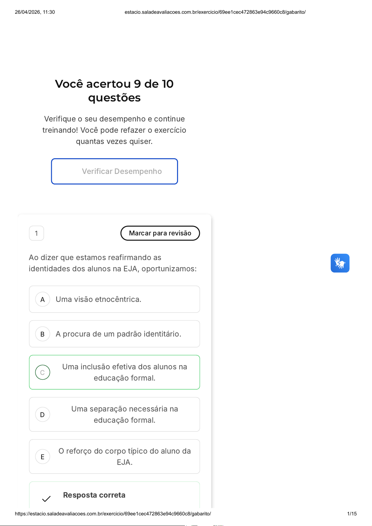 https://estacio.saladeavaliacoes.com.br/exercicio/69ee1cec472863e94c9660c8/gabarito/ 15/15