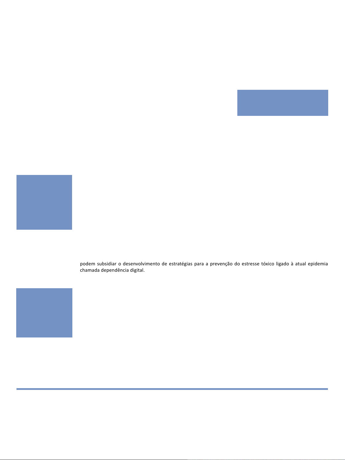 1 Residência Pediátrica; 2022: Ahead of Print. Exposição e uso de dispositivo de mídia na primeira infância Maria do Carmo Batista Arantes1, Eduardo Alberto de-Morais1 1 Escola Superior de Ciências da Saúde - ESCS/SES-DF, Programa de Residência Médica em Pediatria - Brasília - Distrito Federal - Brasil. Endereço para correspondência: Maria do Carmo Batista Arantes. Escola Superior de Ciências da Saúde - ESCS. SMHN Quadra 3 Conjunto A Bloco 01 Edifício Fepecs, SMHN Conjunto A Bloco 01 Edifício Fepecs, Asa Norte, Brasília, DF, Brasil. CEP: 70710-907. E-mail: amcarantes@gmail.com Abstract Objective: This research aims to evaluate the exposure and characterize the use of media devices by children from 0 to 6 years of age treated at the pediatric unit of a Regional Hospital in the Federal District. Methods: This is a cross- sectional, descriptive, and investigative study, conducted through an interview applied to volunteers responsible for the children. The data obtained were tabulated and treated to determine the frequencies of each studied variable. Results: 102 interviews were performed, and all results were included in the study. It was found that all children surveyed used media devices daily. Approximately 83% of them started using it before 1 year of age and 17% between 1 and 2 years old. 28.4% had their own media devices. The profile on social networks was prevalent in 13% of children. 93.1% of respondents stated that they had never received guidance from pediatricians on health risks due to the excessive use of a media device. Conclusion: The results revealed a pattern of inappropriate use of media by the studied children, with early, frequent, and excessive use beginning. There was a vacuum in the pediatricians role in dealing with the problem related to the use of media by children in early childhood. Such findings may support the development of strategies for the prevention of toxic stress linked to the current epidemic called digital addiction. Keywords: Child, Smartphone, Epidemiology, Child Development, Screen Time. ARTIGO ORIGINAL Data de Submissão: 12/01/2021 Data de Aprovação: 07/04/2021 DOI: 10.25060/residpediatr-2022.v12n4-535 This work is licensed under a Creative Commons Attribution 4.0 International License. Exposure and use of media device in early childhood Resumo Objetivos: Esta pesquisa objetiva avaliar a exposição e caracterizar o uso de dispositivos de mídia por crianças de 0 a 6 anos de idade atendidas na unidade de pediatria de um Hospital Regional do Distrito Federal. Métodos: Trata-se de um estudo transversal, descritivo e investigatório, realizado por meio de uma entrevista aplicada a voluntários responsáveis pelas crianças atendidas. Os dados obtidos foram tabulados e tratados para a determinação das frequências de cada variável estudada. Resultados: Foram realizadas 102 entrevistas e todos os resultados foram incluídos no estudo. Constatou-se que todas as crianças pesquisadas utilizavam dispositivos de mídia diariamente. Aproximadamente 83% delas iniciaram o uso antes de 1 ano de idade e 17% entre 1 e 2 anos. 28,4% possuíam seus próprios aparelhos de mídia. O perfil em redes sociais foi prevalente em 13% das crianças. 93,1% dos entrevistados declararam nunca ter recebido orientação do pediatra sobre os riscos à saúde pelo uso excessivo de dispositivo de mídia. Conclusão: Os resultados revelaram um padrão de uso inadequado de mídias pelas crianças do estudo, sendo caracterizado o início de uso precoce, frequente e por tempo excessivo. Foi evidenciado um vácuo de atuação do pediatra no enfrentamento do problema relacionado ao uso de mídia por crianças na primeira infância. Tais achados podem subsidiar o desenvolvimento de estratégias para a prevenção do estresse tóxico ligado à atual epidemia chamada dependência digital. Palavras-chave: Criança, Smartphone, Epidemiologia, Desenvolvimento Infantil, Tempo de Tela. Mobile User 2 Residência Pediátrica; 2022: Ahead of Print. INTRODUÇÃO No contexto do mundo moderno, as telas, antes res- tritas à televisão, evoluíram para dispositivos de mídia como smartphones e tablets, e fazem parte do cotidiano de pessoas de diferentes níveis sociais e faixas etárias, inclusive crianças em idades cada vez mais precoces1-4. O uso de dispositivos móveis está em ascensão entre as crianças na primeira infância5. Atualmente, as crianças começam a interagir com tecnologias aos 4 meses de idade1,4. O estudo Common Sense Media’s Nationwide Suvey, realizado em 2013, mostrou que cerca de 72% das crianças entre 0-8 anos tinham contato com esses dispositivos. Em 2011, esse percentil foi de 38%. Já o aumento do uso entre as crianças menores de 2 anos foi ainda mais dramático: 10% em 2011, contra 38% em 20136. O acesso aos equipamentos de mídia é facilitado pelos pais, irmãos e outros familiares7. Eles são os primeiros media- dores desse uso com o objetivo de fazer com que a “criança fique quietinha”. Essa prática é denominada distração passiva. O que é muito diferente do brincar ativamente, um direito universal e temporal de todas as crianças e adolescentes em fase de desenvolvimento cerebral e mental1. Além do acesso precoce, o tempo de tela, que é en- tendido como o tempo total pelo qual a criança permanece exposta a todas as telas, tem aumentado. A média de ex- posição é superior ao tempo recomendado, segundo alguns estudos4. A literatura mostra que 75% das crianças entre 2 e 3 anos de idade excedem o tempo de uso, contrariando as recomendações da Academia Americana de Pediatria (AAP) em relação ao uso de mídia5,8. A Sociedade Brasileira de Pediatria (SBP), em con- formidade com a Academia Americana de Pediatria (AAP), recomenda o tempo adequado para a idade, de acordo com a maturação e desenvolvimento cerebral3. Recomenda-se evitar a exposição às telas de crianças menores de 2 anos de idade, mesmo que passivamente. Par