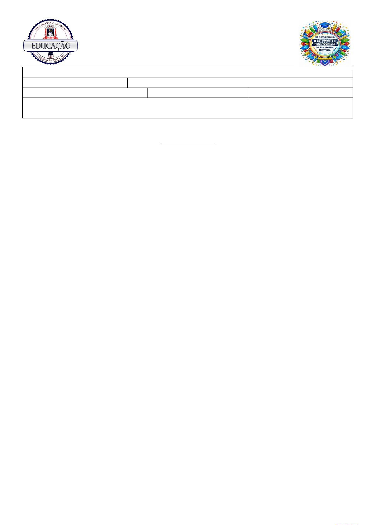 ESCOLA MUNICIPAL “CORONEL AMÉRICO TEIXEIRA” ENSINO FUNDAMENTAL 1º AO 5º ANO Ensino Fundamental Anos iniciais: Decreto nº8749 MG – 28/09/1965 Municipalização: Resolução nº 7385/94 MG – 31/03/1994 Autorização de Extensão Anos Finais: Portaria nº 41/2019 MG- 17/01/2019 Rua João Augusto de Melo, 267 - Cachoeira da Prata- MG- Tel (31) 995300545 AVALIAÇÃO TRIMESTRAL DE ARTE – 1º TRIIMESTRE TURMA: 3 º ANO PROFESSORAS: DANIELA / TAMÁRA DATA: 07 / 05 / 2026 VALOR: 15,0 PONTOS ALCANÇOU: ALUNO (A):__________________________________________________________________ Leia o texto com atenção para responder as questões: Artes Visuais As artes visuais estão presentes no nosso dia a dia de várias formas: em pinturas, desenhos, esculturas, fotografias e até nas imagens que vemos na internet. Elas são formas de expressão que utilizam cores, linhas, formas e texturas para transmitir ideias, sentimentos e histórias. Um artista pode se inspirar na natureza, nas pessoas, nos sonhos ou em acontecimentos do cotidiano. Cada obra de arte é única e pode ser interpretada de diferentes maneiras por quem a observa. Por exemplo, uma pintura com cores fortes pode transmitir alegria para uma pessoa e agitação para outra. Além disso, as artes visuais ajudam a desenvolver a criatividade, a imaginação e a capacidade de observar o mundo com mais atenção. Ao criar ou apreciar uma obra aprendemos a valorizar diferentes formas de expressão e cultura. Questão – 1 As artes visuais podem ser encontradas: a) ( ) Apenas em museus b) ( ) Apenas em livros c) ( ) Em diversos lugares do dia a dia d) ( ) Somente na televisão Questão – 2 O que os artistas usam para criar suas obras? a) ( ) Apenas palavras b) ( ) Cores, linhas, formas e texturas c) ( ) Somente números d) ( ) Apenas sons Questão – 3 Uma mesma obra de arte pode: a) ( ) Ter apenas um significado b) ( ) Não ter significado nenhum c) ( ) Ser interpretada de diferentes formas d) ( ) Ser entendida só pelo artista Questão – 4 As artes visuais ajudam a desenvolver: a) ( ) Apenas a escrita b) ( ) Apenas a leitura c) ( ) Criatividade e imaginação d) ( ) Apenas a memória Questão – 5 Cite dois exemplos de artes visuais mencionados no texto. ____________________________________________________________________________________________________________________________________________________________________________________________________________ Questão – 6 De onde um artista pode tirar inspiração para criar uma obra? ____________________________________________________________________________________________________________________________________________________________________________________________________________ Questão – 7 Por que uma mesma obra pode ter diferentes interpretações? ____________________________________________________________________________________________________________________________________________________________________________________________________________ Questão – 8 Como as artes visuais podem ajudar no nosso dia a dia? ____________________________________________________________________________________________________________________________________________________________________________________________________________ Questão – 9 Use a criatividade e faça um lindo colorido: image1.jpg image4.png image6.png image2.png image5.png image3.png
