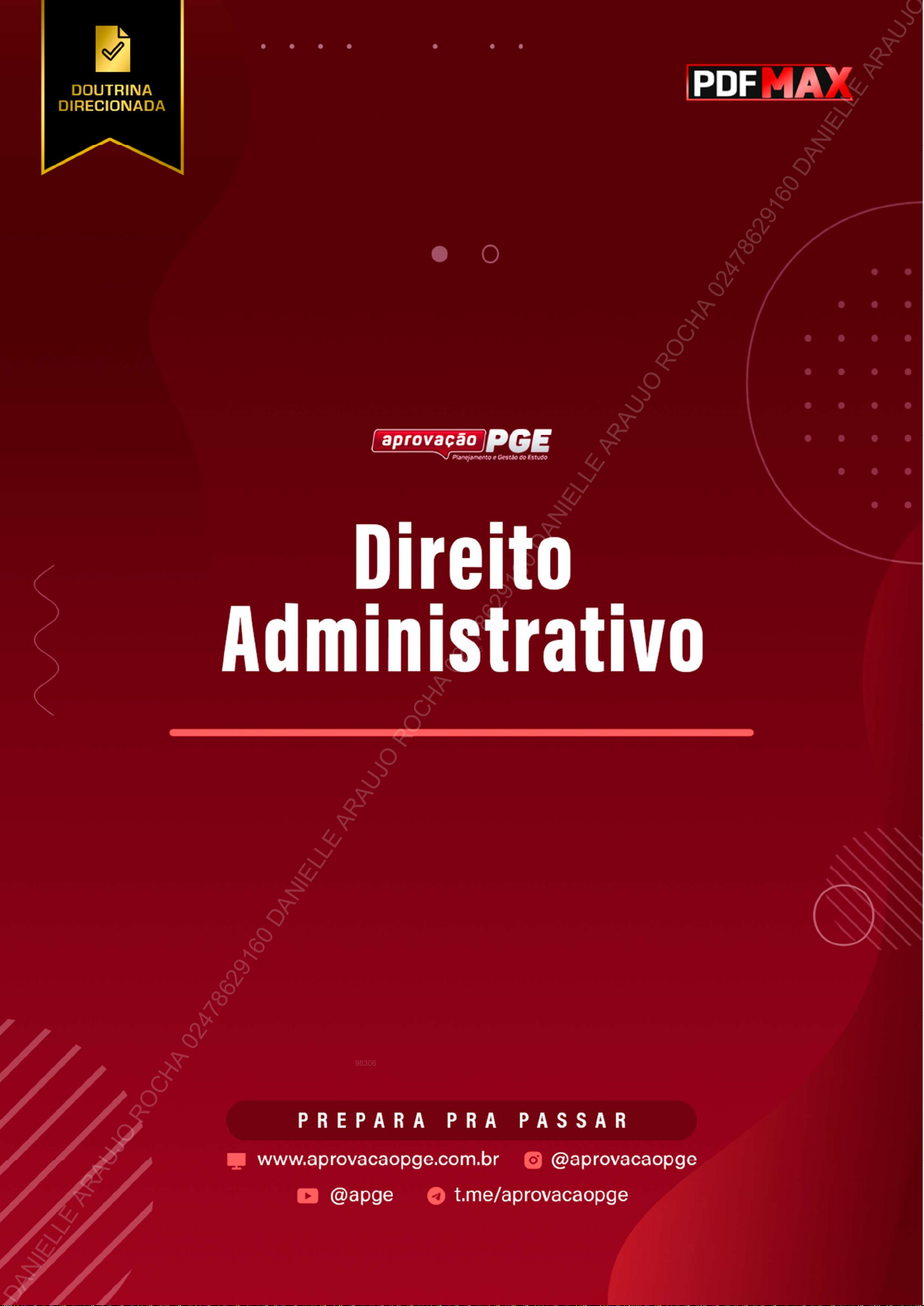 Poderes da Administração Pública 98306 98306 D AN IE LL E AR AU JO R O C H A 02 47 86 29 16 0 D AN IE LL E AR AU JO R O C H A 02 47 86 29 16 0 D AN IE LL E AR AU JO R O C H A 02 47 86 29 16 0 D AN IE LL E AR AU JO R O C H A 02 47 86 29 16 0 D AN IE LL E AR AU JO R O C H A 02 47 86 29 16 0 D AN IE LL E AR AU JO R O C H A 02 47 86 29 16 0 D AN IE LL E AR AU JO R O C H A 02 47 86 29 16 0 D AN IE LL E AR AU JO R O C H A 02 47 86 29 16 0 D AN IE LL E AR AU JO R O C H A 02 47 86 29 16 0 D AN IE LL E AR AU JO R O C H A 02 47 86 29 16 0 Arquivo revisado e atualizado até 15/09/2025 98306 98306 D AN IE LL E AR AU JO R O C H A 02 47 86 29 16 0 D AN IE LL E AR AU JO R O C H A 02 47 86 29 16 0 D AN IE LL E AR AU JO R O C H A 02 47 86 29 16 0 D AN IE LL E AR AU JO R O C H A 02 47 86 29 16 0 D AN IE LL E AR AU JO R O C H A 02 47 86 29 16 0 D AN IE LL E AR AU JO R O C H A 02 47 86 29 16 0 D AN IE LL E AR AU JO R O C H A 02 47 86 29 16 0 D AN IE LL E AR AU JO R O C H A 02 47 86 29 16 0 D AN IE LL E AR AU JO R O C H A 02 47 86 29 16 0 D AN IE LL E AR AU JO R O C H A 02 47 86 29 16 0 DIREITO ADMINISTRATIVO Poderes da Administração Pública 3 Sumário Sumário ............................................................................................................................................... 3 DIREITO ADMINISTRATIVO .......................................................................................................... 5 QUAL DEVE SER O FOCO? .................................................................................................................... 5 1. PODERES DA ADMINISTRAÇÃO ................................................................................................... 5 1.1. Poderes-deveres ........................................................................................................................... 5 1.2. Abuso de poder .............................................................................................................................. 6 2. PODER VINCULADO E PODER DISCRICIONÁRIO ................................................................... 8 2.1. Poder Vinculado/Regrado ........................................................................................................... 8 2.2. Poder Discricionário ...................................................................................................................... 8 2.3. Limites da discricionariedade e controle judicial .............................................................. 10 3. PODERES EM ESPÉCIE .................................................................................................................... 12 3.1. Poder Normativo (ou regulamentar) .................................................................................... 13 3.1.1. Espécies de regulamentos ............................................................................................... 14 3.1.2. Classificações dos regulamentos .................................................................................. 19 3.2. Poder Hierárquico....................................................................................................................... 19 3.3. Poder Disciplinar ........................................................................................................................ 24 3.4. Poder de Polícia .......................................................................................................................... 27 3.4.1. Conceito ................................................................................................................................. 27 3.4.2. Natureza dos atos ............................................................................................................... 28 3.4.3. Sentidos do poder de polícia ........................................................................................... 29 3.4.4. Polícia Judiciária x Administrativa .................................................................................. 29 3.4.5. Ciclos do Poder de Polícia x Delegação do Poder de Polícia ................................ 31 3.4.6. Atributos do Poder de Polícia ......................................................................................... 37 3.4.6.1. Discricionariedade ....................................................................................................... 37 3.4.6.2. Autoexecutoriedade ................................................................................................... 38 3.4.6.3. Coercibilidade (ou exigibilidade) ............................................................................ 40 3.4.7. Prazo para aplicar penalidades ...................................................................................... 40 3.4.8. Poder de polícia originário e delegado ......................................................................... 41 TAREFAS PARA O ESTUDO ATIVO ................................................................................................ 43 98306 98306 D AN IE LL E AR AU JO R O C H A 02 47 86 29 16 0 D AN IE LL E AR AU JO R O C H A 02 47 86 29 16 0 D AN IE LL E AR AU JO R O C H A 02 47 86 29 16 0 D AN IE LL E AR AU JO R O C H A 02 47 86 29 16 0 D AN IE LL E AR AU JO R O C H A 02 47 86 29 16 0 D AN IE LL E AR AU JO R O C H A 02 47 86 29 16 0 D AN IE LL E AR AU JO R O C H A 02 47 86 29 16 0 D AN IE LL E AR AU JO R O C H A 02 47 86 29 16 0 D AN IE LL E AR AU JO R O C H A 02 47 86 29 16 0 D AN IE LL E AR AU JO R O C H A 02 47 86 29 16 0 98306 98306 D AN IE LL E AR AU JO R O C H A 02 47 86 29 16 0 D AN IE LL E AR AU JO R O C H A 02 47 86 29 16 0 D AN IE LL E AR AU JO R O C H A 02 47 86 29 16 0 D AN IE LL E AR AU JO R O C H A 02 47 86 29 16 0 D AN IE LL E AR AU JO R O C H A 02 47 86 29 16 0 D AN IE LL E AR AU JO R O C H A 02 47 86 29 16 0 D AN IE LL E AR AU JO R O C H A 02 47 86 29 16 0 D AN IE LL E AR AU JO R O C H A 02 47 86 29 16 0 D AN IE LL E AR AU JO R O C H A