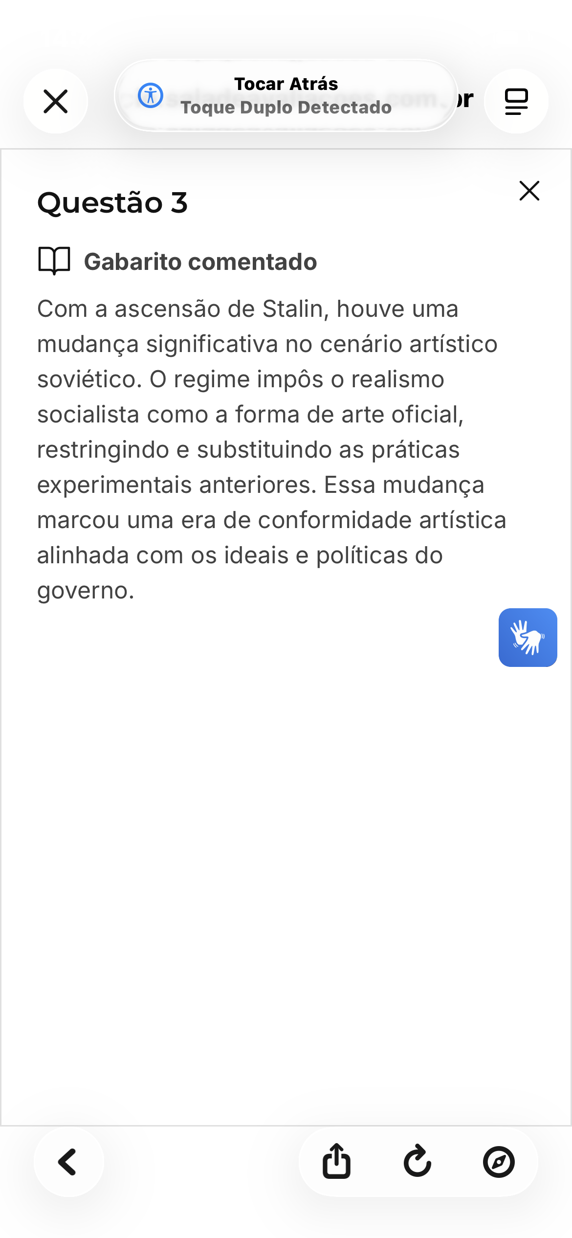 Tocar Atrás X Toque Duplo Detectado r Questão 3 X Gabarito comentado Com a ascensão de Stalin, houve uma mudança significativa no cenário artístico soviético. regime impôs realismo socialista como a forma de arte oficial, restringindo e substituindo as práticas experimentais anteriores. Essa mudança marcou uma era de conformidade artística alinhada com os ideais e políticas do governo.