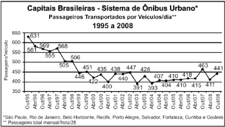Dados da Associação Nacional de Empresas de Transportes Urbanos (ANTU) mostram que o número de passageiros transportados mensalmente nas principais regiões metropolitanas do país vem caindo sistematicamente. Eram 476,7 milhões de passageiros em 1995, e esse número caiu para 321,9 milhões em abril de 2001. Nesse período, o tamanho da frota de veículos mudou pouco, tendo no final de 2008 praticamente o mesmo tamanho que tinha em 2001.