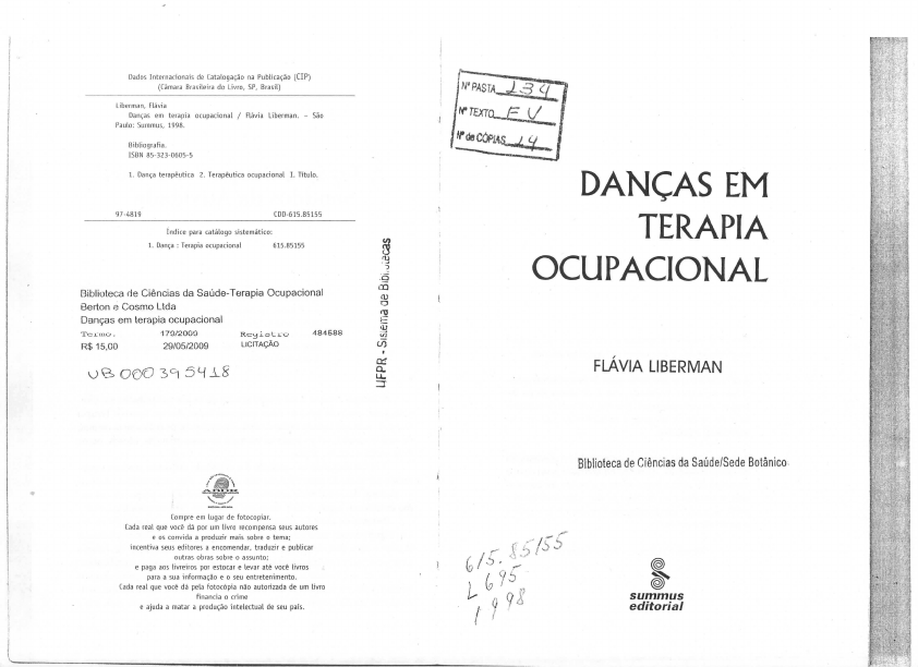 Dados Internacionais de Catalogação na Publicação (CIP) (Câmara Brasileira do Livro, SP, Brasil) Liberman, Fíãvia Danças em terapia ocupacional / Ftávia Liberman. - São Paulo: Summus, 1998. Bibliografia. ISBN 85-323-0605-5 1. Dança terapêutica 2. Terapêutica ocupacional I. Título, 97-4819 CDD-615.85155 índice para catálogo sistemático: 1. Dança : Terapia ocupacional 615.85155 Biblioteca de Ciências da Saúde-Terapia Ocupacional Berton e Cosmo Ltda Danças em terapia ocupacional Termo. 179/2009 Registro 484588 R$15,00 29/05/2009 LICITAÇÃO Q 3°i 5H.L& 3 l ,Q DD O) O£ co r Od a. DANÇAS EM TERAPIA OCUPACIONAL FLAVIA LIBERMAN Biblioteca de Ciências da Saúde/Sede Botânico Compre em lugar de fotocopiar. Cada real que você dá por um livro recompensa seus autores e os convida a produzir mais sobre o tema; incentiva seus editores a encomendar, traduzir e publicar outras obras sobre o assunto; e paga aos livreiros por estocar e levar até você livros para a sua informação e o seu entretenimento. Cada real que você dá pela fotocópia não autorizada de um Livro financia o crime e ajuda a matar a produção intelectual de seu pais. . summus editorial A Terapia Ocupacional e os Sentidos da Atividade Para Espinosa, a alegria e a tristeza são as formas originárias das quais nascerão todas as outras. A alegria é o que sentimos quando percebemos o au- mento de nossa realidade, isto é, de nossa força in- terna e capacidade para agir, aumento de pensamen- to e de ação. A alegria é caminho de autonomia individual e política. A tristeza é o que sentimos ao perceber a diminuição de nossa realidade, de nossa capacidade para agir, o aumento de nossa impotência e a perda da autono- mia. A tristeza é o caminho de servidão individual e política sendo suas formas mais costumeiras o ódio e o medo recíprocos. (Marilena Chauí, sobre a Ética de Espinosa) De qualquer modo, a vida humana não se resume a traba- lho e sustento. Viagens, festas, passeios, cuidado com o cor- po, desenvolvimento de aptidões. Comunicação, expressão, momentos grupais, enfim, a participação nos diferentes níveis de produção cultural são tão essenciais para a pro- moção da qualidade de vida como o alimento é para a so- brevivência física. A Terapia Ocupacional é uma prática de saúde que trabalha em dife- rentes campos com pessoas ditas marginalizadas. Assim, temos a Terapia Ocupacional aplicada às áreas de deficiência física, de deficiência mental, de saúde mental, como também no trabalho com chanças, idosos, ou na área social e outros, ainda. O instrumento de sua atuação é a atividade realizada predominante- mente por meio da comunicação não-verbal. Assirri, os trabalhos manuais — pintura, desenho, cerâmica efc. — e outros trabalhos corporais tais co- mo exercícios, jogos, teatro, danças são algumas de suas possibilidades. Durante os anos de graduação em Terapia Ocilpacional (TO) viven- ciei alguns desses recursos, iniciando, a partir daí, uma reflexão sobre seus limites e suas potencialidades. Mas foi pela área de aplicação da Terapia Ocupacional em psiquiatria que me interessei de forma mais significativa. A orientação recebida nesse campo preconizava que, a partir da clas- sificação dos pacientes segundo patologias específicas, uma ou outra ativi- dade era ou não recomendada, ou seja: paia psicóticos não era indicada a marcenaria, pois eram perigosos; para os neuróticos era indicado o traba- lho com macramê, e assim por diante. Eu percebia, já naquele momento, que tanto o olhar que se tinha daquela população era esquematizante, quan- to a compreensão de nossas práticas era bastante reduzida, o que impedia uma ação mais criativa e aprofundada. Por outro lado, já iniciávamos, nessa época, o que chamamos de análise de atividade, que se constitui em um método cujo pressuposto é que o profissional que trabalha com este ou aquele recurso teria condições de refletir sobre o instrumento de sua ação, na medida em que a prática com que lidamos provoca tanto nos pacientes quanto em nós mesmos diferen- tes respostas, o que torna a sua utilização complexa e delicada. A partir de uma formação, a meu ver, bastante básica, iniciei as mi- nhas experiências profissionais. Primeiramente, trabalhando como esta- giária em diversas áreas em diferentes instituições. Depois da graduação, como voluntária em Centro de Saúde Mental em Trieste, na Itália. No Brasil, na área de deficiência mental e em hospital psiquiátrico entre ou- tros. Mais tarde, atuei em Centro de Convivência da Prefeitura Municipal de São Paulo e, atualmente, realizo grupos com os quais utilizo-me do método aqui apresentado nesta pesquisa. No entanto, foi no Hospital Psiquiátrico que vivi, de forma bastante intensa, as discussões sobre a atua- ção da Terapia Ocupacional nas chamadas instituições totais. Particular- mente nesta área, a qual chamamos de Saúde Mental, a temática das funções da atividade é especialmente forte. Envolve desde as visões tradi- cionais da Terapia Ocupacional como um modo de ocupar o paciente, até, mais recentemente, os avanços na discussão do caráter da Terapia Ocupa- cional, suas funções históricas e a influência da psicanálise e de outros campos na construção de outros métodos, pressupostos e ações. O estudo da terapêutica pela ocupação e de suas origens históricas já tem lugar privilegiado em teses e pesquisas. Beatriz Ambrosio (1991) rea- lizou urna análise bastante aprofundada sobre o assunto no campo da psiquiatria, avançando para a abordagem das tendências contemporâneas, inclusive em São Paulo. Diz ela que a história da psiquiatria relaciona-se à história da terapia Ocupacional e, à medida que a sociedade passou a ver os homens como iguais, a partir dos princípios sociofilosóficos da Revolução Francesa, é que se pôde reconhecer na loucura a doença mental e a criar es