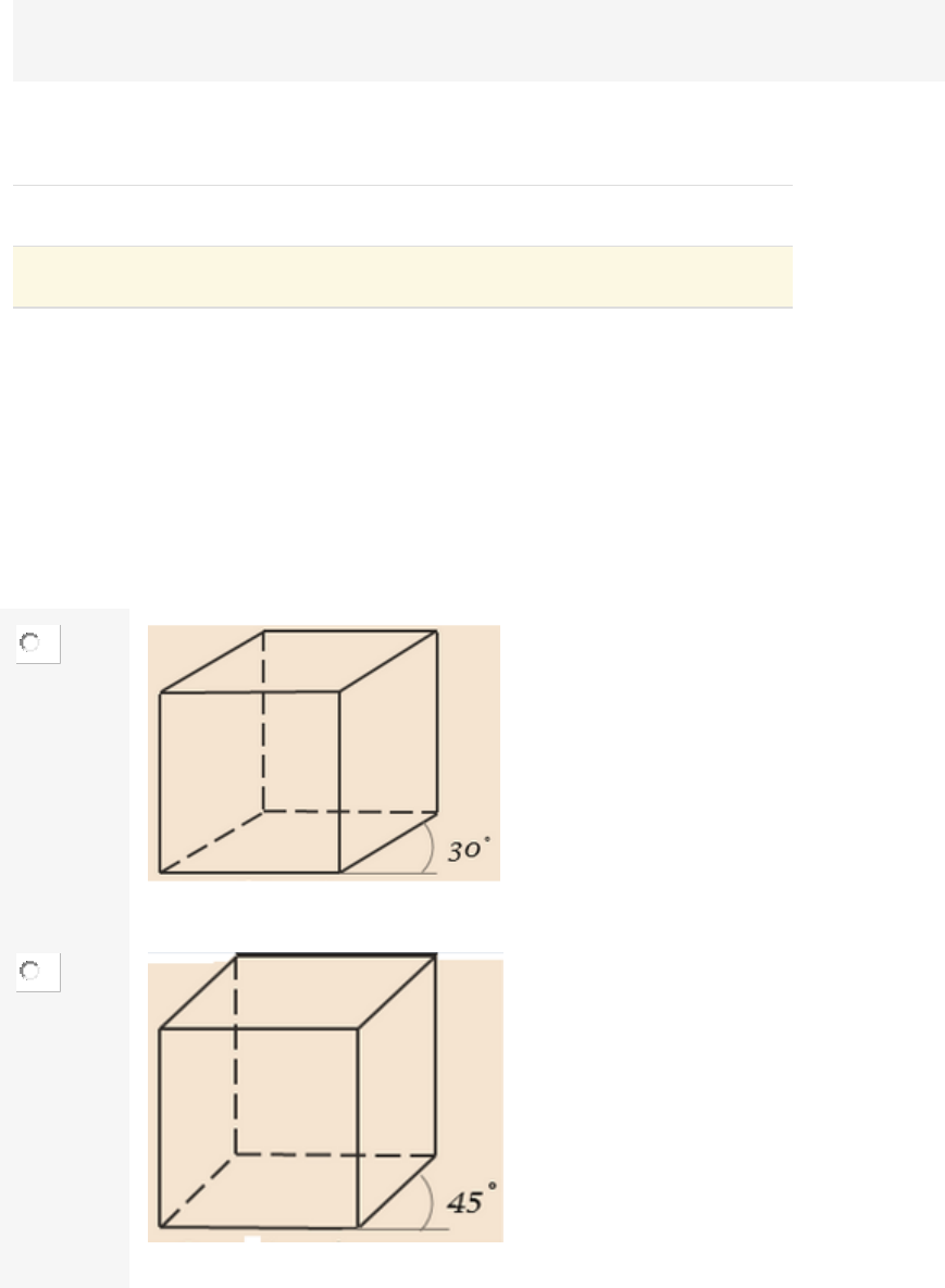 Nota: 80 PROTOCOLO: 20160516130216989BF4C Disciplina(s): Desenho Técnico Data de início: 04/06/2016 09:14 Prazo máximo entrega: 04/06/2016 10:14 Data de entrega: 04/06/2016 10:13 Questão 1/10 Muitas vezes a visualização de um desenho apenas nas suas projeções ortogonais pode ser complicado e pode-se amenizar tal fato com o uso de um desenho em perspectiva. Existem alguns tipos de perspectivas em desenho técnico, porém a mais utilizada é a perspectiva isométrica. Qual das perspectivas a seguir representa o ângulo correto para se desenhar uma perspectiva isométrica? A B C Você acertou! Resposta: rota de aprendizagem aula 2 D Questão 2/10 Quando desenhamos uma peça que tenha linhas de contorno inclinadas, formando ângulo entre elas, como deve ser a representação desses ângulos em relação à escala do desenho? A Se a escala for de redução, devemos reduzir a medida do ângulo proporcionalmente à escala. B Se a escala for de ampliação, devemos ampliar a medida do ângulo proporcionalmente à escala. C Independentemente da escala do desenho, a medida do ângulo deve ser mantida igual. Você acertou! Resposta: rota de aprendizagem da aula 3 D Fica a critério do desenhista, escolher o melhor ângulo no desenho, uma vez que esse ângulo será cotado corretamente. Questão 3/10 Analise as alternativas abaixo e marque a que apresenta corretamente a vista faltante em relação à perspectiva isométrica dada. A B Você acertou! Resposta: rota de aprendizagem aula 2. C D Questão 4/10 De acordo com a norma NBR que padroniza as dimensões das folhas utilizadas na execução de desenhos técnicos, verifique qual alternativa apresenta corretamente o formato das folhas de desenho com as seguintes dimensões: (297 x 420) e (594 x 841). A A3 – A2 B A1 – A2 C A3 – A1 Resposta: rota de aprendizagem aula 1. D A1 – A0 Questão 5/10 Em relação aos tipos de linhas usados em desenho técnico, relacione a coluna A (tipo de linha) com a coluna B (função da linha) e a seguir assinale a alternativa que apresenta a sequência correta: COLUNA A (tipo de linha) COLUNA B (função da linha) I – TRAÇO E PONTO ESTREITOS ( ) lados invisíveis II – TRAÇO CONTÍNUO ESTREITO ( ) eixos simétricos - simetria III – TRAÇO TRACEJADO LARGO ( ) planos de corte IV – TRAÇO E PONTO LARGO ( ) hachuras e cotas A I –III – IV – II B III – I – II – IV C IV – III – I – II D III – I – IV – II Resposta: rota de aprendizagem aula 1. Questão 6/10 Quando a peça a ser desenhada possuir muitos detalhes internos, as projeções ortogonais terão muitas linhas invisíveis que poderão dificultar a interpretação do desenho. Para facilitar o entendimento do desenho técnico aplica-se um corte. Analise a peça abaixo e assinale a alternativa que especifica que tipo de corte esta sendo aplicado. A Meio corte. Você acertou! Meio corte é aplicado em peças cilindricas por apresentar lados simétricos. B Corte total. C Corte parcial. D Corte com desvio. Questão 7/10 Considerando que em um desenho técnico temos indicado uma escala de: 1:5. O que podemos entender disso? A Que ao produzir essa peça, devemos pegar o valor de cada cota indicada no desenho e multiplicar por 5. B Que ao produzir essa peça, devemos pegar o valor de cada cota indicada no desenho e dividir por 5. C Que o desenho dessa peça está representado 5 vezes maior que o tamanho normal. D Que o desenho dessa peça está representado 5 vezes menor que o tamanho normal. Você acertou! Resposta: rota de aprendizagem da aula 3 Questão 8/10 Nas alternativas a seguir é apresentada uma peça com suas respectivas cotas, analise cada alternativa e responda qual delas apresenta corretamente todas as cotas de acordo com as normas de desenho técnico: A B C Você acertou! Resposta: rota de aprendizagem da aula 3 D Questão 9/10 Complete os espaços em branco no parágrafo a seguir, em relação ao local correto de colocação das cotas em desenhos técnicos: “Nas linhas de cotas __________ o número (valor da cota) deverá estar __________ da linha de cota, enquanto que nas cotas __________ o número deverá estar à __________ da linha de cota”. A verticais – abaixo – horizontais – abaixo B horizontais – acima – verticais – esquerda Você acertou! Resposta: rota de aprendizagem aula 3 C horizontais – abaixo – verticais – esquerda D verticais – direita – horizontais - acima Questão 10/10 Analisando o desenho em perspectiva, responda qual alternativa apresenta as três vistas devidamente desenhadas. A B Você acertou! Resposta: rota de aprndizagem aula 2 C D