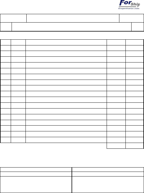 PR-MODP-001_B TIPO DE DOCUMENTO PROJETO CÓDIGO DO DOCUMENTO PROCEDIMENTO FORSHIP - CORPORATIVO PR-LTU-M006 REVISÃO TÍTULO FOLHA 0 LIMPEZA DE TUBULAÇÕES – SOPRAGEM DE AR 1 / 6 (SGQ-FS ) SISTEMA DE GESTÃO DA QUALIDADE - FORSHIP ENGENHARIA Ltda DOCUMENTO DE REPRODUÇÃO PROIBIDA SEM AUTORIZAÇÃO DA FORSHIP ANÁLISE CRÍTICA SGQ EMISSÃO CONTROLADA GESTÃO DA QUALIDADE - FORSHIP MOTIVO: REV. DATA DESCRIÇÃO DAS REVISÕES ELABOR. NOME / ÁREA APROV. NOME / ÁREA 0 17/05/06 Emissão inicial para comentários MCP / DEN SPP / DEN ASSINATURAS - (última revisão) - PR-MODP-001_B TIPO DE DOCUMENTO PROJETO CÓDIGO DO DOCUMENTO PROCEDIMENTO FORSHIP - CORPORATIVO PR-LTU-M006 REVISÃO TÍTULO FOLHA 0 LIMPEZA DE TUBULAÇÕES – SOPRAGEM DE AR 2 / 6 (SGQ-FS ) SISTEMA DE GESTÃO DA QUALIDADE - FORSHIP ENGENHARIA Ltda DOCUMENTO DE REPRODUÇÃO PROIBIDA SEM AUTORIZAÇÃO DA FORSHIP ÍNDICE 1. OBJETO .................................................................................................................................2 2. ABRANGÊNCIA .....................................................................................................................2 3. DEFINICÕES ..........................................................................................................................2 4. DOCUMENTOS DE REFERÊNCIA........................................................................................3 5. RESPONSABILIDADES ........................................................................................................3 6. DISPONIBILIDADES..............................................................................................................3 6.1. DOCUMENTOS ..............................................................................................................3 6.2. EQUIPAMENTOS E INSTRUMENTOS..........................................................................3 7. SISTEMÁTICA DE EXECUÇÃO ............................................................................................4 7.1. PROVIDÊNCIAS DE SEGURANÇA...............................................................................4 7.2. ATIVIDADES PRELIMINARES ......................................................................................4 7.3 EXECUÇÃO DA LIMPEZA.............................................................................................5 8. ACEITAÇÃO...........................................................................................................................6 9. REGISTRO .............................................................................................................................6 10. ACONDICIONAMENTO .........................................................................................................6 1. OBJETO Este procedimento visa a descrever as atividades de limpeza de tubulação com ar comprimido, para remover todo material estranho depositado, durante o processo de fabricação e montagem, bem como secar tubulações previamente lavadas com água. 2. ABRANGÊNCIA Este procedimento é aplicado às tubulações que foram selecionadas para serem limpas com ar comprimido, nas instalações de processos e utilidades, em conformidade com a rede de precedência. Os fornecedores de equipamentos, assim como, as empresas contratadas para a execução da limpeza química que possuam procedimentos próprios, devem submeter estes procedimentos à aprovação do cliente, previamente. 3. DEFINICÕES • HMS: Handover Management System – Software de gerenciamento para entregas dos sistemas ao cliente final • P&ID: diagrama de tubulação e instrumentação • PT: Permissão para Trabalho PR-MODP-001_B TIPO DE DOCUMENTO PROJETO CÓDIGO DO DOCUMENTO PROCEDIMENTO FORSHIP - CORPORATIVO PR-LTU-M006 REVISÃO TÍTULO FOLHA 0 LIMPEZA DE TUBULAÇÕES – SOPRAGEM DE AR 3 / 6 (SGQ-FS ) SISTEMA DE GESTÃO DA QUALIDADE - FORSHIP ENGENHARIA Ltda DOCUMENTO DE REPRODUÇÃO PROIBIDA SEM AUTORIZAÇÃO DA FORSHIP 4. DOCUMENTOS DE REFERÊNCIA • IT ENG 010- Diretrizes para elaboração de Procedimento Operacional; • IT ENG 011- Responsabilidades para Testes de Comissionamento; • IT ENG 001- Metodologia do Comissionamento. 5. RESPONSABILIDADES Conforme definidas em IT ENG-11 – Responsabilidades para Testes de Comissionamento. 6. DISPONIBILIDADES 6.1. DOCUMENTOS • Manuais e recomendações específicas do fabricante dos componentes do subsistema • P&ID do subsistema em referência • Diagrama ou circuito de malha de tubulação 6.2. EQUIPAMENTOS E INSTRUMENTOS • Caixa de ferramentas • Flanges, tubulações temporárias, raquetes para viabilizarem a limpeza • Juntas sobressalentes para eventuais substituições • Mangueiras auxiliares • Vaso acumulador de ar comprimido que garanta a pressão mínima para limpeza de 6kg/cm2 PR-MODP-001_B TIPO DE DOCUMENTO PROJETO CÓDIGO DO DOCUMENTO PROCEDIMENTO FORSHIP - CORPORATIVO PR-LTU-M006 REVISÃO TÍTULO FOLHA 0 LIMPEZA DE TUBULAÇÕES – SOPRAGEM DE AR 4 / 6 (SGQ-FS ) SISTEMA DE GESTÃO DA QUALIDADE - FORSHIP ENGENHARIA Ltda DOCUMENTO DE REPRODUÇÃO PROIBIDA SEM AUTORIZAÇÃO DA FORSHIP 7. SISTEMÁTICA DE EXECUÇÃO 7.1. PROVIDÊNCIAS DE SEGURANÇA • Obter do setor de segurança responsável pela liberação, a permissão de trabalho (PT) para as atividades programadas na área • Verificar se todo pessoal envolvido na execução da atividade está utilizando equipamentos de proteção individual (EPI) adequados como óculos de segurança, protetores de ouvido, luvas, capacetes, etc • Verificar se as áreas de trabalho envolvidas estão isoladas, limpas, secas, livres de óleo e todo o resto de construção removido • Delimitar a área de realização da limpeza, com cordões de isolamento e placas com avisos de perigo em destaque • Conferir para testes em áreas classificadas que todas as medidas de segurança para utilização de equipamentos e outros instrumentos sujeitos a arco elétr