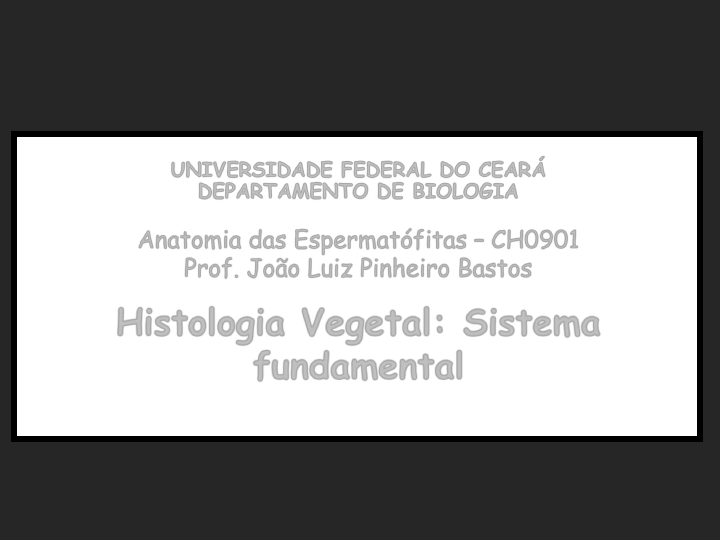 UNIVERSIDADE FEDERAL DO CEARÁ DEPARTAMENTO DE BIOLOGIA Anatomia das Espermatófitas – CH0901 Prof. João Luiz Pinheiro Bastos Histologia Vegetal: Sistema fundamental INTRODUÇÃO À HISTOLOGIA VEGETAL TECIDOS VEGETAIS meristemáticos primários secundários protoderme meristema fundamenltal procâmbio câmbio vascular felogênio de revestimento primário secundário epiderme Periderme fundamentais parênquima colênquima* esclerênquima vasculares primários secundários floema primário xilema primário floema secundário xilema secundário *Presente apenas no corpo primário da planta. PARÊNQUIMA Características Gerais e Funções: Tecido considerado primitivo (algas Charophyceae) que preenche todo corpo da planta. Nas folhas, preenche o pecíolo e compõe o mesofilo. Nos caules e raízes é o constituinte principal do córtex e da medula. Atua na assimilação do carbono, produção e reserva de substâncias. Participa no transporte de substâncias a curta distância. Características Citológicas: células geralmente isodiamétricas, com grande variabilidade morfológica, muitos espaços intercelulares esquizógenos (dissolução da lamela mediana) e lisígenos, parede primária (plástica) - campos primários de pontoação (plasmodesmas), vacúolo proeminente, numerosas organelas, núcleo pouco distinto e elevada atividade metabólica. Totipotentes (potencial meristemático). Origem: Atividade do meristema fundamental.* Fundamental ou de preenchimento Tipos Principais Clorofiliano ou Clorênquima Armazenador (ou de reserva) *O parênquima, quando associado ao tecido vascular, pode se originar do procâmbio. Também pode se originar a partir do câmbio e do felogênio. Parênquima Fundamental ou de preenchimento Regiões cortical e medular do caule, da raiz, do pecíolo e nas nervuras foliares de maior calibre. Células podem apresentar cloroplastos, amiloplastos, cristais e uma infinidade de outros produtos de secreção interna (mucilagem, substâncias fenólicas, alcalóides etc.). caule de dicotiledônea caule de monocotiledônea BA ESC Parênquima Clorofiliano ou Clorênquima Característico das folhas, mas presente também em caules e frutos jovens ou qualquer órgão fotossintetizante. Células com grandes vacúolos e as organelas (ex.: cloroplastos) ficam dispostas na periferia celular. Parênquima paliçádico (PP) e esponjoso (PE) em Folhas de Syringa sp. PP PE detalhe do parênquima esponjoso epiderme (face adaxial) epiderme (face abaxial) PP estômato Anthurium sp. (semente) c= cotilédone en= endosperma corpos protéicos grãos de amido Parênquima Armazenador ou de Reserva Solanum tuberosum (tubérculo) grãos de amido Persea americana (mesocarpo) gotículas de óleo lugol (amido) Azul de Coumassie (proteína) Phaseolus vulgaris (cotilédone) Myriophyllum triphyllum Parênquima Aerífero ou Aerênquima Ramo em corte tranversal Corte transversal do pecíolo em microscopia de luz (a) e eletrônica de varredura (b) Nymphoides indica Aspecto macroscópico do aerênquima em pecíolos de Eichornia crassipes Corte transversal na raiz de E. crassipes E. Crassipes (aguapé) aerênquima Parênquima Braciforme Cana sp. (pecíolo) Annanas comosus (mesofilo) Células parenquimáticas braciformes do diafragma do pecíolo de Echinodorus mostrando os espessamentos nas paredes primárias. (EI: espaço intercelular; NU: núcleo; CL: cloroplasto; DIA: diafragma; ID: idioblasto; FV: feixe vascular; LAC: lacuna aerífera; AER: aerênquima) Parênquima Aquífero Folha em corte transversal Salsola kali BE - Barras de espessamento lignificadas PCL – parênquima clorofiliano FI – fibras PAQ – parênquima aqüífero