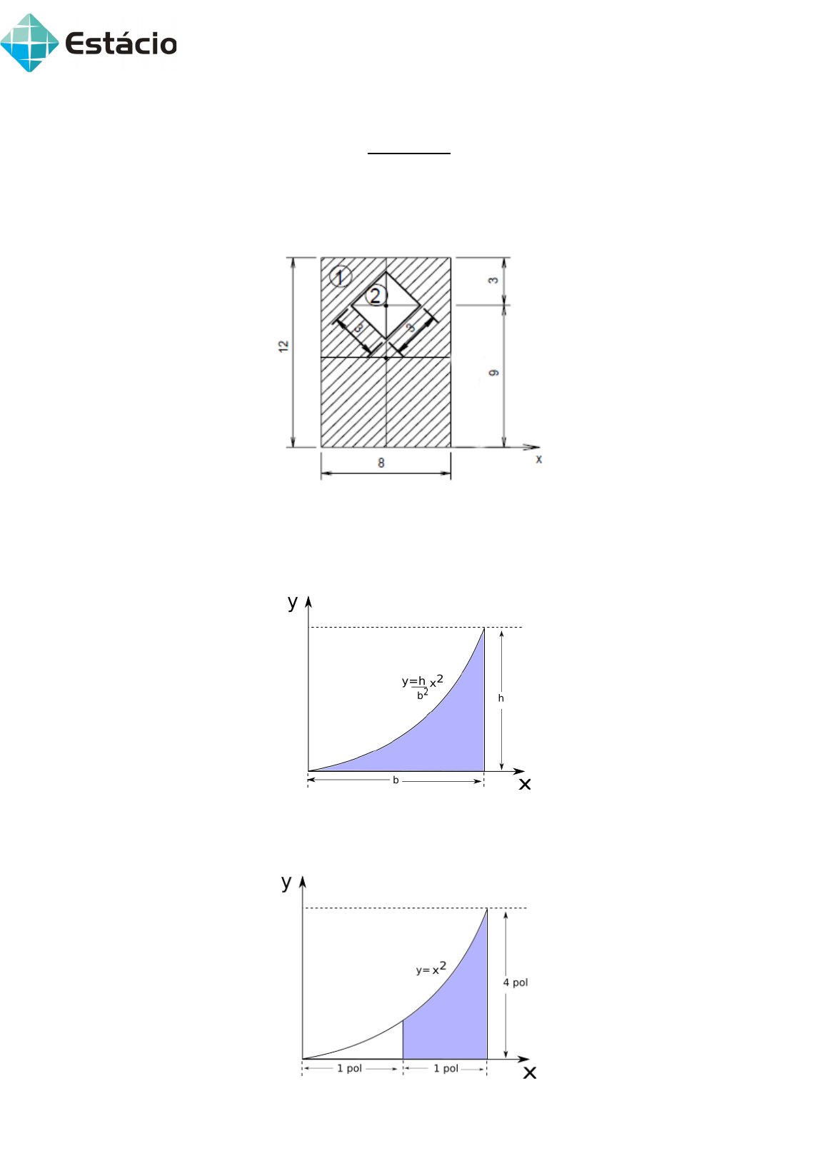 LISTA 1 Questão 1) Determine o centro de gravidade da figura hachurada: Resposta: xCG = 4 cm; yCG = 5,69 cm Questão 2) Localize o centróide da área sombreada. Resposta: xc = ¾ b yc = 3/10 h Questão 3) Localize o yc do centróide: Resposta: yc = 1.33 pol Disciplina: Resistência dos Materias II Curso: Engenharia Civil/ 7º Período Professora: Evelyn Oliveira Faculdade Estácio de Sá – Juiz de Fora/MG Questão 4) Encontre as coordenadas do centróide da seção transversal abaixo: Resposta: xc =8.33 cm; yc=14.17 cm Questão 5) Encontre as coordenadas do centróide da seção transversal abaixo: Resposta: xCG = 2.22 m; yCG=1.41 m Questão 6) Encontre o momento de inércia em relação ao eixo y’ centroidal, da seção abaixo: Resposta: Iy’ = 2.72 . 104 cm4 Questão 7) Determine o momento de inércia da área da seção transversal da viga em relação aos eixos centroidais x e y Resposta: Ix= 386 .106 mm4; Iy= 183 . 106 mm4 Questão 8) Determine o momento de inércia Ix’, sendo x’ o eixo que passa pelo centro de gravidade da figura, paralelo ao eixo x. Além disso, determine o produto de inércia IXY, justifique o resultado encontrado. Resposta: yCG = 80,196 mm ; Ix’ = 4864600 mm4 Questão 9) Determine o momento de inércia Iu e Iv da área as seção transversal. Resposta: Iu = 114 . 106 mm4 ; Iv= 56.5 . 106 mm4 Questão 10) Determine os momentos principais de inéricia da área da seção transversal da viga em relação aos eixos principais, que tem suas origens localizadas no centróide CG. Resposta: Imax = 64.1 pol4 ; Imin= 5.33 pol4 Questão 11) O eixo de cobre está sujeito às cargas axiais mostradas na figura. Determine o deslocamento da extremidade A em relação à extremidade D se os diâmetros de cada segmento forem d AB = 20 mm, d BC = 25 mm e d CD = 12 mm. Considere Ecobre = 126 GPa. Resposta: - 3,8483 mm Questão 12) A viga rígida está apoiada em suas extremidades por dois tirantes de aço (Eaço = 200 GPa) . Os diâmetros das hastes são d AB = 12 mm e d CD = 7,5 mm. Se a tensão admissível para o aço for ζadm = 115 MPa, determine a intensidade da carga distribuída w e seu comprimento x sobre a viga para que esta permaneça na posição horizontal quando carregada. Resposta: w = 13,41 kN/m; x= 1,35 m Questão 13) A haste de aço A-36 está sujeita ao carregamento mostrado. Se a área de seção transversal da haste for 60 mm2, determine o deslocamento de B e A. Despreze o tamanho dos acoplamentos em B, C e D. Resposta: δA= 2,64 mm; δB= 2,31 mm Questão 14) A barra tem área de seção transversal de 1.800 mm2 e E = 250 GPa. Determine o deslocamento da extremidade A da barra quando submetida ao carregamento distribuído. Resposta: 9,2 x 10-4 mm Questão 15) Os diâmetros e materiais de fabricação do conjunto são indicados na figura. Se o conjunto estiver bem ajustado entre seus apoios fixos quando a temperatura é T1 = 20°C, determine a tensão normal média em cada material quando a temperatura atingir T2 = 40°C. Resposta: σbr=33,85 MPa; σaço = 135,41 MPa; σal= 15,05 MPa Questão 16) O eixo maciço de 30 mm de diâmetro é usado para transmitir os torques aplicados às engrenagens. Determine a tensão de cisalhamento máxima absoluta no eixo. Resposta: τmax = 75.5 MPa Questão 17) O eixo maciço de 32 mm de diâmetro é usado para transmitir os torques aplicados às engrenagens. Se o eixo estiver apoiado em mancais lisos em A e B, que não resistem a torque, determine a tensão de cisalhamento desenvolvida no eixo nos pontos C e D. Indique a tensão de cisalhamento nos elementos de volume localizados nesses pontos. Resposta: τc = 28,75 MPa; τd =11,66 MPa Questão 18) Um tubo de aço com diâmetro externo de 62,5 mm é usado para transmitir 3 kW quando gira a 27 rev/minuto. Determine, com aproximação de múltiplos de 5 mm, o diâmetro interno d do tubo se a tensão de cisalhamento admissível for τadm = 70 MPa. Resposta: di ≈ 60 mm Questão 19) O eixo da hélice do hidrofólio é de aço e tem 30 m de comprimento. Está acoplado a um motordiesel em linha, o qual transmite uma potência máxima de 2.000 kW e provoca rotação de 1.700 rpm no eixo. Se o diâmetro externo do eixo for 200 mm e a espessura da parede for 10 mm, determine a tensãode cisalhamento máxima desenvolvida no eixo. Resposta:τmáx=20.8 MPa Questão 20) O eixo maciço de aço AC tem diâmetro de 25 mm e está apoiado nos mancais lisos em D e E. O eixo está acoplado a um motor em C, que transmite 3 kW de potência ao eixo quando está girando a 50 rev/s. Se as engrenagens A e B absorvem 1 kW e 2 kW, respectivamente, determine a tensão de cisalhamento máxima desenvolvida no eixo no interior das regiões AB e BC. O eixo é livre para girar em seus mancais de apoio D e E. Resposta: τ(máx)AB = 1,04 MPa; τ(máx)BC = 3,11 MPa