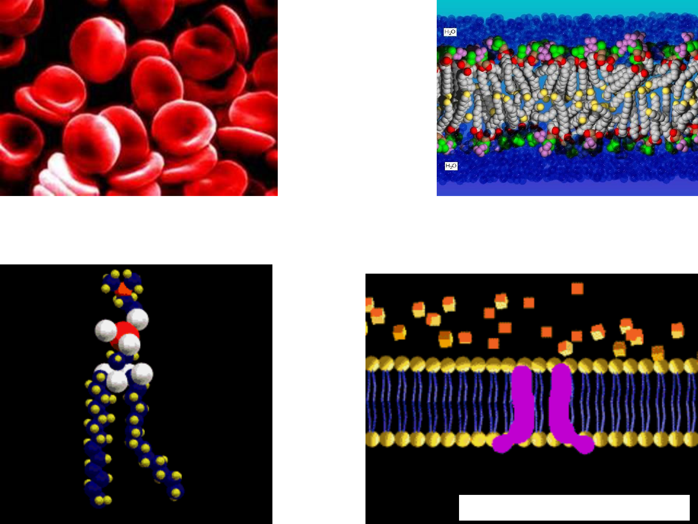 MEMBRANA PLASMÁTICA, TRANSPORTE ATRAVÉS DA MEMBRANA E TRANSPORTE EM QUANTIDADE Profª. Sivia Dantas Cangussú Célula eucariota: compartimentalizada (riqueza em membranas) Células: unidades estruturais e funcionais dos seres vivos 700 µm² de membrana plasmática 7000 µm² de membranas internas Célula procariota: membrana plasmática (única membrana presente) Parede celularmembrana celular ribossommoscitoplasma Constituintes : -Citoplasma envolvido pela MP e se estende da MP ao núcleo -Núcleo: envolvido pelo envoltório nuclear Célula Eucariota Funções Gerais da Membrana Plasmática Separa e ao mesmo tempo comunica o meio intracelular com o meio extracelular. Controla a penetração e a saída de substâncias da célula (seletiva). Reconhece células ou substâncias estranhas (resposta imunitária). Composição Química da Membrana Plasmática •Lipídeos •Proteínas •Carboidratos 6 a 10 nm Em proporção e distribuição variáveis (assimetria) poder de resolução: Olho = 0,2 mm (200 µm) MO = 0,2 µm (200 nm) ME = 0,2 nm Lipídeos de membrana Moléculas longas organizadas em bicamada sem gasto de energia. Moléculas anfipáticas (extremidade hidrofílica e uma cadeia hidrofóbica). Barreira relativamente impermeável à moléculas solúveis em água. Cabeças hidrofílicas Caudas hidrofóbicas Classes de lipídeos fosfoglicerídeos esfingolipídeos colesterol Lipídeos de membrana fosfolipídeos glicolipídeos esteróis fo s fa ti d il c o li n a fo s fa ti d il e ta n o la m in a fo s fa ti d il in o s it o l fo s fa ti d il s e ri n a g li c o li p íd e o e s fi n g o m ie li n a c o le s te ro l Distribuição assimétrica Classes de lipídeos: estrutura e fluidez da membrana fosfatidilcolina Fosfatidilcolina e colesterol Esfingomielina e colesterol Movimento lateral Fosfoglicerídeo fosfatidiletanolamina Fosfoglicerídeo fosfatidilcolina assimetria Energeticamente desfavorável Energeticamente favorável Fluidez da membrana Movimento lateral (frequente) Flip-flop (raro) Movimento de rotação Movimento lateral Flip-flop água água Colesterol (↓) Proximidade das caudas (↓) Comprimento das caudas (↓) Glicolipídios esfingolipídeos (↓) Fatores que influenciam a fluidez Classes de lipídeos: estrutura e fluidez da membrana Fosfatidilcolina e colesterol esfingomielina e colesterol Fatores que influenciam a fluidez Classes de lipídeos: estrutura e fluidez da membrana Temperatura baixa (↓) Temperatura alta (↑) Lipídeos saturados (↓) Lipídeos insaturados (↑) Ácidos graxos saturados empacotados curvatura causada pela dupla ligação em um ácido graxo insaturado não permite empacotamento tão próximo Estrutura trilaminar devido à deposição de tetróxido de ósmio nas cabeças polares Unidade de Membrana 7 a 1 0 n m Membrana Plasmática Não visível em microscopia de luz MET: 2 unidades de membrana (aspecto trilaminar) separados por espaço intercelular Proteínas de membrana Principais responsáveis pelas funções das membranas Maiores que os lipídeos e menos numerosas Classificadas de acordo com a facilidade de extração: Integrais ou intrínsecas (transmembrana ou parciais) Periféricas ou extrínsecas Proteina integral transmembrana Proteina periférica Proteina integral parcial Proteina periférica Bicamada lipídica Proteínas de membrana INTEGRAL TRANSMEMBRANA = unipasso (1) e multipasso (2, 3) INTEGRAL PARCIAL (4) PERIFÉRICAS: LIGADA ATRAVÉS DE ÂNCORAS (5 e 6) OU ATRAVÉS DE PROTEÍNAS (7 e 8) 1 2 3 4 5 6 7 8 A membrana é constituída por uma bicamada lipídica fluida contendo um mosaico de proteínas que se movimentam (Singer et al., 1972) Modelo do Mosaico Fluido Assimetria da membrana: lipídeos, proteínas e carboidratos Proteínas integrais visualizadas: Criofratura Técnica para seccionar tecidos congelados a -20°C com lâmina de aço pré-resfriada (fratura entre os folhetos interno e externo). Deposição de metais pesados Face P = protoplasmática (maior parte das proteínas) e Face E = externa CRIOFRATURA (freeze- fracture) mostrando interior da membrana plasmática: face P com maior número de partículas intramembranosas do que a face E Glicocálice Carboidratos ligados à proteínas ou lipídeos (constituição básica), presentes na superfície externa da MP Glicoproteínas e proteoglicanas adsorvidas à MP após secreção (constituição variável) presentes na superfície externa da MP Componente dinâmico: composição varia de acordo com o tipo celular, região da membrana e atividade funcional da célula GLICOCÁLICE em célula absortiva intestinal. Mitocôndrias próximas às microvilosidades fornecendo energia para a absorção de substâncias GLICOCÁLICE lume do intestino Funções da membrana plasmática 1.Permeabilidade/Seletividade: controla entrada e saída de substâncias na célula. a) Impermeável a íons e moléculas carregadas. b) Permeável à componentes hidrofóbicos (ácidos graxos, esteróides, anestésicos). c) Permeável à pequenas moléculas polares sem carga (H2O, CO2). Substâncias hidrofílicas necessitam de canais de transporte (com ou sem gasto de energia). 2. Reconhecimento/Antigenicidade: glicocálice e proteínas integrais a) Células semelhantes se reconhecem e se aderem ou inibem mitoses (inibição por contato). b) Reconhecimento de células estranhas (resposta imunitária – rejeição a enxertos). Funções da membrana plasmática Células em cultura formando camada simples Células removidas Células removidas substituídas. A divisão para quando a camada celular é reparada Células cancerosas em cultura continuam a se dividir e formam o tumor Funções da membrana plasmática 3. Adesão Celular: Junções intercelulares, glicocálice (cimento intercelular flexível). Formação de camadas que separam compartimentos diferentes. Funções da membrana plasmática 4. Comunicação: a) Junções GAP (passam nucleotídeos, aminoácidos e íons entre células). b) Proteínas t