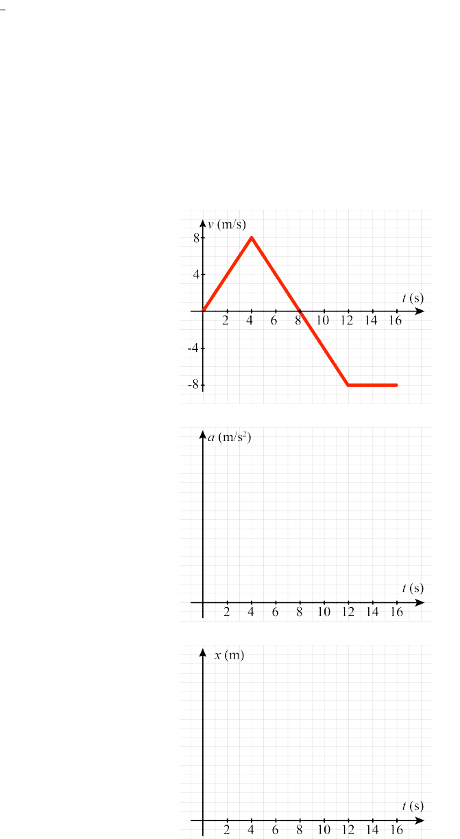 1a Prova de F-128 - Diurno 1 16/04/2012 Nome:______________________________________RA:______________Turma:_____ Obs: Na solução desta prova, considere g = 10 m/s2 Questão 01 Considere o gráfico da velocidade em função do tempo de uma partícula que parte da origem e se move ao longo do eixo x. a) (0,5 ponto) Esboce os gráficos da aceleração a e da posição x, indicando seu valor numérico em cada intervalo de tempo. b) (0,5 ponto) Em que instante o movimento da partícula se inverte? Justifique sua resposta; c) (0,5 ponto) Qual é o valor de x para t = 12 s?; d) (0,5 ponto) Qual é a velocidade média da partícula entre 0 e 16 s?; e) (0,5 ponto) Qual é a distância total (para frente e para trás) percorrida pela partícula ao final de 12 s? 1) ______ 2) ______ 3) ______ 4) ______ Nota: _______ 1a Prova de F-128 - Diurno 2 Questão 02 A velocidade de uma partícula é dada por: v(t) = 2t2 – At + B, onde v está em metros por segundo, t em segundos, e onde A e B são constantes. a) (0,5 ponto) Quais são as dimensões de A e B no sistema internacional (SI) ?; b) (1,0 ponto) Sabendo que em t = 0 a velocidade é 8 m/s, e em t = 1s a velocidade é mínima, descubra o valor de A; c) (0,5 ponto) Qual a expressão, em função do tempo, da aceleração desta partícula?; d) (0,5 ponto) Sabendo que a partícula sai da origem em t = 0 s, qual é sua posição em t = 3 s ? 1a Prova de F-128 - Diurno 3 Questão 03 O vetor posição de uma partícula é dado por jtittr ˆˆ4)( 2+= (r em metros, t em segundos). Encontre: a) (0,5 ponto) o vetor velocidade média da partícula entre t = 0 e t = 4,0 s; b) (0,5 ponto) o módulo da velocidade em t = 1,5 s; c) (0,5 ponto) o vetor aceleração instantânea em t = 1,0 s. d) (1,0 ponto) Qual é a trajetória da partícula? Justifique. 1a Prova de F-128 - Diurno 4 Questão 4 Uma pessoa está dentro de um balão que sobe verticalmente com velocidade constante de 5,0 m/s em relação ao solo. Quando o balão está a uma altura de 60 m, o indivíduo atira uma bola horizontalmente para fora do balão com uma velocidade de 10 m/s. a) (0,5 ponto) Escreva o vetor velocidade inicial da bola, em relação ao solo, no instante em que é arremessada para fora do balão, em termos dos versores iˆ e jˆ ; b) (1,0 ponto) Escreva a equação do vetor velocidade da bola, em relação ao solo, em função do tempo; c) (0,5 ponto) Quanto tempo a bola demora para atingir o solo?; d) (0,5 ponto) Esboce, na figura ao lado, o gráfico do movimento da bola como visto por uma pessoa no solo. RASCUNHO RASCUNHO Nome:_____________________________________________RA:____________