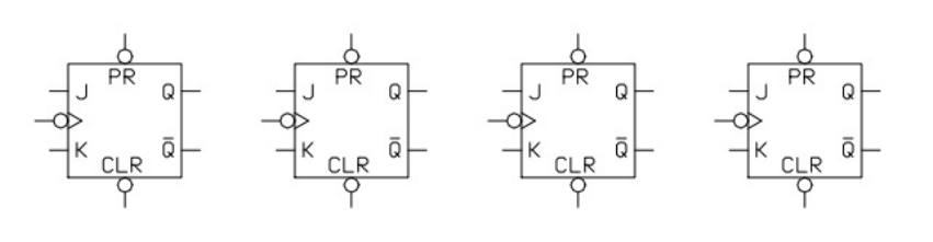 SEL0414 – Sistemas Digitais Prof. Dr. Marcelo A. C. Vieira Lista 13 – Contadores Assíncronos 1) Um contador é necessário para contar o número de itens que passam por uma esteira de transporte. Uma fotocélula combinada a uma fonte de luz é usada para gerar um único pulso cada vez que um item passa pelo feixe de luz. O contador tem de ser capaz de contar mil itens. Quantos FFs são necessários? 2) Verdadeiro ou Falso? Em contadores assíncronos todos os FFs mudam de estado ao mesmo tempo. 3) Considere um contador assíncrono de 5 bits em que o sinal de clock é uma onda quadrada de 8MHz. a. Qual será a frequência na saída do último FF? Qual será o ciclo de trabalho desse sinal? b. Repita o item a) para um sinal de clock com ciclo de trabalho de 20%. c. Qual será a frequência na saída do terceiro FF? d. Qual é o modulo desse contador? 4) Esquematize utilizando FF JK, um contador assíncrono que conte de: a. 0000 - 1111 b. 1111 - 0000 c. 0000 – 0111 d. 0101 – 0000 5) Esquematize utilizando um FF JK um contador assíncrono para trabalhar como um divisor de frequência por 5. Desenhe as formas de onda para tal finalidade. 6) Interligue os FF abaixo de modo a formar um contador assíncrono de 0 a 13 com terminal de RESET, indicando as saídas e a entrada de clock. Acrescente as portas lógicas necessárias. Figura 1 7) Interligue os FF abaixo de modo a formar um contador assíncrono decrescente de 15 a 6 com terminal de RESET, indicando as saídas e a entrada de clock. Acrescente as portas lógicas necessárias. Figura 2 8) Interligue os FF abaixo de modo a formar um contador assíncrono de 3 a 7 com terminal de RESET, indicando as saídas e a entrada de clock. Acrescente as portas lógicas necessárias. Figura 3