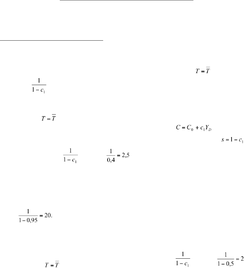 1 Universidade de São Paulo Faculdade de Economia e Administração Departamento de Economia Prof. Dr. Juarez Alexandre Baldini Rizzieri Monitor José Carlos Domingos da Silva (jcds@usp.br) Lista 1 de Macroeconomia 1: Mercado de Bens GABARITO Questão 01- Para cada afirmação abaixo indique se a mesmo é falsa ou verdadeira. Justifique sua resposta para cada item. a) Sobre o multiplicador, seu valor não pode ser menor do que zero. Verdadeira. Dada que a propensão a consumir é maior que zero (e menor que 1), necessariamente o multiplicador terá um valor positivo. Considerando o multiplicador será igual a . b) se a propensão marginal a poupar for igual a 0,4, então o valor do multiplicador será de 2,5 (considere: ). Verdadeira. Considerando que o consumo seja dado por , onde c1 é a propensão marginal a consumir (a propensão marginal a poupar é dada por ). O multiplicador é igual a , ou seja: . c) quanto menor a propensão marginal a consumir, menor será o valor do multiplicador d) seu valor não pode ser maior do que 10. Falsa. A primeira parte da afirmação está correta, porém o multiplicador pode ser maior que 10, por exemplo, se a propensão marginal a consumir for igual 0,95 o multiplicador será igual a e) numa economia fechada e sem governo, se a propensão marginal a consumir for igual a 1/2, então o valor do multiplicador será igual a 2. Verdadeira para , pois neste caso, multiplicador é igual a , logo se . f) sobre o multiplicador, seu valor é necessariamente maior do que 0,5. Verdadeira. Seu valor é necessariamente maior que 1, logo, é necessariamente maior que 0,5. 2 g) na possibilidade de a propensão marginal a poupar ser igual à propensão marginal a consumir, o valor do multiplicador será igual a 1. Falsa. Temos que . Caso os dois sejam iguais, o multiplicador, considerando , será igual a . h) se a propensão marginal a consumir for menor do que a propensão marginal a poupar, então o multiplicador será necessariamente menor do que 2. Verdadeira. Vide resposta acima. i) sobre o multiplicador, seu valor tende a ser maior quanto menor for a propensão marginal a poupar. Verdadeira. Quanto menor a propensão marginal a poupar, maior será a propensão marginal a consumir, logo maior o valor numérico para . Questão 02- Considere as seguintes equações comportamentais de uma economia: renda agregada: Y = C + I + G; onde: C = α + β.(Y – T); T = γ + δ.Y. Onde: α >0; 0 < β < 1; γ > 0; e 0 < δ < 1. Sendo ainda: gatos do governo (G) e investimentos (I) são exógenos. a- Resolva para o produto de equilíbrio. b- Qual o multiplicador? Essa economia responde mais a alterações dos gastos autônomos quando t=0 (trocar por δ=0) ou quando t>0(trocar por δ>0)? Explique. Caso , necessariamente temos , c- Por que neste caso a política fiscal é chamada de ‘estabilizados automático’? No caso, mudanças no orçamento do governo atuam como estabilizadores automáticos. Dado que o nível de atividade econômica afeta diretamente uma das fontes de arrecadação do governo, onde T = γ + δ.Y, a parte do imposto relacionada à renda (δY) atuaria como um estabilizador automático para o nível de atividade econômica, ou seja, elevações ou reduções do impostos, nesta esfera, estão associados diretamente à variação da atividade econômica . 3 Questão 03- Tendo o Multiplicador do orçamento equilibrado, se e , mostre algebricamente que se observarmos, tudo o mais constante, e simultaneamente , ou seja, G e T estão se elevando em $10, temos . Como o valor da propensão marginal a consumir afeta os resultados acima obtidos? Considere que: ; ; Note que, tudo o mais constante, a renda é afetada pela elevação de uma do gasto do governo é dada por . E, tudo o mais constante, a renda é afetada pela elevação de uma unidade de imposto (exógeno) por . A soma dos dois efeitos é dada por , pois . Neste caso, uma elevação de uma unidade de G e, simultaneamente, uma redução de uma unidade de T elevaria o produto em uma unidade. Se, tudo o mais constante, observarmos e teremos . . 4 Questão 04- Considere as seguintes equações comportamentais de uma economia: ; ; Onde os gastos do governo são constantes. a- Qual o valor do multiplicador? Qual a condição para que o seja positivo? Logo, o multiplicador é dado por ,onde a condição para que o mesmo seja positivo é dada por . b- Suponha que o parâmetro b0, às vezes chamado de confiança dos negócios, aumente. Como o produto será afetado? O investimento mudará mais ou menos do que a mudança de b0? Note que para cada unidade adicional de b0 o produto variará em . Sendo o investimento dado por . Sendo , temos: . Sabemos que a cada unidade adicional de b0 temos: . Temos que . Vide demonstração abaixo. , sendo c1 é positivo, consequentemente temos: . Ou seja, o investimento mudará menos que a renda em relação a variações, tudo o mais constante, de b0. 5 Questão 05- Considere o modelo de determinação da renda onde Y = produto agregado; C = consumo agregado; C0 = consumo autônomo; I = investimento agregado; Sabendo- se que Y = 1.600; C0 = 50; I = 250; G = 100. Pode-se afirmar que a propensão marginal a poupar é igual a? , onde é a propensão marginal a consumir. Sendo a propensão marginal a poupar dada por Questão 06- Considere as seguintes informações para uma economia fechada e com governo: Y = 1200; C = 100 + 0,7.Y; I = 200. onde: Y = produto agregado; C = consumo agregado; I = investimento agregado. Com base nestas informações, pode-se afirmar que, considerando o modelo keynesiano simplificado, para que a autoridade econômica consiga um aumento de 10% no produto agregado, os gastos do governo terão que sofrer um aumento de? A renda de equilíbrio é dada por: . Onde a variação da renda em relação a uma unidade adicional de G é dada por: Fazendo um pequeno rearranjo dos termos, temos: . Para elevar a renda em 10% (12), temos . Ou seja, para elevar a renda e