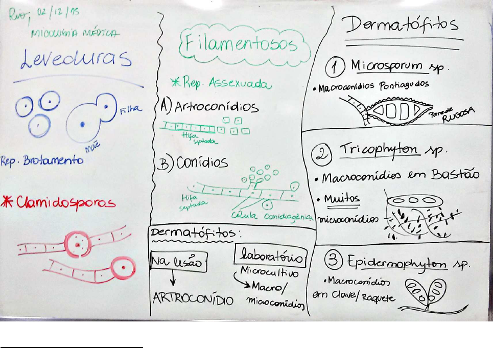 Micologia Fungos patogênicos --> causadores de micoses superficiais, cutâneas, subcutâneas, sistêmicas e oportunistas. Micoses superficiais e cutâneas As micoses superficiais são causadas por fungos que colonizam as camadas mais externas, já queratinizadas, da pele. Assintomáticas, não estimulam resposta imune. São fáceis de diagnosticar e tratar. Já as micoses cutâneas afetam a camada córnea da epiderme (em processo de queratinização). Raramente penetram abaixo da camada granular. Malassezia furfur Causador da micose superficial chamada ptiríase (ptyriasis) versicolor (tinea versicolor, pano branco, micose de praia, etc). É antropofílico (restrito a humanos, passando por contato direto ou uso de toalhas e vestuário contaminado). Gera máculas hipocrômicas e descamativas, sem prurido e sem dor. O fungo produz ácido azelaico, que inibe a tirosinase, necessária para a produção de melanina. É lipofílico, se alimentando de ácidos graxos presentes no suor e na camada superficial da pele. Pode causar também dermatite seborreica (caspa), foliculite ptirospórica e dermatite atópica. O tratamento consiste no uso de loções e sabonetes ricos em metais pesados (sulfato de selênio e zinco, por ex.). Em casos de infecções mais severas, pode-se usar cetoconazol oral (hepatotóxico). Cultura --> feita com adição de óleo de oliva ao meio. Colônias de cor creme, brilhantes, compostas principalmente por leveduras agrupadas. Observar blastoconídios (brotamentos) a partir das leveduras. Lesões --> o tratamento do material obtido a partir da lesão mostra leveduras agrupadas e hifas curtas e tortuosas. Dermatofitoses (Tineas) Dermatófitos --> Os dermatófitos são fungos que têm capacidade de invasão dos tecidos queratinizados nos animais domésticos, em seres humanos e outros animais, originando uma infecção denominada de dermatofitose. Os dermatófitos são queratinofílicos e queratinolíticos e sua elevada afinidade com tecidos queratinizados torna-os responsáveis por micoses superficiais e cutâneas que afetam pele, pelos, unhas, cabelo e barba. Taxonomicamente, os dermatófitos classificam-se nos gêneros: Microsporum, Trichophyton e Epidermophyton. A secreção de queratinase e invasão da epiderme provoca resposta imune inflamatória, que causa prurido. A transmissão se dá por contato com escamas da pele ou pêlos parasitados, ou ainda areia ou terra contendo elementos fúngicos viáveis. As lesões se apresentam como um anel de escamação inflamatória mais intensa na borda, de aspecto avermelhado, do que no centro (retira-se material da borda para diagnóstico). Quando em pêlos, pode gerar alopécia com eritema e descamação. Quando na unha (onicomicose) ou pés, pode gerar dor e coceira conforme o fungo penetra em camadas mais internas da pele. Identificação do fungo em pêlos pode ser feito por uso da Lâmpada de Wood, que quando aplicada sobre o pêlo infectado provoca um brilho dourado por fluorescência do fungo. Seu crescimento é inibido por calor, logo, causam somente infecções na superfície do organismo . O tratamento se dá com uso tópico de preparados à base de enxofre, ácido salicílico, iodo, etc e derivados imidazólicos. Via oral, utiliza-se cetoconazol e griseofulvina. Endothrix --> colonização DENTRO do fio de cabelo. Ectothrix --> colonização na superfície externa do fio. A invasão fúngica nos fios de cabelo e pêlos também pode ser do tipo ecto-endothrix (quando os conídios colonizam tanto dentro do fio quanto na superfície externa) ou favus (quando há a formação de hifas DENTRO do fio). Em se tratando de micoses de pele e unhas, observa-se a presença de hifas e artroconídios. Os artroconídios são formados a partir de fissões que só ocorrem em hifas de micélio septado, gerando conídios (brotamentos compartimentalizados), que se reproduzem e formam um talo germinal. Epidermophyton sp. Reparar no macroconídeo na foto, que possui um polo afunilado e outro abaulado (forma de clava ou bastão), de parede lisa, geralmente agrupados de 2 a 3. Ausência de microconídeos. Micélio septado. O Epidermophyton é de transmissão inter-humana (antropofílico) Microsporum sp. Macroconídeo em forma de folha (abaulado no centro, afunila nos polos), com parede espessa. Microconídeos arredondados. Micélio septado. Trichophyton sp. Macroconídeo em forma de bastão ou clava com parede lisa. Microconídeos alongados ou piriformes (MUITOS). Micélio septado. Principais espécies de Trichophyton: Trichophyton rubrum Em meio sólido (ágar Sabouraud)--> superfície "algodonosa", branca e elevada. A porção interna do fungo no meio sólido é avermelhada "sangue venoso". Apresenta hifas hialinas septadas; microconídeos em forma de lágrima agrupados ao redor das hifas ou formando cachos; macroconídeos em quantidade variável, em forma de lápis (finos e alongados), parede lisa e vários septos. Trichophyton schoenleinii Em meio sólido (ágar Sabouraud)--> superfície elevada, com muitas dobras, aveludada, aspecto de cera. A porção interna do fungo no meio sólido é branca. Apresenta hifas hialinas septadas; microconídeos e macroconídeos ausentes. Hifas terminam em protuberâncias bifurcadas (candelabros fávicos). Principais manifestações clínicas: Denominação Localização das lesões Tinea pedis (pé-de-atleta) Espaços interdigitais dos pés Tinea cruris (prurido de jóquei) Virilha Tinea barbae Pêlos da barba Tinea unguium Unhas (onicomicose) Tinea corporis Pele lisa e glabra (possui uma camada mais grossa e não há presença de pêlos. Loccaliza-se em zonas sujeitas a maior atrito como palma das mãos e planta pés) Tinea capitis Couro cabeludo Testes adicionais de diferenciação de fungos dermatófitos: 1) Prova da urease -> A metodologia é simples e consiste em semear fragmentos da colônia no Meio de Christensen e incubar a temperatura ambiente (25 °C) por 96 horas. O resultado é considerado 