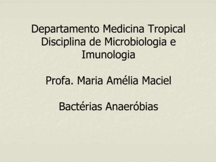 Departamento Medicina Tropical Disciplina de Microbiologia e Imunologia Profa. Maria Amélia Maciel Bactérias Anaeróbias Divisão dos Micro-organismos quanto a sua necessidade de oxigênio Respiração anaeróbica São bactérias capazes de realizar o processo de respiração, em anaerobiose. O aceptor de elétrons seria outro elemento, e não o oxigênio. Principais mecanismos de respiração anaeróbica encontrada em procariotos Denominação da respiração Aceptor de elétrons/Produto final Bactérias e arqueas que realizam Carbonato CO2- CH3COO Bactérias Homoacetogênicas Carbonato CO2- CH4 Bactérias Metanogênicas Enxofre S-HS Bactérias anaeróbias estritas ou facultativas Sulfato SO4- Bactérias anaeróbias estritas Nitrato NO3 Bactérias anaeróbias facultativas Ferro Fe Bactérias e arqueas Oxigênio Aeróbicas obrigatórias- requerem O2 para o processo de respiração e crescimento. Anaeróbicas obrigatórias- não utilizam o O2, em presença deste podem ser inativas ou inibidas. Classificação dos Anaeróbios -Estritos: incapazes de crescer na superfície do agar exposto a níveis de O2 superiores a 0.5%. -Moderados: capazes de crescer quando expostos a níveis de O2 de 2% a 8%. -Anaeróbios aerotolerante: bactérias que exibem crescimento limitado ou escasso em ágar incubado em estufa com ambiente 10% de CO2, mas que tem bom crescimento em condições de anaerobiose. - Microaerófilas: preferem crescer em uma atmosfera com tensão reduzida (5%) de O2 mas podem crescer em meios sólidos em atmosfera com 10% de CO2. Anaérobios facultativos Crescem em condições aeróbicas ou anaeróbicas, utiliza o oxigênio como aceptor porém podem obter sua energia através de reações de fermentação. Classificação das bactérias em relação ao O2 Grupo Aerobiose Anaerobiose Efeito do O2 Aeróbico obrigatório Cresce Não cresce Requerido Microaerófilo Cresce pouco Não cresce Níveis abaixo de 0,2 atm Anaeróbico obrigatório Não cresce Cresce Tóxico Facultativo Cresce Cresce Não é requerido , mas pode ser utilizado Anaérobico aerotolerante Cresce Cresce Não é requerido , nem é utilizado Exemplos Estritos- Clostridium haemolyticum, Clostridium novyi obs. Raros em casos de infecção humana, porém fazem parte da microbiota. Moderados – Bacteroidis fragilis e Clostridium perfrigens, C. difficile. Aerotolerantes- Clostridium cannis ,C. tertium Facultativos – Staphylococcus aureus e Escherichia coli. Microaerófilas- Campylobacter jejuni Tolerância ao Oxigênio Observações- Anaeróbias estritas –expostas por 10 minutos morrem, mas as bactérias anaeróbias moderadas toleram mais oxigênio em processos infecciosos. Características gerais das anaeróbias Anaeróbias obrigatórias, aerotolerantes ou anaeróbias facultativas - ausencia de citocromos - ausencia ou pequena quantidade de catalase, peroxidase e superoxido desmutase Microbiota normal da pele e de mucosas Infecções endógenas Infecções mistas Sintetizam lipases, colagenases, proteases, lecitinases Anaeróbios pertencentes a Microbiota Trato Respiratório Superior Pele Uretra Vagina Fusobacterium Veilonella Prevotella Porphyromonas Propionibacterium Peptostreptococcus Eubacterium Bacteroides spp. Fusobacterium Prevotella Veillonella Peptostreptococcus Mobilluncus Lactobacillus Eubacterium Anaeróbios pertencentes a Microbiota Estomago Intestino delgado Intestino (terminal) Lactobacillus Lactobacillus Lactobacillus Bacteroides fragilis Clostridium spp. Eubacterium Bifidobacterium Microbiota Anaeróbios clinicamente importantes Cocos Bacilos Gram positivos Coprococcus Peptostreptococcus Ruminococcus Gram positivos Formadores de esporos- Clostridium Não formadores de esporos Actinomyces Bifidobaterium, Eubacterium Lactobacillus, Mobilluncus Gram negativos Veilonella Gram negativos Bacteroides Fusobacterium Provotella Infecções As infecções causadas por bactérias anaeróbias são eventos clínicos comuns e algumas se manifestam de forma muito grave, cursando com altas taxas de letalidade. Além disso, as infecções anaeróbias facilmente escapam ao diagnóstico laboratorial por causa das precauções especiais necessárias à coleta e transporte dos espécimes clínicos. O não tratamento dos anaeróbios em infecções mistas geralmente resulta em resposta incompleta ou insucesso. E muitos agentes antimicrobianos, comumente utilizados em infecções graves, apresentam atividade limitada contra os anaeróbios. Paralelamente, a ocorrência de resistência natural ou adquirida aos antimicrobianos ativos tem aumentado progressivamente, tornando a resposta terapêutica ainda mais incerta. Microbiota/Infecção relação com ruptura da barreira cutânea A microbiota endógena das superfícies mucosas e, em menor extensão, da pele, é geralmente a fonte dos anaeróbios participantes de um processo infeccioso. Os anaeróbios superam os aeróbios numa razão de 10:1 na composição das floras oral e vaginal e de 1.000:1 no cólon. Outros aspectos importantes incluem o número de micro-organismos que alcançam os tecidos profundos (tamanho do inóculo) e os vários fatores de virulência (toxinas, enzimas e outras substâncias) produzidos pelos micro-organismos, bem como a integridade do sistema imune do hospedeiro. Infecção por anaeróbias Sítio anatômico Surgimento de infecção após mordida animal ou humana Infecção associada a tumores Odor fétido Presença de grânulos de enxofre no material clínico Bactérias Anaeróbias -Patologias Infecções anaeróbios de origem exógena Infecção hospitalar Clostridium difficile Botulismo Gastroenterites Clostridium difficile Tétano Infecções por mordeduras de animais e humanos Infecções em usuários de drogas injetáveis Infecções anaeróbios de origem endógena Abscessos Artrite séptica Apendicite ou colecistite Empiemas torácico Endocardite Periodontites Meningites após abscesso Oeteomielite Periotonite Sinusite Sítios mais comuns de Infec