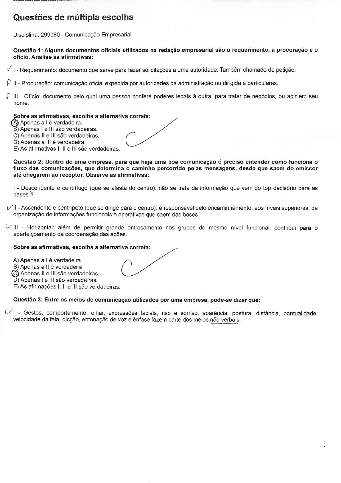 Prova Corrigida Comunicação Empresarial 1
