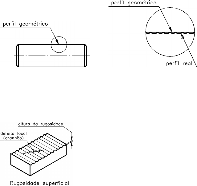 Estado de superfície Introdução Em alguns casos, para garantir a perfeita funcionalidade da peça, é necessário especificar, também, o acabamento das superfícies, isto é, a aparência final da peça e as propriedades que ela deve ter. As informações sobre os estados de superfície são indicadas, no desenho técnico, através de simbologia normalizada pela ABNT. Processos de fabricação e de acabamento de peças Quanto melhor o acabamento a ser obtido, maior o custo de execução da peça. Portanto, para não onerar o custo de fabricação, as peças devem apresentar o grau de acabamento adequado à sua função. A escolha do processo de fabricação deve levar em conta a forma, a função, a natureza da superfície, o tipo de material e os meios de produção disponíveis. Na prática, a superfície real da peça nunca é igual à superfície geométrica representada no desenho. A rugosidade consiste nas marcas ou sulcos deixados pela ferramenta utilizada para produzir a peça. As irregularidades das superfícies, que constituem a rugosidade, são as saliências e reentrâncias existentes na superfície real. A princípio, a avaliação da rugosidade era feita pela visão e pelo tato. A comparação visual e tátil dá uma idéia, mas não transmite a precisão necessária, levando a conclusões muitas vezes enganosas, e que não podem ser expressas em números. Depois, passou-se a utilizar microscópios, que permitiam uma visão ampliada da superfície a ser julgada. Porém, os microscópios apresentavam limitações: apesar de possibilitarem a medida da largura e espaçamento entre as saliências e reentrâncias não forneciam informações sobre suas alturas e profundidades. Atualmente, graças ao progresso da eletrônica, já existem aparelhos que fornecem informações completas e precisas sobre o perfil de superfícies analisadas. Por meio de uma pequena agulha, que percorre amostras de comprimento da superfície verificada, é possível obter informações numéricas e gráficas sobre seu perfil. Assim, utilizando aparelhos como: rugosímetro, perfilógrafo, perfiloscópio etc. é possível avaliar com exatidão se a peça apresenta o estado de superfície adequado ao seu funcionamento. Indicação de estado de superfície no Brasil Atualmente, a avaliação da rugosidade, no Brasil, baseia-se nas normas NBR6405/88 e NBR8404/84, que tratam a rugosidade de forma quantitativa, Avaliação da rugosidade A norma brasileira adota o sistema de linha média para avaliação da rugosidade. Veja, no desenho do perfil de uma superfície, a representação da linha média. A1 e A2 representam as saliências da superfície real. A3 e A4 representam os sulcos ou reentrâncias da superfície real. A norma NBR 8404/84 define 12 classes de rugosidade, que correspondem a determinados desvios médios aritméticos (Ra) expressos em mícrons ((m). Veja, na tabela reproduzida a seguir, as 12 classes de rugosidade e os desvios correspondentes. Tabela: Características da rugosidade (Ra) Classes de rugosidade Desvio médio aritmético Ra ((m) N 12 50 N 11 25 N 10 12,5 N 9 6,3 N 8 3,2 N 7 1,6 N 6 0,8 N 5 0,4 N 4 0,2 N 3 0,1 N 2 0,05 N 1 0,025 Indicação de rugosidade nos desenhos técnicos Símbolo indicativo de rugosidade O símbolo básico para a indicação da rugosidade de superfícies é constituído por duas linhas de comprimento desigual, que formam ângulos de 60º entre si e em relação à linha que representa a superfície considerada. Este símbolo, isoladamente, não tem qualquer valor. Quando, no processo de fabricação, é exigida remoção de material, para obter o estado de superfície previsto, o símbolo básico é representado com um traço adicional. A remoção de material sempre ocorre em processos que envolvem corte, exemplo: o torneamento, a fresagem, etc... . Quando a remoção de material não é permitida, o símbolo básico é representado com um círculo, como segue. Este símbolo pode ser utilizado, também, para indicar que o estado de superfície deve permanecer inalterado Quando for necessário fornecer indicações complementares, prolonga-se o traço maior do símbolo com um traço horizontal e escreve-se a informação desejada. Exemplo, está indicando o processo de remoção de material por fresagem. Indicação do valor da rugosidade O valor da rugosidade vem indicado sobre o símbolo básico, com ou sem sinais adicionais. Fig. A Fig. B As duas formas de indicar a rugosidade (figuras A e B) são corretas. Quando for necessário estabelecer os limites máximo e mínimo das classes de rugosidade, estes valores devem ser indicados um sobre o outro. O limite máximo deve vir escrito em cima. Nesse exemplo, a superfície deve ter uma rugosidade Ra compreendida entre um valor máximo N 9 e um valor mínimo N 7 que é o mesmo que entre 6,3 (m e 1,6 (m. Símbolo para a direção das estrias Há uma outra característica microgeométrica que deve ser levada em conta no processo de fabricação e na avaliação da rugosidade: trata-se da direção das estrias, que são as pequenas linhas ou os sulcos deixados na superfície usinada pela ferramenta usada no processo de fabricação da peça. Quando for necessário definir a direção das estrias isso deve ser feito por um símbolo adicional ao símbolo do estado de rugosidade. Símbolos para direção das estrias - quadro sinótico Símbolo Interpretação Paralela ao plano de projeção da vista sobre o qual o símbolo é aplicado. Perpendicular ao plano de projeção da vista sobre o qual o símbolo é aplicado. Cruzadas em duas direções oblíquas em relação ao plano de projeção da vista sobre o qual o símbolo é aplicado. Muitas direções. Aproximadamente central em relação ao ponto médio da superfície ao qual o símbolo é referido. Aproximadamente radial em relação ao ponto médio da superfície ao qual o símbolo é referido. Indicação de sobremetal para usinagem Quando uma peça fundida de
