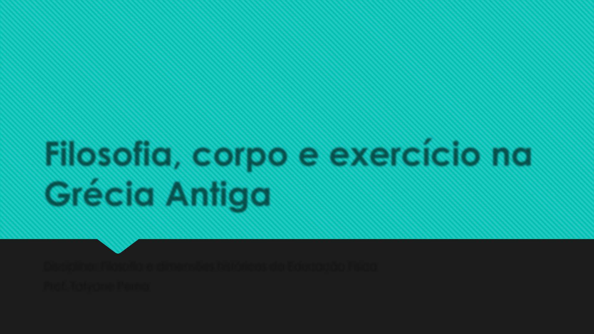 Filosofia, corpo e exercício na Grécia Antiga Disciplina: Filosofia e dimensões históricas da Educação Física Prof. Tatyane Perna A Grécia, berço da cultura ocidental, viveu, em meados do século V a.C., uma grande explosão intelectual que abrangeu as esferas mais variadas do saber humano: Filosofia Astronomia Medicina Arquitetura Poesia Teatro Direito Educação Os grandes pensadores se debruçaram na temática que colocava o homem como centro do discurso (antropocentrismo); É nesse meio que as questões do corpo e do exercício passam a ser discutidas a fundo por filósofos e seus discípulos; O corpo era um elemento da existência humana bastante valorizado e cultuado na Grécia Antiga; Os pensadores gregos buscavam dissociar o corpo da alma; Eles acreditavam ser entidades distintas, que viveriam em equilíbrio durante a existência humana; O corpo representava o mundo material, suas imperfeições, instabilidades e degradações; Já a mente seria a morada dos pensamentos e das ideias, onde tudo poderia ser perfeito. Sócrates (470-399 a.C.) pensava na perspectiva do autoconhecimento; A consciência do corpo e da alma levava à evolução do ser humano (“conhece-te a ti mesmo”); Sócrates acreditava no equilíbrio entre corpo, alma e mente, sendo que nenhuma dessas partes poderia ser atingida sem que as demais também sofressem; Seu pensamento estimulou a assimilação e prescrição da ginástica médica, que buscava a saúde do corpo e o equilíbrio do homem como um todo. Platão (427-347 a.C.) foi discípulo de Sócrates: Defendia a alma como entidade perfeita e eterna, ao contrário do corpo, o qual considerava apenas a morada mundana e imperfeita da alma; Não negava a importância dos cuidados para com o corpo, sobretudo a prática da ginástica e das disputas atléticas; No entanto, o adestramento do corpo não deveria sobrepor o preparo da mente e da alma; Criou, em Atenas, a Academia, escola que preconizava a educação do homem como um todo (Paideia); Aprendiam Filosofia, Poesia e Astronomia e treinavam seu corpo com a prática da ginástica; Sobretudo, dedicavam-se à Matemática (Geometria). A preocupação com o corpo na Grécia Antiga não ficava apenas na esfera filosófica; Os gregos se preocupavam bastante com os próprios corpos, sendo o exercício físico uma prática muito disseminada na cultura; A veneração pelo corpo era refletida na construção mitológica da Grécia Antiga Os gregos cultuavam uma centena de deuses antropomórficos, aos quais atribuíam histórias e responsabilidades, que explicavam os acontecimentos terrenos. Para homenagear os deuses, os gregos realizavam disputas atléticas, denominadas jogos, onde os mortais tentavam copiar os feitos dos deuses; Nesses jogos, os campeões recebiam o título de semideuses e recebiam o status de heróis sobre-humanos; A preparação do físico para a participação nos jogos era uma tradição e envolvia os jovens desde a infância; Além da perspectiva religiosa, a preparação do corpo viril, robusto e enérgico era justificada pela postura agonística (de enfrentamento) do grego; Em função das constantes guerras enfrentadas pelos povos gregos, a cultura helênica cunhou um importante valor moral denominado aretê; O aretê tinha por característica valorizar a coragem e a prontidão do grego para o combate; Fugir, esconder-se, acovardar-se ou mesmo vacilar em uma situação de confronto não era tolerado dentro da ética grega antiga. Outra característica da cultura grega antiga que valorizava os cuidados com o corpo era a visão da beleza como valor moral desejável; Nas diversas áreas da cultura a funcionalidade das coisas não bastava, a beleza era fundamental; Assim, a arquitetura era bastante rebuscada, as poesias, vestimentas e obras de arte aspiravam à beleza como valor moral; O corpo humano também se enquadrava nessa forma de pensar; A beleza do corpo era desejável, alguém que não cuidasse de seu próprio corpo não era bem visto na sociedade, não inspirava confiança, sobretudo se fosse adepto dos vícios da bebida, da comida e do ócio. A apreciação da beleza do corpo durante os exercícios e competições era evidenciada pelo hábito de exercitar-se nu; Os gregos apreciavam as formas corporais executando os gestos de luta, os lançamentos de disco e dardo, as corridas; Em função disso, encontramos inúmeras estátuas representando gestos atléticos, nas quais os modelos encontram-se nus; A própria origem etimológica da palavra “ginástica” significa a arte de exercitar-se nu. A estátua mais conhecida nesta categoria é o Discóbolo, de Míron, símbolo da Educação Física: • Discóbolo (Lançador de discos) é uma famosa estátua do escultor grego Mirón - produzida em torno de 455 a.C. - que representa um atleta momentos antes de lançar um disco; • Mirón representa o corpo em seu momento de máxima tensão; • Assim como tantas outras obras gregas, perdeu-se o original feito de bronze e restaram apenas cópias romanas; • É uma das estátuas mais conhecidas da arte grega e a estátua mais famosa de um desportista em ação. Educação... O modelo educacional preconizado pelos educadores e filósofos buscava formar o Homem Integral; Essa educação global foi denominada Paideia e foi aplicada, sobretudo, nas cidades gregas aliadas de Atenas, adeptas do modelo democrático e possuidoras de grande desenvolvimento intelectual; As cidades aliadas de Esparta tinham uma sociedade militarizada e a educação priorizava o desenvolvimento físico e o adestramento para as guerras. A cultura da Grécia Antiga e o exercício Os gregos eram um povo mercantilista e por isso tinham grande domínio na tecnologia naval; Algumas cidades, tais como Atenas, foram verdadeiras potências comerciais e militares com esquadras grandiosas e poderosas; Outras cidades, tais como Esparta, foram grandiosas como potências militares terrestres; Nota-se que os gregos eram muito