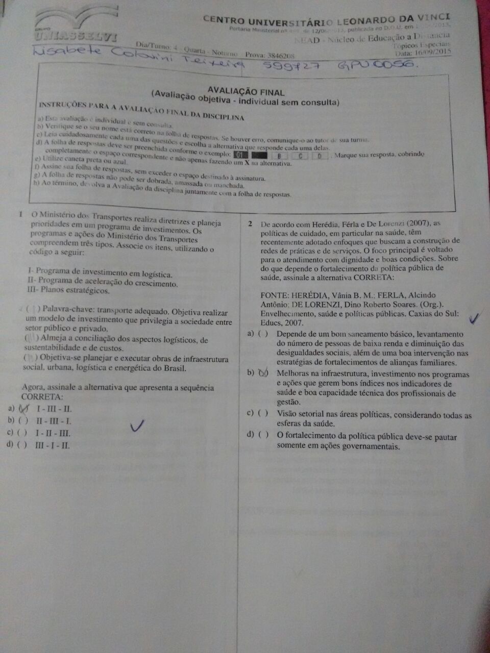 QUESTIONÁRIO UNIDADE I ED I - UNIP