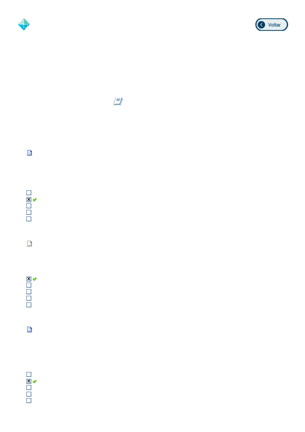 17/05/2018 EPS http://simulado.estacio.br/alunos/ 1/2 ISRAEL DA SILVA MARTINS 201602630518 CONSTANTINO NERY AVALIAÇÃO MORFOFUNCIONAL Avaliando Aprend.: SDE0048_SM_201602630518 V.1 Aluno(a): ISRAEL DA SILVA MARTINS Matrícula: 201602630518 Desemp.: 0,5 de 0,5 21/04/2018 20:08:05 (Finalizada) 1a Questão (Ref.:201602777729) Pontos: 0,1 / 0,1 Um estagiário de Educação Física estava observando uma avaliação antropométrica de circunferências musculares e anotou os pontos anatômicos de algumas medidas: I) Trena passou sobre a cicatriz umbilical; II) medida realizada no ponto mais estreito entre a última costela e a crista ilíaca; e III) medida realizada no plano horizontal no ponto mesoesternal. Assinale a alternativa que corresponde à sequência de medidas de circunferências anotadas pelo estagiário: I) Adbome; II) Cintura; III) Quadril. I) Abdome; II) Cintura; III) Tórax. I) Cintura; II) Abdome; III) Tórax. I) Quadril; II) Tórax; III) Abdome. I) Cintura; II) Abdome; III) Quadril. 2a Questão (Ref.:201603281987) Pontos: 0,1 / 0,1 A medida do perímetro distal da coxa deve ser realizada no terço distal da coxa, próximo a patéla. Sendo assim, está é a medida da coxa realizada mais próxima da articulação do joelho. PORQUE O perímetro proximal da coxa consiste na área de maior secção transversa dos músculos da coxa, sendo assim um dos dois pontos padronizados para a coleta dos perímetros. a primeira afirmação é verdadeira e a segunda é falsa. as duas afirmações são verdadeiras e a segunda justifica a primeira. as duas afirmações são verdadeiras e a segunda não justifica a primeira. a primeira afirmação é falsa e a segunda é verdadeira. as duas afirmações são falsas. 3a Questão (Ref.:201602777751) Pontos: 0,1 / 0,1 Na avaliação da quantidade de gordura corporal pelo método de dobras cutâneas, para minimizar os possíveis erros intra e inter-avaliadores, é necessário seguir uma série de procedimentos. Quanto ao protocolo de medidas de dobras cutâneas pode-se afirmar que: I. Para efetuar a leitura de medida o avaliador deve aguardar o ponteiro do adipômetro parar completamente; II. Todas as medidas devem ser realizadas de forma bilateral, ou seja, nos lados direito e esquerdo do corpo; III. Durante a medida o adipômetro deve ser posicionado perpendicularmente a dobra cutânea. Assinale a alternativa correta: Somente a afirmativa II está correta Somente a afirmativa III está correta Somente a afirmativa I está correta As afirmativas II e III estão corretas As afirmativas I e II estão corretas 17/05/2018 EPS http://simulado.estacio.br/alunos/ 2/2 4a Questão (Ref.:201602784585) Pontos: 0,1 / 0,1 Ao interpretar o gráfico abaixo podemos perceber uma inverção de valores em relação aos anos de 1975 a 1997. Observe as afirmativas e marque a opção correta: I - A desnutrição reduziu menos da metade em 22 anos. II - A obesidade duplicou em 22 anos. III - A desnutrição reduziu numa maior proporção em relação ao aumento da obesidade. Nenha das opções estão corretas II e III, estão corretas I e II, estão corretas Apenas a III está correta I, II e III estão corretas 5a Questão (Ref.:201602784586) Pontos: 0,1 / 0,1 O índice relação cintura quadril tem forte relação com a gordura visceral porque quando dividimos a circunferência da cintura pelo quadril, e o valor for > 0,86 para mulheres e > 0,95 para homens significa que há presença da gordura andróide, ou seja visceral. As duas asserções são proposições verdadeiras, mas a segunda não é uma justificativa correta da primeira. A primeira asserções é uma proposições verdadeira, e a segunda, uma proposição falsa. A primeira asserções é uma proposições falsa, e a segunda, uma proposição verdadeira. As duas asserções são proposições verdadeiras, e a segunda é uma justificativa correta da primeira. Tanto a primeira quanto a segunda asserções são proposições falsas.