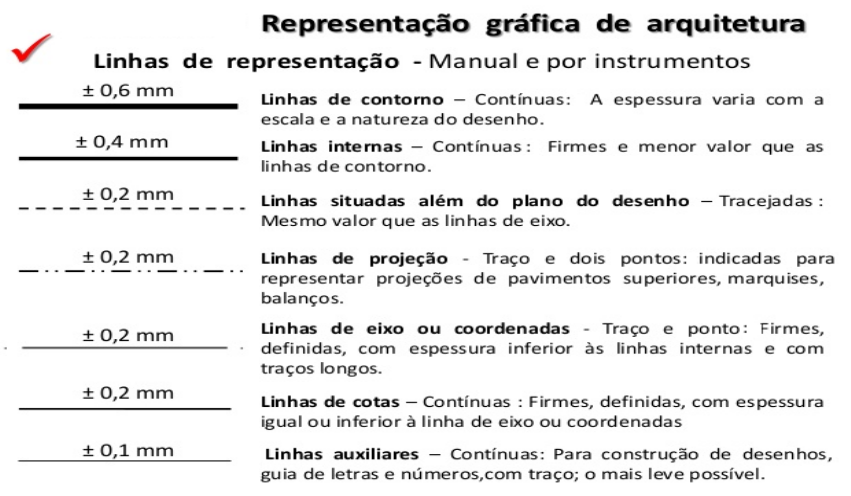 NOÇÕES DE DESENHO ARQUITETÔNICO (Eslaides) NORMAS TÉCNICAS NBR6492/94 – Representação de projetos de arquitetura; A IMPORTÂNCIA DAS NORMAS TÉCNICAS A normatização para desenhos de arquitetura tem a função de estabelecer regras e conceitos únicos de representação gráfica, assim como uma simbologia específica e pré-determinada, possibilitando ao desenho técnico atingir o objetivo de representar o que se quer tornar real. AS LINHAS TÉCNICAS as linhas são os principais elementos do desenho arquitetônico: definem o formato, dimensão e posicionamento das paredes, portas, janelas, pilares, vigas, objetos e etc.; determinam as dimensões e informam as características de cada elemento projetado; Conceitos deverão estar perfeitamente representadas dentro do desenho. desenho normatizado: devem ser regulares, legíveis (visíveis); devem possuir contraste umas com as outras (definição). plantas, cortes e fachadas: sugerem profundidade; linhas sofrem uma gradação no traçado em função do plano onde se encontram. primeiro plano → mais próximo: serão sempre mais grossas e escuras. segundo e demais planos visualizados – mais afastados – serão menos intensas. AS PRIORIDADES DE LINHAS Ordem de prioridade de linhas coincidentes: Se ocorrer coincidência de duas ou mais linhas de diferentes tipos, devem ser observados os seguintes aspectos, em ordem de prioridade: arestas e contornos visíveis (linha contínua larga); arestas e contornos não visíveis (linha tracejada); ABNT NBR 8403/84 Exercícios Prática de representação de símbolos gráficos arquitetônicos; BIBLIOGRAFIA ASSOCIAÇÃO BRASILEIRA DE NORMAS TÉCNICAS. NBR 6492 - Representação de projetos de arquitetura, Rio de Janeiro, RJ, 1994 ______ NBR 12298 – Representação de área de corte por meio de hachuras em desenho técnico, Rio de Janeiro, RJ, 1995. MONTENEGRO, Gildo. Desenho Arquitetônico. 4º edição. São Paulo: Edgard Blücher, 2001. SCHULER, Denise; MUKAY, Hitomi. Apostila da Disciplina de Desenho Técnico I. Curso de Arquitetura da Faculdade Assis Gurgacz – FAC. Cascavel. (200?). Disponível em: http://pt.scribd.com/doc/42762695/Apostila‐Desenho‐Arquitetura‐FAG.
