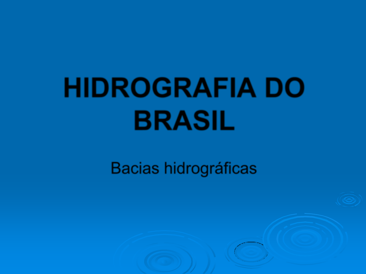 Clique para editar o estilo do título mestre Clique para editar o estilo do subtítulo mestre * * * HIDROGRAFIA DO BRASIL Bacias hidrográficas * * * Bacia hidrográfica * * * Bacia hidrográfica * * * Hidrografia – características gerais Reflete as condições de umidade do clima do país Rica em rios, mas pobre em lagos Predominância de rios de planalto, favoráveis à produção de energia Algumas bacias apresentam rios de planície, apropriados à navegação * * * Hidrografia – características gerais Regime de alimentação: pluvial, somente o rio Amazonas apresenta também o regime nival Predominam as cheias de verão e vazante de inverno Rios perenes, exceto alguns afluentes do São Francisco que são intermitentes Drenagem exorréica – deságuam no mar Tributários do oceano Atlântico Predominância da foz em estuário * * * Mapa das Bacias hidrográficas * * * Bacias hidrográficas Bacias Principais ou Primárias: Bacia do Rio Amazonas Bacia do Rio Tocantins Bacia do Rio São Francisco Bacia Platina Bacia do Rio Paraná Bacia do Rio Uruguai Bacia do Rio Paraguai * * * Bacias hidrográficas Bacias Secundárias: Bacia do Norte-Nordeste: Rio Amapá Rio Parnaíba Rio Capiberibe Bacia do Leste: Rio Doce Rio Jequitinhonha Rio Paraíba do Sul Bacia do Sul-Sudeste: Rio Tubarão Rio Jacuí Arroio Chuí * * * Bacia do Rio Amazonas Maior bacia do hidrográfica do planeta 3.9 milhões de km² no Brasil Cerca de 7.000 rios Amplo uso para navegação Maior potencial hidráulico disponível * * * Rio Amazonas Maior rio em extensão cerca de 7.100 km Maior rio em vazão – 180 mil m³/s Duas cheias anuais Foz mista Rio de planície – desnível de 82 metros em território nacional Incalculável potencial econômico Sujeito aos fenômenos da “terra caída” e da “pororoca” * * * Represa de Balbina, Amazonas Construída no Rio Uatumã, (170 quilômetros de Manaus) Área inundada de 2.360 km². O lago é muito raso: da lâmina d’água, 800 km² têm menos de quatro metros de profundidade. O maior problema: a floresta não foi cortada antes da inundação. A putrefação da matéria orgânica fez com que os peixes desaparecessem, devido ao gás sulfídrico. * * * Rio Madeira Um dos maiores afluentes do rio Amazonas, com 3.200 km Desempenha uma papel fundamental para o transporte regional * * * Rio Negro Principal afluente do rio Amazonas, desemboca no Amazonas em Manaus depois de percorrer 2.253 km * * * Rio Paraná Predominância de planaltos Apresenta o maior potencial instalado do país Aproveitamento intenso, mas insuficiente para as necessidades da região Sul-Sudeste * * * Eclusas A bacia do Paraná é navegável parcialmente a partir da construção de eclusas * * * Rio Paraná Produção de energia elétrica em grandes usinas Insuficiente para o atendimento da demanda Horário de Verão Racionamento de energia Os principais afluentes já estão intensamente aproveitados Paranaíba Grande Tietê Paranapanema Iguaçu * * * Rio Paraná Em implantação, a hidrovia do Mercosul, pretende ligar o interior de São Paulo à Buenos Aires * * * Rio Paraná - hidroeletricidade Principais usinas: Paraná: Itaipu – 12.600MW Complexo Urubupungá Sérgio Motta Tietê: Três Irmãos Promissão Grande: Marimbondo Ermírio de Moraes Paranaíba: Itumbiara São Simão Paranapanema: Rosana Capivara Xavantes * * * Itaipu Binacional Construída em conjunto por Brasil e Paraguai maior central hidrelétrica do mundo, com 18 turbinas instaladas (12.600 MW) inundou as espetaculares cataratas das Sete Quedas Alterou o micro-clima e alagou terras férteis * * * Vertedouro de Itaipu 390 metros e comprimento total de 483 metros, o vertedouro da usina de Itaipu tem capacidade máxima de descarga de 62.200 metros cúbicos de água por segundo. 14 comportas volume do reservatório é gigantesco: 29 bilhões de metros cúbicos de água, o equivalente a quase dez baías da Guanabara. * * * Rio São Francisco Bacia totalmente nacional: - nasce na Serra da Canastra – MG - foz em delta no Atlântico Serve à irrigação, transporte, alimentação e produção de energia * * * São Francisco Denominações: RIO DOS CURRAIS, RIO DA UNIDADE NACIONAL, NILO BRASILEIRO Perene, percorre o Sertão semi-árido nordestino Muitos tributários intermitentes * * * Rio São Francisco Navegável entre Pirapora-MG e Juazeiro-BA/Petrolina-PE, 1370 km Grande produção de energia: Três Marias – usina reguladora Sobradinho – reguladora, o maior reservatório Paulo Afonso, Itaparica, Xingó * * * Rio São Francisco Projeto de transposição * * * Rio Paraguai - hidrovia Aquecimento econômico do Centro-Oeste Importante para o Mercosul Fundamental para Paraguai e Bolívia Impacto ambiental * * * Rio Tocantins Pouco explorado Construção da U.H. de Tucuruí (2º maior) Produz 4.245 MW Araguaia – principal afluente Maior ilha fluvial – Ilha do Bananal Projeto de hidrovia Tocantins-Araguaia * * * Lago de Tucuruí * * * Água imobilizada: geleiras e lençóis freáticos profundos. Dessalinização: alto custo Reservatórios de água no planeta. Atualmente consumimos 54% dos recursos disponíveis. * * * Crise da água A redução dos estoques de água doce têm ocorrido devido: Ao crescimento da população mundial; A automação dos trabalhos domésticos; A expansão agrícola e industrial; A poluição ambiental Ao desmatamento das áreas de mananciais * * * Consumo de água no mundo - por setores Km³ * * * A agropecuária consome 2/3 da água utilizada no planeta. Bacia do rio São Francisco: Agricultura irrigada consome grande quantidade de água doce retirada dos rios e do subsolo. O uso de fertilizantes e pesticidas agrava o problema. * * * Contaminação por esgoto O alto índice de contaminação das águas têm dificultado a redução da mortalidade infantil no mundo. Saneamento básico no Brasil. * * * Países subdesenvolvidos 1990 – 30% da população não tinha acesso a água de boa qualidade e 45% não 