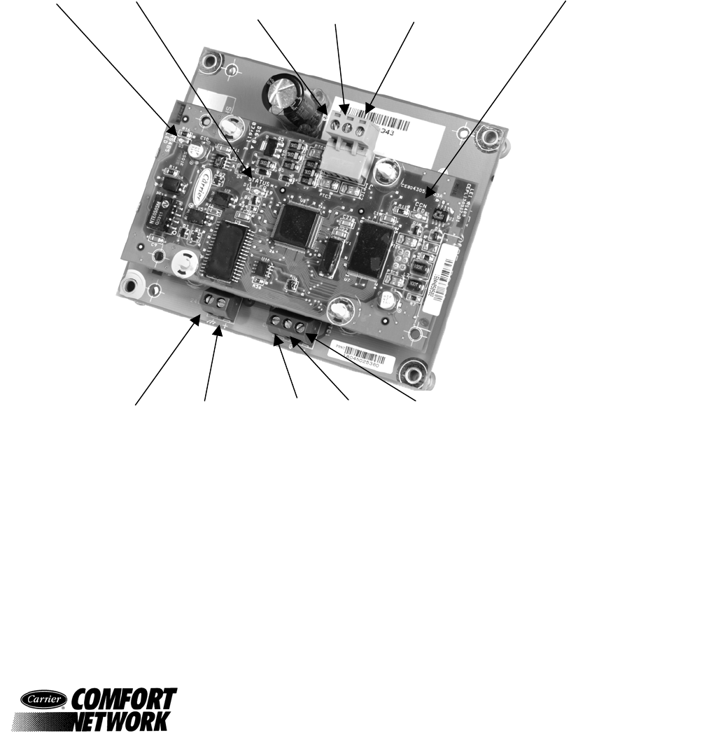 997-050010-1 01/05 Page 1 of 3 BACnet/Modbus Carrier Translator Installation Instructions The CCN Carrier Translator module with RS-485 serial communication (33CNTRAN485), shown below, is a microcontroller-based module that provides the ability to easily interface Carrier CCN controllers to third party non-Carrier control equipment. The BACnet/Modbus Carrier Translator provides CCN to Modbus Remote Terminal Unit (RTU) and BACnet Master-Slave/Twisted-Pair (MS/TP) protocol conversion. RS-485 LED Status LED Isolated RS-485 Connector (BACnet/Modbus) CCN LED (1) RS485+ (2) RS485 G (3) RS485- Ground + CCN- CCN Gnd CCN+ 24 Vac 24 Vac CCN Communication Connector 997-050010-1 01/05 Page 2 of 3 Installation Procedure 1. Install the Carrier Translator printed circuit board into the equipment’s CCN controls section and secure by inserting 4 sheet metal screws through the board’s integrated standoffs. 2. Connect a field supplied 24 Vac (3 VA minimum) transformer to the power connector. Note 1: The power can be shared with a single CCN controller’s 24 Vac transformer provided that you ensure there is sufficient VA available on the existing transformer. The Carrier Translator provides an isolated communications port that allows for power sharing with one other Carrier CCN controller that utilizes 24 Vac. When sharing power, make sure that the polarity of the power wires into the Carrier Translator (24 Vac + and Ground) are the same as at the source controller. Note 2: It is recommended that you provide a way to cycle power to the Carrier Translator without disconnecting wires. Table 1 Power Connector Terminal Assignment 3. If the CCN network consists solely of this Carrier Translator and its associated CCN controller, wire the Carrier Translator’s non-removable CCN communication connector to the CCN controller’s CCN communication connector. If the CCN network consists of multiple Carrier Translators and multiple associated CCN controllers, wire the CCN communication bus in accordance with all CCN network standards and address the Carrier Translators and CCN controllers appropriately. Table 2 CCN Connector Terminal Assignment 4. Wire the Carrier Translator’s removable RS-485 communication connector to the third party’s Modbus or BACnet MS/TP communication network as instructed by the third party representative. Carrier Translator Connector Signal + Supply Hot Supply Common Carrier Translator Equipment Connector Connector Signal + 1 CCN Data (+) G 2 CCN Signal Ground - 3 CCD Data (-) 997-050010-1 01/05 Page 3 of 3 LEDs The BACnet/Modbus Carrier Translator has three LEDs that are used to indicate operational status: LED Color Indicates Status Red Operating, initialization and configuration status. The LED blinks at a 2 Hz rate when initializing and at 1 Hz when operating correctly. CCN Yellow The Carrier Translator is sending CCN communication messages to the connected CCN controller. If the connected CCN controller is responding, its CCN LED will blink when a message is sent back to the Carrier Translator. RS-485 Green The Carrier Translator is sending RS-485 communication messages to the Modbus or BACnet MS/TP network.