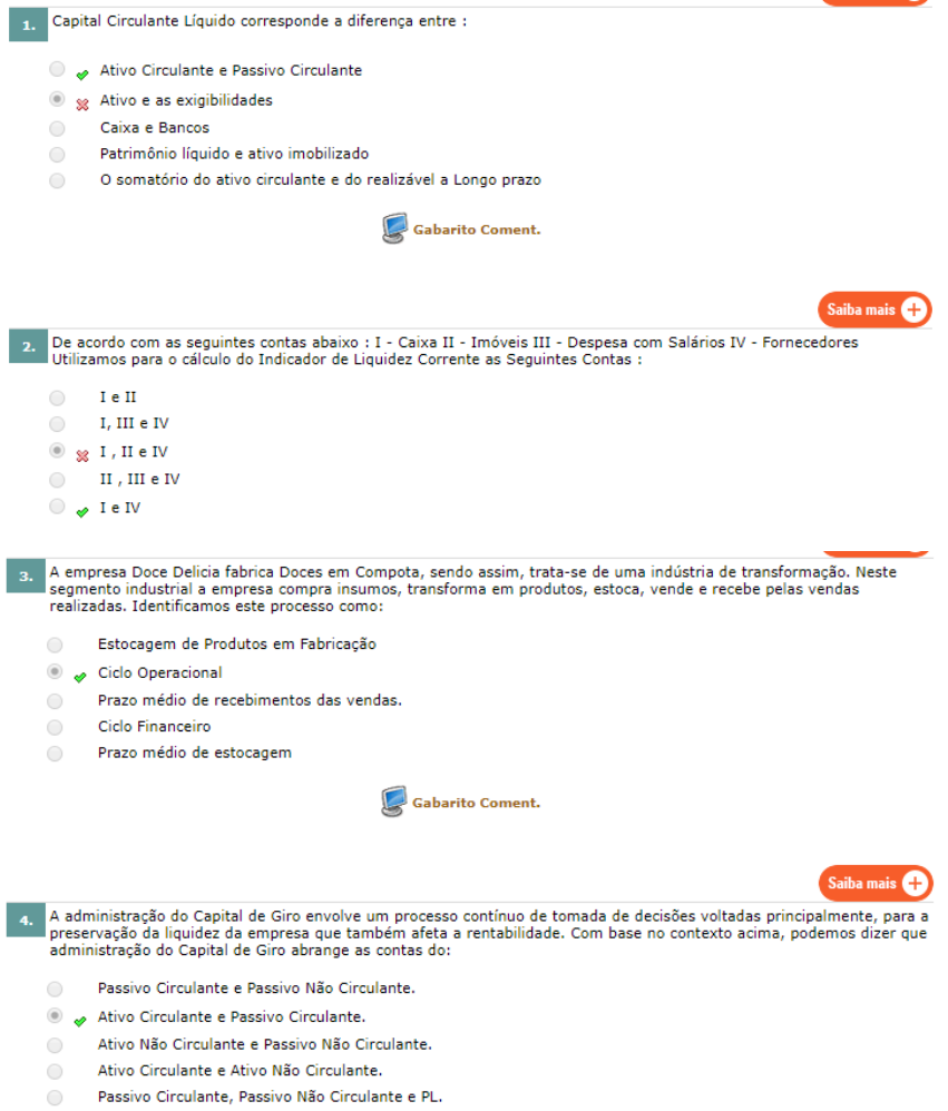 Questão: O Capital de Giro Líquido é negativo: Quando o Passivo Circulante é maior que o Ativo Circulante. Quando o Ativo Circulante é maior que o...
