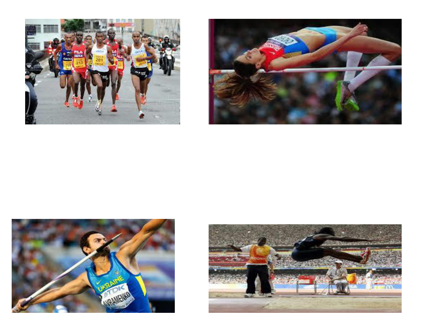 Ensino do atletismo Prof:esp. Diego Andrade Origem do atletismo • A relação do atletismo com o homem pré – histórico • Movimentos básicos e naturais do homem • Sentidos e significados do movimento Atletismo definição • o Atletismo é um esporte com provas de pista (corridas), de campo (saltos e lançamentos), provas combinadas, como decatlo e heptatlo (que reúnem provas de pista e de campo), o pedestrianismo (corridas de rua, como a maratona), corridas em campo (cross country), corridas em montanha, e marcha atlética, ou seja, conjunto de provas individual ou coletiva. (Mariano, 2002) Órgãos responsáveis • A CBAt - Confederação Brasileira de Atletismo é responsável pelo esporte no País. No plano mundial, a direção é da IAAF - sigla em inglês da Associação Internacional das Federações de Atletismo (1912) História do atletismo • Atletismo : competição • 1.225.a.c : surgi as primeiras aparições: pentatlo (corridas, lutas, salto em distancia, lançamento de dardo e lançamento do disco) História do atletismo • 776 a.c: jogos olímpicos antigos da (Grécia e Atenas) (Competição de habilidades físicas e de força) • 393 d.c :o imperador teodósio (Roma) suspende as competições por considerar pagãs. • Sec. XVII : Surgimento na Grã- Bretanha) • 1986 : criação dos jogos olímpicos da era moderna (Atenas e Grecia). Provas de atletismo • Provas de pista (corrida) • Corridas rasas de 100m; 200m; 400m; 800m; 1.500m, 5.000m e 10.000m • Corrida com barreira; 100m,110m; e 400m (masculino)feminino; 100m; e 400m • Corrida de revezamento;4x100;4x400 • Corrida com obstáculo: 3.000 • Marcha atlética; pista e rua 20.000m e 50.00m • Saltos; • Salto em distância, salto triplo, salto em altura e salto com vara. • Lançamento e arremesso: L. de dardo, L. de martelo, L. de disco e arremesso de peso. • Provas combinadas: decatlo (homens) e heptatlo (mulheres). Classificação das provas de corridas • Tipos velocidade • Meio – fundo • Fundo • Rasas • Com obstáculo ou barreira; presença de obstáculo ou barreira. Distancia a ser percorrida, solicitação de energético. Educativos de corrida • Skipping: baixo e alto • Dribbling: o pés bem juntinhos passos curtos e lentos. • Soldadinho: joelho em extensão • Hopserlauf: joelhos a cima com saltos e braços alternados. • Anfersen: joelhos flexionados e calcanhar na altura do glúteo. • Hope: saltito duplo. Tipos de saída no atletismo Saída baixa: somente em provas de velocidade • Saída media: e utilizada para aprimorar a saída baixa com elevação de quadril. • Saída alta: não são necessárias os blocos de partidas (corrida de meio – fundo e funfo) Corridas de revezamento • Passagem não – visual: utilizada principalmente no revezamento 4x 100m. • Passagem com bastão visual: utilizada durante a prova de 4x400. Provas de saltos • Salto em extensão ou distância : Esse salto é efetuado em uma área dividida em três segmentos: uma pista de impulso com um mínimo de 45m de comprimento; uma tábua de madeira maciça com 1,22m de comprimento, 20cm de largura e 10 de espessura, fixada ao solo ao nível da pista de impulso, antes da caixa de areia e a caixa em si, onde o atleta deve cair ao saltar. A distância do salto será medida do ponto em que o saltador tocou a areia até a tábua de salto. Se o saltador, ao cair colocar as mãos para trás para se apoiar, será medido a partir do local em que tocou o chão com as mãos. O atleta pode tentar apenas três saltos onde será computado o melhor deles. Salto com vara . O ponto de impulsão para a vara será de uma caixa de madeira ou metal enterrada no mesmo nível do chão. . Em complemento as tentativas falhas mencionadas anteriormente, um competidor comete uma falta se: a) derrubar o sarrafo dos suportes; b) elevar-se do solo para fazer o salto e não ultrapassar a barra horizontal; c) depois de deixar o solo, colocar a mão que estiver mais baixa acima da outra ou, se mudar a mão que estiver acima para um ponto mais alto na vara; d) tocar com qualquer parte do seu corpo ou com a vara antes da impulsão, o chão, incluindo a caixa de salto, além da linha do anteparo da caixa de madeira; e) ultrapassar o sarrafo mas, ao deixar a vara, esta derrubar o sarrafo. Salto em altura • O atleta pode decidir a que altura vai iniciar o seu concurso e pode prescindir de saltar determinadas alturas. • A fasquia sobe, no mínimo, 2 cm entre cada altura e, depois de definido este intervalo, tem de se manter até ao final da prova. • Para cada altura, o atleta dispõe de 3 tentativas, sendo excluído do concurso quando falha 3 vezes seguidas a sua tentativa de salto. • A chamada tem de ser realizada só com um pé. • Na classificação final de cada atleta , é o melhor dos saltos. • A pista de balanço tem de ser, no mínimo, 15 metros. • A zona de recepção do salto, deve ser um colchão com pelo menos 5 metros de comprimento e 3 de largura ou profundidade. Prova de arremesso • O peso é uma esfera de ferro fundido e de chumbo, ou ainda de bronze, com 12 cm de diâmetro. O peso varia com a modalidade: no masculino tem 7,26 kg, e no feminino, 4 kg, e a esfera tem diâmetro um pouco menor. O arremessador se posiciona na área do arremesso, que é circular e tem pouco mais de 2 m de diâmetro. Na posição básica para o arremesso de peso, a esfera deve estar posicionada entre o pescoço e o ombro do atleta e o arremesso em si será realizado com os dedos, em vez do uso da palma. O atleta tem a opção de girar sobre o próprio eixo, para aumentar o impulso, e distende o braço, arremessando a esfera. • O martelo é um aparelho composto por uma bola, presa a uma alça por um arame. Seu tamanho total não deve ultrapassar 1,2 m e seu peso é variável de acordo com a categoria: no masculino pesa pouco mais de 7 k e no feminino 4 kg. Arremesso de disco • Para o lançamento desse apare