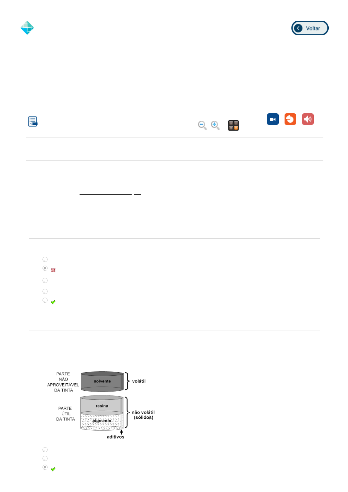 15/06/2018 EPS http://simulado.estacio.br/alunos/ 1/3 CCE1007_A10_201601604025_V1 Com relação as Tintas, podemos dizer: Tintas e vernizes são formados por uma composição química formada por uma dispersão de pigmentos em uma solução ou emulsão de um ou mais polímeros, que, ao ser aplicada na forma de uma película fina sobre uma superfície, se transforma num revestimento sólido a ela aderente com função decorativa e função de proteção do substrato, além de garantir a higiene entre outras propriedades da superfície (pintura). De acordo com a figura abaixo, ela é característica de : (30% Solventes + 70% de Resina e pigmentos) QUÍMICA DOS MATERIAIS CCE1007_A10_201601604025_V1 Lupa Calc. Vídeo PPT MP3 Aluno: MATEUS LARANJA QUARESMA Matrícula: 201601604025 Disciplina: CCE1007 - QUÍMICA MATERIAIS Período Acad.: 2018.1 (G) / EX Prezado (a) Aluno(a), Você fará agora seu EXERCÍCIO DE FIXAÇÃO! Lembre-se que este exercício é opcional, mas não valerá ponto para sua avaliação. O mesmo será composto de questões de múltipla escolha (3). Após a finalização do exercício, você terá acesso ao gabarito. Aproveite para se familiarizar com este modelo de questões que será usado na sua AV e AVS. 1. d) As Tintas podem ser aplicadas a todo tipo de superfície. b) As Tintas são materiais geralmente viscoso e tem a finalidade de aglutinar outros materiais. a) Povos primitivos usavam a Tinta como forma de proteção mecânica para as estruturas de suas residências. e) As Tintas são compostos caros, usados apenas para dar acabamento final em obras. c) As Tintas podem ser substâncias naturais ou artificiais. 2. Tinta a base de água. Tinta no ¿VOC¿ Tintas com alto teor de sólidos. 15/06/2018 EPS http://simulado.estacio.br/alunos/ 2/3 Com relação as Tintas, assinale a alternativa INCORRETA: Com relação as Madeiras, assinale a alternativa INCORRETA: Com relação as Madeiras, assinale a alternativa INCORRETA: Com relação as Tintas, assinale a alternativa INCORRETA: Com relação aos processos de industrialização das Madeiras, assinale a alternativa INCORRETA: Removedor. Tinta convencional. 3. b) O setor econômico com maior aplicação de tintas é a construção civil; a) Pinturas em artefatos de madeira objetivam aumentar a resistência de tração da madeira; e) Tintas para estruturas metálicas objetivam conferir boa proteção anticorrosiva entre outras. c) Pintura de paredes exteriores objetivam conferir boa resistência à intempérie; d) Pintura de paredes interiores objetivam conferir boa aderência ao suporte, entre outros; 4. d) Grã é o termo usado para descrever a direção longitudinal dos elementos anatômicos estruturais da madeira; a) Independente da espécie, as propriedades físicas e mecânicas da madeira apresentam comportamentos iguais; c) Nós, fibras inclinadas, rachaduras e empenamentos diminuem a resistência da madeira. e) O cheiro ocorre em algumas espécies, sendo mais evidente em madeiras com alto teor de umidade. b) A madeira pode ser classificada em dois tipos: Endógenas e Exógenas; 5. a) A madeira transparente pode vir a se tornar um importante material na construção de casas no Brasil. b) A madeira gasta menos energia para ser produzida que o concreto e o aço. e) A madeira apresenta boas características de isolamento térmico e absorção acústica. d) A madeira possui menor resistência que outros sistemas construtivos, por isso não pode ser utilizado para construções com mais de um pavimento. c) Edificações de madeira, corretamente dimensionadas, podem durar séculos se feito sua manutenção. 6. e) A secagem da Tinta demora dias, sendo essa caraterística interessante para o substrato ir se adaptando a película. b) A película gerada pelas Tintas deve ser dura e ao mesmo tempo flexível; d) As Tintas deve apresentar uma consistência correta, a fim de facilitar a sua aplicação; c) A escolha da Tinta a ser aplicada depende de alguns fatores que as caracterizam em função de suas propriedades; a) As Tintas devem apresentar boa aderência ao substrato; 7. d) OSB são painéis estruturais de tiras de madeira orientadas em três camadas perpendiculares, o que aumenta sua resistência mecânica e rigidez; a) Podem variar de acordo com o grau de beneficiamento, podendo haver peças com nenhum ou com muitos graus de beneficiamento. e) HDF possuem alta densidade e são usados em pisos laminados. 15/06/2018 EPS http://simulado.estacio.br/alunos/ 3/3 Tinta é um material que se apresenta na forma líquida e que, quando aplicado, com ou sem diluição sobre uma superfície, deve resultar em filme sólido, contínuo, uniforme e aderente após a secagem/cura. Marque a alternativa que não condiz com relação as tintas. b) MDF são peças de madeira maciça e são usadas para estruturas de grande porte; c) Compensados são constituído de lâminas de madeira sobrepostas e cruzadas entre si; 8. É de grande importância escolher preferencialmente tintas ecológicas, ou com baixos níveis de emissão de COV. Os COVs agridem a camada de ozônio gerando impactos negativos ao meio ambiente e sobre a saúde humana. No caso das tintas, principalmente pelos solventes usados no produto é indicado usar tintas com baixo níveis de emissão de COP. As tintas que deixam cheiro forte, continuam sendo nocivas à sua saúde mesmo depois que o cheiro vai embora. Isso por causa dos compostos orgânicos voláteis (CFC). A exposição prolongada de substâncias químicas nas tintas, pode causar em casos crônicos, dor de cabeça, fadiga, confusão, irritação nos olhos, alergias, danos ao sistema nervoso e respiratório, ao fígado e rins. Legenda: Questão não respondida Questão não gravada Questão gravada Exercício inciado em 15/06/2018 19:35:49.
