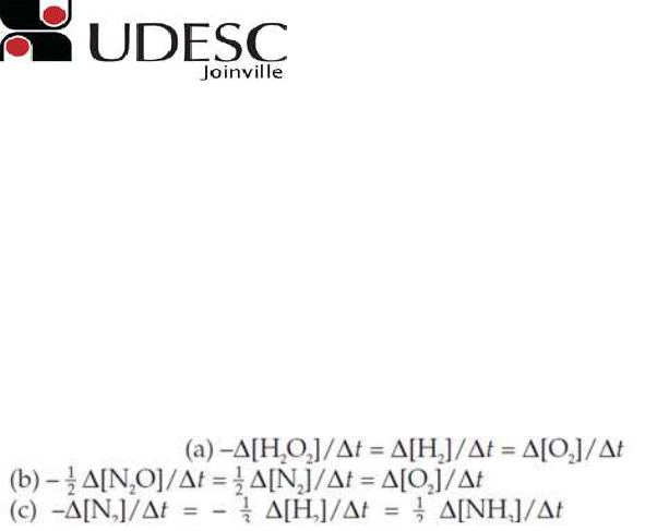 ������������������������� ��������� ���� �������������������������������������������������������������������������������� � �� ����������� �� � 7- Lista de exercícios – Cinética 1) Para cada uma das seguintes reações em fase gasosa, indique como a velocidade de desaparecimento de cada reagente está relacionada à velocidade de aparecimento de cada produto: a) H2O2 (g) → O2 (g) + H2(g) b) 2N2O(g) → 2N2 (g) + O2 (g) c) N2 (g) + 2H2 (g) → 2NH3 (g) 2) Para cada uma das seguintes reações na fase gasosa, escreva a expressão da velocidade em termos de aparecimento de cada produto ou desaparecimento de cada reagente, de modo que as velocidades sejam iguais entre si: a) 2HBr(g) → H2 (g) + Br2 (g) b) 2SO2 (g) + O2 (g) → 2 SO3(g) c) 2NO(g) + 2H2 (g) → H2 (g) + 2 H2O(g) 3) Uma reação A + B → C, obedece à seguinte lei de reação: velocidade = k[A]2[B]. a) Se [A] é dobrada, como variará a velocidade? A constante de velocidade variará? Justifique sua resposta. b) Quais são as ordens de reação para A e B? Qual é a ordem de reação total? c) Qual a unidade da constante de velocidade? d) Respostas: se [A] dobra, a velocidade aumentará de um fator de quatro; a constante de velocidade, k, não varia. A velocidade é proporcional a [A]2; dessa forma, quando o valor de [A]dobra, a velocidade varia de 22, ou 4. A constante de velocidade, k, é a constante de proporcionalidade que não varia, a menos que a temperatura varie. B) A reação é de segunda ordem em A, primeira ordem em B e de terceira ordem como um todo. C) unidade de k = mol-2 Ls-1. 4) A decomposição de N2O5 acontece como segue: 2N2O5 → 4NO2 + O2. A Lei de velocidade é de primeria ordem em relação a N2O5. A 64 oC a constante de velocidade é 4,82 x 10-3 s-1. (a) Escreva a lei de velocidade para reação; b) Qual é a velocidade de reação quando a concentração de N2O5 for ������������������������� ��������� ���� �������������������������������������������������������������������������������� � �� ����������� �� � 0,0240 mol/L? c) O que acontece à velocidade quando a concentração de N2O5 é dobrada para 0,0480 mol/L? Resposta: a) velocidade de k[N2O5], b) 1,16 x 10-4 c) a velocidade da reação dobra. 5) Considere a seguinte reação: CH3Br(aq) + OH-(aq) → CH3OH(aq) + Br-(aq) A lei de velocidade para essa reação é de primeira ordem em relação ao brometo de metila e de primeira ordem em relação à hidroxila. Quando [CH3Br]= 5,0 x 10-3 mol/L e [OH-] é 0,050 mol/L, a velocidade de reação é 0,0432 mol/L.s. a) Qual é o valor da constante de velocidade? b) Qual a unidade da constante de velocidade? c) O que aconteceria à velocidade se a concentração de OH- fosse tripicada? Resposta: a) 1,7 x 10 -2 mol-1 L.s-1; c) a velocidade triplica. 6) Para uma reação de forma: A + B + C → produtos, as seguintes observações são feitas: dobrando-se a concentração de A dobra-se a velocidade, e triplicando-se a concentração de B, não se altera a velocidade, triplicando-se a concentração de C aumenta-se a velocidade por um fator de 9. Qual é a Lei de velocidade para esta reação? Resposta: velocidade = [A][C]2. 7) A velocidade inicial de uma reação A+B → C foi medida para várias concentrações iniciais diferentes de A e B, e os resultados são como seguem: Número do experimento [A] mol/L [B] mol/L Velocidade inicial (mol/L.s) 1 0,100 0,100 4,0 x10-5 2 0,100 0,200 4,0 x10-5 3 0,200 0,100 16 x10-5 Usando esses dados, determine (a) a lei de velocidade para a reação; b) a magnitude da constante de reação; c) a velocidade de reação quando [A] = 0,050 mol/L e [B] 0,100 mol/L Resposta: A) zero em relação a B; 2 em relação a A; B) 4 x10-5 L/mol.s; C) 1,0 x10-4 mol/L.s Brown 494 ������������������������� ��������� ���� �������������������������������������������������������������������������������� � �� ����������� �� � 8) O íon iodeto reage com o íon hipoclorito (o ingrediente ativo de alvejantes clorados) da seguinte forma: OCl- + I- → OI- + Cl-. Essa reação rápida fornece os seguintes dados de velocidade: [OCl-], mol/L [I- ], mol/L Velocidade, mol/L.s 1,5 x 10-3 1,5 x 10-3 1,36 x 10-4 3,0 x 10-3 1,5 x 10-3 2,72 x 10-4 1,5 x 10-3 3,0 x 10-3 2,72 x 10-4 a) Escreva a lei de velocidade para essa reação. B) Calcule a constante de velocidade. C) Calcule a velocidade quando [OCl-] = 1,0 x 10-3 mol/L e [I-] = 5,0 x 10-4 mol/L. Resposta: a)reação de primeira ordem em relação aos dois reagentes, e de segunda ordem global. B) 60, 4 L/mol.s. c) 3,02 x 10-5 mol/L s. 9) Os dados na tabela são para a reação de NO e O2 a 660 K. NO(g) + ½ O2(g) → NO2(g) Concentração de Reagente (mol/L) [NO] [O2] Velocidade de desaparecimento do NO (mol/L.s) 0,010 0,010 2,5 x10-5 0,020 0,010 1,0 x10-4 0,010 0,020 5,0 x10-5 a) Determine a ordem da reação para cada reagente. R: Segunda ordem em relação a NO e de primeira ordem em relação ao O2. b) Escreva a equação de velocidade para a reação. R: velocidade = -∆[NO]/ ∆T = k[NO]2[O2]. c) Calcule a constante de velocidade. R: 25 L2/mol2.s. d) Calcule a velocidade (em mol/L.s) no instante quando [NO] = 0,015 mol/L e [O2]= 0,0050 mol/L. R: 2