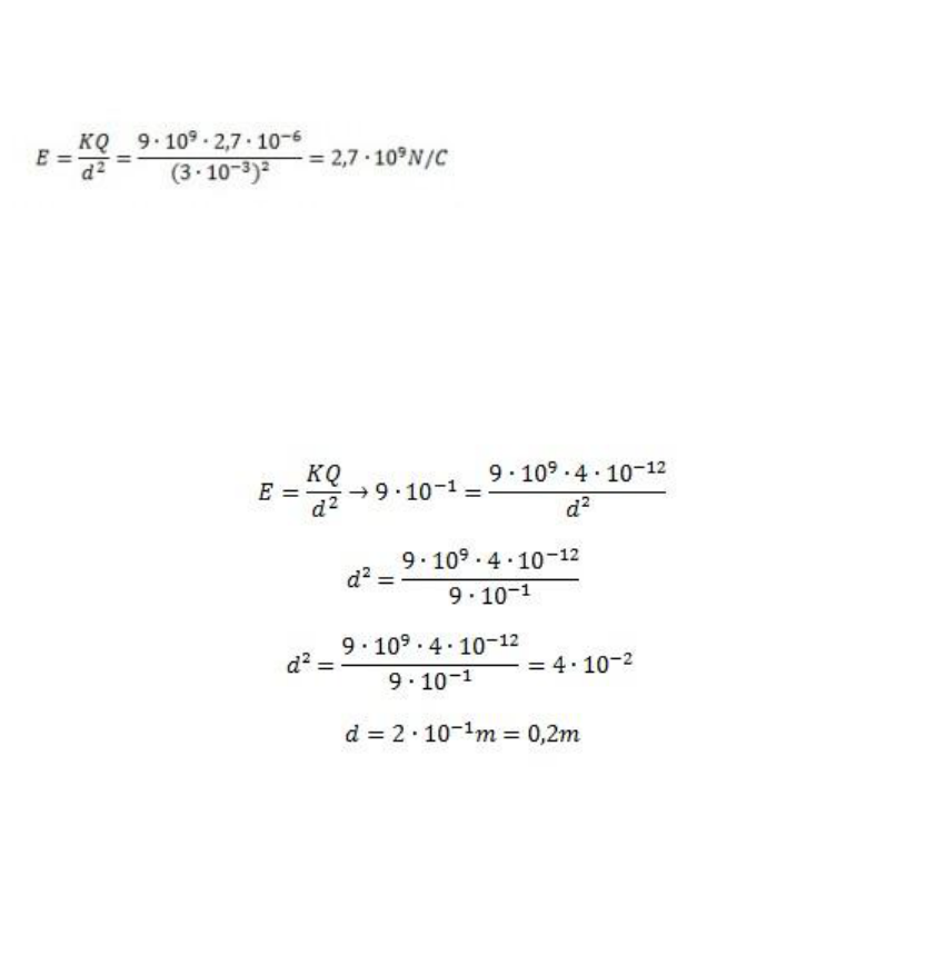Calcule a carga elétrica de um corpo que possui excesso de 24 . 1012 elétrons. Considere o módulo da carga elementar igual a 1,6 . 10-19 C. Resposta Questão 1 Q = n.e Q = 24 . 1012 . ( - 1,6 . 10-19) Q = - 38,4 .10-7 C A intensidade do campo elétrico, num ponto situado a 3,0 mm de uma carga elétrica puntiforme Q = 2,7 µC no vácuo (ko = 9.109 N.m2/C2), é: O campo elétrico criado por uma carga pontual, no vácuo, tem intensidade igual a 9.10-1 N/C. Calcule a que distância d se refere o valor desse campo. (dados: Q = -4 pC e ko = 9.109 unidades SI). Vamos supor que temos uma partícula carregada com carga q = 4 μC e que ela seja colocada em um ponto A de um campo elétrico cujo potencial elétrico seja igual a 60 V. Se essa partícula ir, espontaneamente, para um ponto B, cujo potencial elétrico seja 20 V, qual será o valor da energia potencial dessa carga quando ela estiver no ponto A e posteriormente no ponto B? Qual é o potencial elétrico situado em um ponto B situado a 90 cm de uma carga elétrica de carga igual a 5.10-6 C? Dados do problema: Precisamos transformar a distância (d) que está em centímetros (cm) para metros (m): Distância = d = 90 cm = 0,90 m. Carga = Q = 5.10-6 C. Como o meio é o vácuo, usaremos a constante eletrostática no vácuo: K = 9.109 N.m2/C2. A fórmula do potencial elétrico gerado por uma carga puntiforme: Descrição do fenômeno: a carga elétrica Q (chamada carga fonte), cria ao seu redor um campo elétrico. Dentro desse campo consideremos um ponto qualquer e o chamaremos de B. Queremos saber o potencial elétrico nesse ponto. Veja a figura: Como já provamos, na questão anterior, que a unidade de medida do potencial é o volts (V), desta vez não vamos substituir as unidades de medidas das grandezas contidas na fórmula. Portanto, substituindo os valores dados na fórmula: Portanto, Como a carga fonte é positiva (Q>0) o potencial também é positivo (V>0).