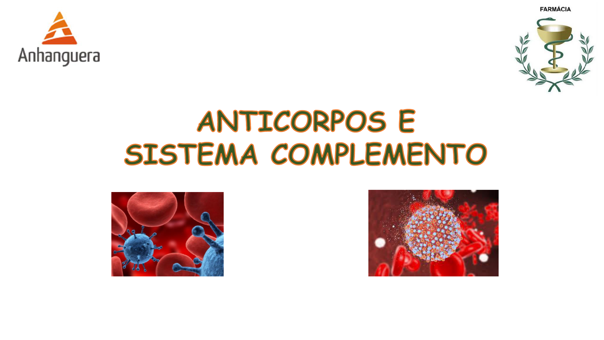 FACULDADE ANHANGUERA DE PELOTAS CURSO DE FARMÁCIA DISCIPLINA DE FISIOPATOLOGIA E FARMACOTERAPIA DAS DOENÇAS INFECCIOSAS, IMUNES E VIRAIS Profª Lucimar Marques Pinto Brod UNIDADE 2 ENCONTRO 7 SISTEMA COMPLEMENTO • A capacidade do sistema complemento de eliminar determinadas bactérias foi o que levou a sua descoberta; • São várias proteínas ativadoras e reguladoras encontradas ligadas à membrana celular ou livres na circulação; • Desempenham seu papel nas imunidades inata e adquirida; • COMPLEMENTAR AS ATIVIDADES ANTIMICROBIANAS DOS ANTICORPOS. SISTEMA COMPLEMENTO • Na presença de indicadores de agentes infecciosos, estas proteínas sofrem uma rápida ativação, ou seja, na presença de um estímulo que identifique um agente estranho, inicia-se a ativação das proteínas complemento, esta ativação é rápida e muito eficiente, e ocorre em cascata, o que significa que a ativação de uma proteína leva à ativação de outra e assim por diante, até estarem todas funcionais. As Vias de Ativação do Sistema Complemento e seus principais componentes FUNCIONAMENTO DAS TRÊS VIAS • Embora o estímulo inicial de ativação e os componentes envolvidos sejam diferentes, todas as vias têm um objetivo central que é a ativação do C3. SISTEMA COMPLEMENTO – Vias de ativação • CLÁSSICA - A via clássica é ativada quando anticorpos (IgG ou IgM) se ligam a antígenos (vírus, bactérias ou auto-antígenos). Depende assim da existência do anticorpo; • ALTERNATIVA - a via alternativa é ativada na ausência de anticorpo, corresponde a um sistema mais primitivo, que não requer a presença de anticorpos específicos, sendo ativada a partir da hidrólise espontânea (reação química de quebra de uma molécula devido a água) do terceiro componente do complemento (C3) e a sua deposição na superfície do microrganismo; • LECTINA - a via das lectinas é ativada através da ligação da lectina ligante da manose (MBL - mannose-binding lectin), um componente solúvel no nosso organismo, com carboidratos presentes na superfície do micro-organismo alvo. SISTEMA COMPLEMENTO – Funções • 1 – Ativação da inflamação e Quimiotaxia • 2 – Formação de opsoninas • 3- Lise da célula alvo SISTEMA COMPLEMENTO – Funções • 1 – ATIVAÇÃO DA INFLAMAÇÃO e QUIMIOTAXIA - Estimulam a resposta inflamatória, porque aumentam a permeabilidade capilar e estimulam a quimiotaxia (atração das células do sistema imune para o local da lesão). - Quimiotaxia - É o processo que permite a migração dos neutrófilos, grandes leucócitos que fagocitam micróbios e outros antígenos e que possuem grânulos contendo enzimas para destruir antígenos fagocitados, e outros leucócitos aos locais de infecção ou inflamação no organismo. SISTEMA COMPLEMENTO – Funções • 2 – FORMAÇÃO DE OPSONINAS - Facilitam o trabalho dos fagócitos (leucócitos que fazem fagocitose, ex.: neutrófilos), realizando a OPSONIZAÇÃO (em imunologia, é o processo que facilita a ação do sistema imunológico por fixar opsoninas ou fragmentos do complemento na superfície bacteriana, permitindo a fagocitose). Deste modo, os fagócitos, que possuem nas suas membranas receptores para as proteínas complemento, identificam facilmente os micro-organismos e destroem-nos. SISTEMA COMPLEMENTO – Funções • 4- LISE DA CÉLULA ALVO - Provocam a lise de células infectadas, algumas proteínas do complemento organizam-se, formando poros nas membranas das células infecciosas, estes poros desorganizam o controle osmótico dessas células, que acabam por ser destruídas. ANTICORPOS ANTICORPOS - Imunoglobulinas Cada anticorpo é constituído por quatro cadeias polipeptídicas, possuindo dois sítios de ligação para o antígeno. ANTICORPOS - Dois pares idênticos: cadeias pesada e leve - Pontes dissulfídricas - Cadeias leves: denominadas lambda e kappa - Regiões variáveis e constantes - Variabilidade da sequencia de aminoácidos - Cadeia leve - VL (110 aminoácidos) e CL (110 aminoácidos) - Cadeia Pesada - VH (110 aminoácidos) e CH (330- 440 aminoácidos) ANTICORPOS – Fragmentos Fab e Fc ANTICORPOS – Funções • Neutralização ( auxilia fagocitose) – Microrganismos – Toxinas • Opsonização • Citotoxidade celular dependente de anticorpo (ADCC) • Ativação do complemento ANTICORPOS – Funções ANTICORPOS – Funções *Neutralização é a ligação dos aniticorpos aos microrganismos e/ou toxinas, impedindo a aderência e ação dos mesmos nas células do hospedeiro. ANTICORPOS – Funções ANTICORPOS – Funções ANTICORPOS – Funções *Opsonizar é auxiliar o processo de fagocitose pelas células fagocitárias para que os microrganismos sejam destruídos enzimaticamente. Processo que facilita a ação do sistema imunológico por fixar opsoninas ou fragmentos do complemento na superfície bacteriana, permitindo a fagocitose. ANTICORPOS – Funções *Liberação de perforinas e granzimas que ativam a via das caspases e promovem apoptose da célula infectada. ANTICORPOS – Funções ANTICORPOS – Funções Formação do poro na membrana do parasita… ANTICORPOS – classificação ANTICORPOS – classificação ANTICORPOS – classificação ANTICORPOS – classificação ANTICORPOS – classificação - Desencadeia a inflamação aguda atuando como uma molécula de transdução de sinais; - Liga-se fortemente a receptores presentes nos mastócitos e nos basófilos; - Quando o antígeno se liga ao IgE, uma rápida liberação de moléculas inflamatórias é desencadeada; - Aumentar a defesa local e ajudar a eliminar o invasor. ANTICORPOS – classificação ANTICORPOS – resposta primária e secundária A primeira resposta contra um antígeno é fraca e formada principalmente por anticorpos da classe IgM, onde depois de algum tempo ocorre mudança de isotipo e memória imunológica. A resposta secundária é bem mais intensa e composta por anticorpos das clas