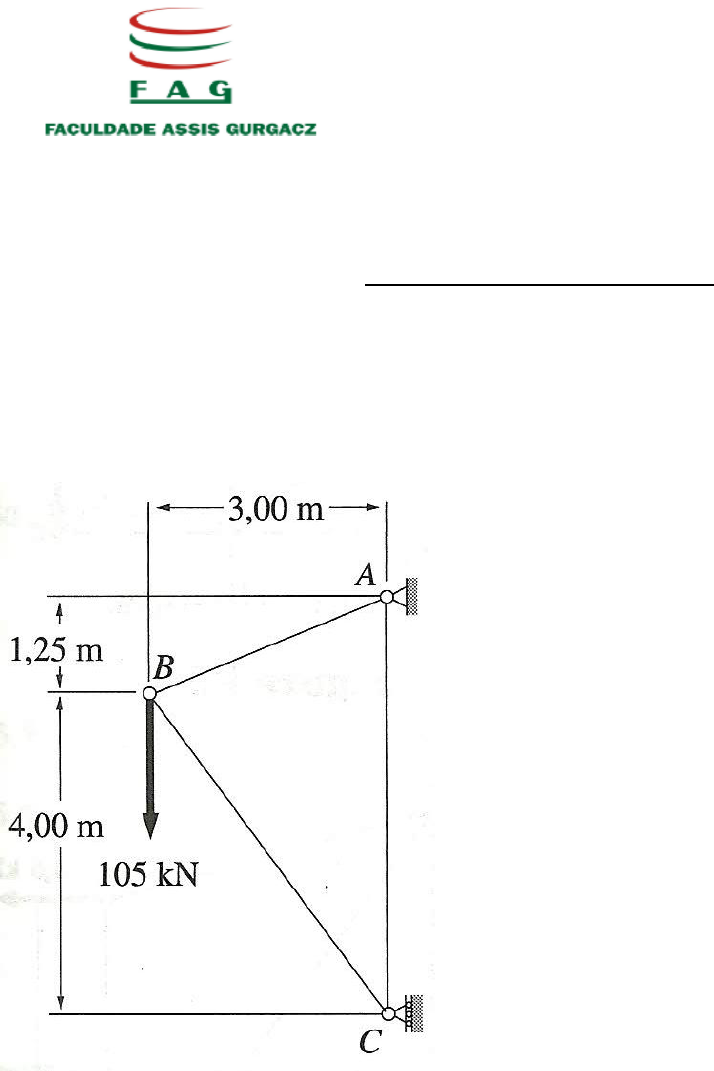 CURSO DE ENGENHARIA Disciplina: Mecânica Geral/Estática Docente: Gilson Debastiani TRABALHO DO II BIMESTRE 2018/1 Usando o método dos nós, encontre a força de cada barra, para todas as treliças abaixo. Indique se a força é de Tração ou de Compressão: BEER, 6.1 BEER, 6.2 BEER, 6.3 � MEIRIAN, 4/3 � BEER, 6.6 � Calcular a força em cada barra da treliça abaixo: (4.1- MERIAM 2ª ed.) � MERIAM, 4/4 � HIBBELER � HIBBELER � Determine as forças CE e CF da treliça da figura: (BEER 6.2) Calcular as forças CF e CB da treliça da figura baixo: (4.3- MERIAM 2ª ed.) � Determine as forças CD e DF da treliça da figura: (BEER 6.23) Calcular as forças induzidas nas barras KL, CL e CB, pela carga de 200 Kn atuando sobre a treliça em balanço: (4.2- MERIAM 2ª ed.) � Determine as forças DE, EF, FG e HF da treliça da figura: (BEER 6.25 e BEER 6.26) Determine as forças FCG e FCF da treliça hiperestática da figura abaixo: (MERIAM, 4/11) � Determine as forças CE e DE da treliça da figura: (BEER 6.27 e BEER 6.28) Calcular as forças nas barras FG, EG e GD na treliça carregada em balanço da figura abaixo: (4.8 - MERIAM 2ª ed.) � Calcular as forças que atuam nas barras CH, CB e GH da treliça da figura: (4.31 - MERIAM 2ª ed.) Determine as forças AB, BG e FG da treliça da figura: (4.28- MERIAM 2ª ed.) � Determine as forças nas barras GJ, GK e IK da treliça da figura. (BEER 6.34) Determine as forças nas barras AD, CD e CE da treliça da figura. (BEER 6.35) Determine as forças nas barras FK e JO da treliça da figura, quando P = 150 N e d = 2 m. (Sugestão: utilize a seção a – a). (BEER 6.37) Determine as forças nas barras AC e BE da treliça da figura. (Sugestão: utilize a seção a – a). (BEER 6.38) � Determine a força na barra GJ da treliça da figura. (Sugestão: utilize a seção a – a). (BEER 6.39) � Determine as forças FDE, FAE, FAB e FAD da treliça da figura: (BEER 6.40 e BEER 6.41) Determine a força no elemento FBC da treliça carregada abaixo: (MEIRAM, 4/31) � Determine a força que atua no elemento FBF. (MERIAM, 4/40) Abaixo, encontra-se representado a vista lateral de uma represa. Determine a localização do centróide da superfície plana representada pela área alagada, considerando que a superfície é uniforme e plana: y x 1 m A figura abaixo representa a área de laser de um condomínio, com uma piscina circular de raio R= 4m, conforme representado abaixo. Sabendo-se que em toda área não coberta por água deverá ser coberta por piso, qual deve ser o valor desta área? Considerando que a densidade e a espessura da superfície é uniforme e que a superfície em destaque é plana, determine a posição do centróide da área líquida coberta por piso. y x Determine o centróide das superfícies planas mostradas abaixo: 9. 10. � É dado um plano inclinado de 10m de comprimento e 6m de altura, conforme é mostrado figura. Uma caixa, com velocidade inicial nula de massa 25 kg é abandonada sobre o plano. Sabendo que o bloco adquire aceleração constante de 3,2 m/s2, determine o coeficiente de atrito cinético (µk) que atua entre o plano e o bloco. Uma caixa que possui massa de 350 kg é sujeita a uma força de reboque P atuante a um ângulo de 20º em relação à horizontal. Se o coeficiente de atrito estático entre a caixa e o plano é µe = 0,3, determine o módulo de P que inicia o movimento da caixa plano abaixo. É dado um plano inclinado de 10 m de comprimento e 3 m de altura, conforme é mostrado figura. Uma caixa de massa 25 kg, com velocidade inicial nula, é abandonada sobre o plano. Verifique se o bloco encontra-se em equilíbrio ou desce, indicando o valor da força de atrito que atua entre o plano e o bloco, em caso de movimento, determine também a Força Resultante e a aceleração adquirida. Adote µe = 0,3 e µk = 0,2. Uma força de 500 N age, conforme a ilustração, em um bloco de massa 100 kg que está colocado sobre um plano inclinado. Os coeficientes de atrito entre o bloco e o plano são µs = 0,25 e µk = 0,2. Verificar se o bloco está em equilíbrio, se sobe ou desce o plano e determinar o valor da força de atrito (estático ou cinético). GABARITO – questão 30 – CENTRÓIDE 5.1 X = 14 cm; Y =16,5 cm 5.5 X = 49,36 mm; Y = 93,84 mm 5.2 X = 96,39 mm; Y = 34,72 mm 5.6 X = 1,8 cm; Y = 8,49 cm 5.3 X =30 cm; Y = 40 cm 5.7 X = Y = 31,06 mm 5.4 X = 1,421 mm; Y = 12,421 mm 5.8 X = 0; Y = 8,06 cm 9. X = 79,59; Y = 150 mm 10. X = 4,625 m; Y = 1 m 5.11 X = 480 mm; Y = 228 mm 5.12 X = Y = 225 mm 5.13 X = 0; Y = 203,04 mm GABARITO 1: FAB= 65 kN T FAC= 80 kN T FBC= 100 kN C 2: FAB= 148kN T; FAC= 72 kN C; FBC= 70 kN C; FCD= 70 kN C; FAD= 74 kN T 3: FAB= 2,88 kN T; FAC= 4,8 kN C; FBC= 3,12 kN C; 4: FAB= 3000 N T; FAC= 4242,6 N C; FBC= 6000 N T; FAD= 3000 N C; FCD= 4242,6 N T; 5: FAB= 4 kN T; FAD= 15 kN T; FBD= 9 kN C; FCD= 16 kN C; FDE= 4 kN C; FBE= 5 kN T; 6: FAB= 3,52 kN T; FAC= 3,27 kN T; FBC= 4,62 kN C; 7: FAB= 2500 N C; FAD= 3535,53 N T; FBC= 7071,07 N C; FBD= 3535,53 N C; FCD= 5000 N T; 8: FAB= 27,95 kN C; FAF= 15 kN C; FBG= 27,5 kN T; FBC= 15 kN T; FCF= 21,21 kN C; FCE= 15 kN T; FCD= FEF=FDE= 0; 9: FAB= 1.178,51 N C; FAC= 833,33 N T; FBC= 372,68 N C; 10: FCE= 24 kN C; FCF= 15 kN T; 11: FCF= 3,33 kN C; FCB= 5,33 kN T; 12: FDF= 52 kN C; FFH= 20 kN C; 13: FCB= 571 kN C; FKL= 650 kN T; FCL= 57,6 kN C; 14: FEF= 45 kN T; FEF= 58,67 kN T; FFG= 22,7 kN T; FFH= 53,4 kN T; 15: FCG= 2,24 kN T; FCF= 1 kN C; 16: FDE= 24 kN T; FCE= 30 kN T; 17: FEG= 0; FEG= 5,33 kN C; FED= 4,34 kN C; 18: FCH= 30 kN C; FCB= 50 kN C; FGH= 42,4 kN T; 19: FAB= 7,2 kN T; FBG= 3 kN C; FGF= 7,8 kN C; 20: FJG= 30 kN C; FKI= 15 kN T; FKG= 50 kN C; 21: FAD= 7,5 kN C; FDC= 0; FEC= 59,52 kN T; 22: FFK= 37,5 kN T; FOJ= 37,5 kN C; 23: FAC= 11,25 kN T; FBE= 11,25 kN C; 24: FGJ= 158,63 kN T; 25: FAE= 142 kN C; FDE= 170 kN T; 26: FAB= 181,75 kN C ; FAD= 220,81 kN T 27: FBF= 10,62 kN C ; 28: X = 0,367 m; Y = 2,13 m 29: X = 3,436 m; Y = 4,26 m