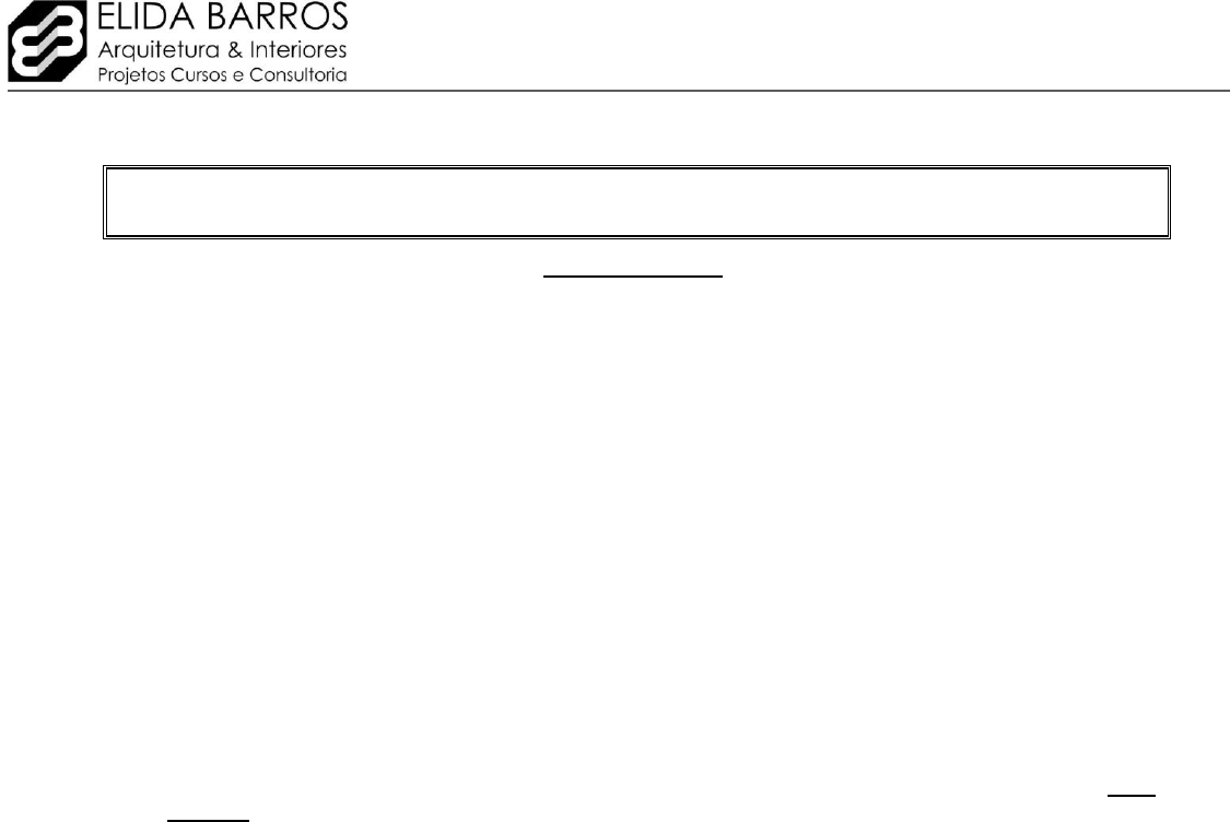 SCN QD 02 . Bloco D . Torre B . Salas 1123/1125 . Centro Empresarial Liberty Mall . Asa Norte . Brasília,DF . (61) 3328.1016 / 8402.2200 . www.elidabarros.com.br . contato@elidabarros.com.br CURSO DE INICIAÇÃO AO DESIGN DE INTERIORES (2º Semestre de 2014) INFORMATIVO 1. PROGRAMA Curso de Iniciação ao Desenho Técnico Arquitetônico (1ª parte) – Conhecimento e coordenação motora no uso dos materiais e instrumentos de desenho, escalas, caligrafia técnica, dimensionamento e colocação de cotas. Teoria e prática de desenho arquitetônico com desenho de planta baixa, cortes e vistas de ambientes. Curso de Projeto de Iniciação à Decoração Residencial (2ª parte) - Elaboração do layout (estudo da ocupação, distribuição e circulação de ambientes). Fundamentos da decoração – unidade, proporção, equilíbrio e harmonia – composição, linha, forma, cor e textura. Estudo das necessidades básicas dos ambientes – quadros, cortinas, tapetes e complementos decorativos. Estilos de decoração. Teoria da cor, esquema cromático e psicologia da cor. Elaboração de projeto de decoração de ambientes residenciais com orientações específicas para salas de estar e jantar, hall, quartos e escritórios, com apresentação a nanquim e a cores. Nota: Os profissionais e estudantes que comprovarem, por meio de certificado, a conclusão do curso de desenho técnico arquitetônico estarão dispensados do Curso de Iniciação ao Desenho Técnico Arquitetônico (1ª parte) 2. CARGA HORÁRIA 140 horas/aula - 35 aulas com 2 aulas semanais de 4 horas Turma A – às terças e quintas das 08:00h às 12:00h de 05.08.2014 à 02.12.2014 Turma B – às terças e quintas das 14:00h às 18:00h de 05.08.2014 à 02.12.2014 NOTA: O curso de Desenho Técnico e Arquitetônico (1ª parte) terá início em 12/08/14, para as duas turmas e o curso de Projeto de Iniciação à Decoração Residencial (2ª parte) terá início em 16/09/14 para as duas turmas, porém todos os alunos terão que assistir às duas primeiras aulas do curso em 05/08 e 07/08/14. 3. TÉCNICAS E RECURSOS Turmas de no mínimo 05 alunos. As aulas serão teóricas e práticas, complementadas com recursos áudio-visuais e visitas técnicas a serem agendadas. Os alunos receberão anotações técnicas durante o curso. 4. MATERIAL FORNECIDO Pelo curso - prancheta com régua paralela e o papel manteiga para exercícios em sala de aula Pelo aluno - 01 caderno para anotações; 01 bloco de papel SULFITE tamanho A4 branco SEM PAUTA (50 folhas); 01 par de esquadros de 42cm (nº 2542 e 2642); 01 par de esquadros pequeno de 16 cm (nº 2516 e 2616); 01 escalímetro triangular n° 1 de 30 cm (1:20, 1:25, 1:50, 1:75, 1:100 e 1:125); lapiseiras (0,3 e 0,5) com grafite HB e lapiseiras (0,7 e 0,9) com grafite B; borracha FABER-CASTELL; caneta borracha,; lápis borracha; apontador (com depósito); lâmina gilete; 01 bigode (escova própria para limpar desenho da TRIDENT modelo 5050); 01 rolo de fita crepe (19 mm x 50 m); 01 caixa de lápis de cor aquarelado de 48 cores; canetas nanquim marca Unipin (0.1, 0.2, 0.3, 0.5 e 0.8); 01 borracha para nanquim e 01 bloco de papel vegetal - A3 (297 mm x 420 mm) de 92,5 g/m 2 marca CANSON para o trabalho final. Obs. Recomendamos que o aluno aguarde maiores orientações da instrutora no primeiro dia de aula antes de comprar o material acima relacionado. 5. PREÇO E CONDIÇÕES DE PAGAMENTO 6 parcelas de R$ 410,00 (módulo completo) 3 parcelas de R$ 282,00 (somente para o curso de Iniciação ao Desenho Técnico Arquitetônico- 1ª parte) 6 parcelas de R$ 350,00 (somente para o curso de Projeto de Iniciação à Decoração Residencial – 2ª parte) Primeira parcela paga no ato da inscrição. Segunda, terceira, quarta, quinta e sexta parcelas pagas através de cheques pré-datados, entregues no ato da inscrição, com vencimentos para cada 30 dias após a inscrição. 6. CERTIFICADO DE CONCLUSÃO Será emitido certificado aos alunos que demonstrarem bom aproveitamento durante o curso (menção final mínima: satisfatório), terem frequentado no mínimo 75 % das aulas dadas, terem concluído e entregue todos os trabalhos até, no máximo, o último dia de aula do seu curso e estarem com todos seus débitos quitados. Este certificado tem valor exclusivamente para currículo profissional.