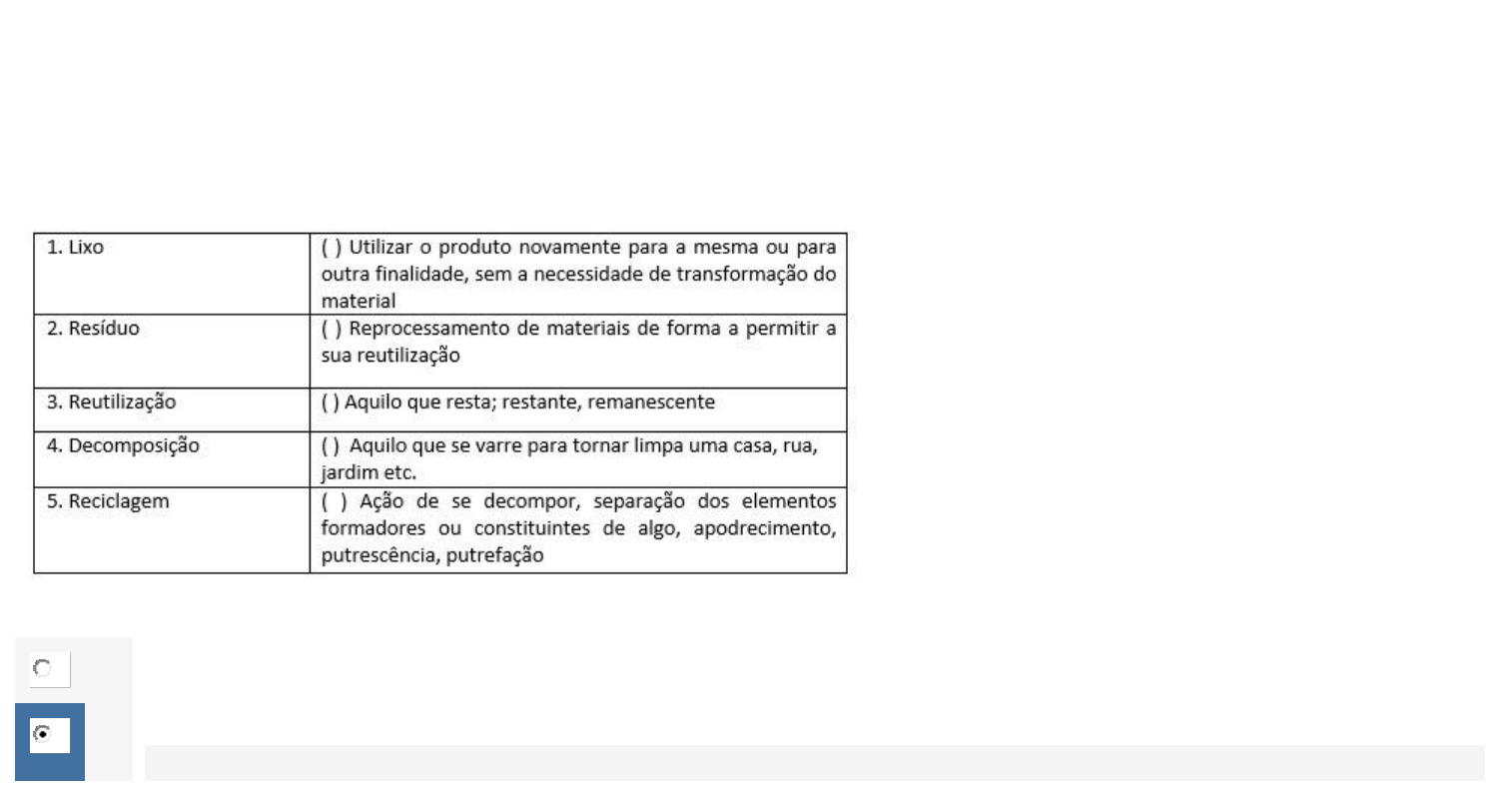 Apol 1 Questão 1/5 - Gestão de Resíduos Sólidos em Saúde Algumas definições relacionadas aos materiais que são descartados no ambiente são muito importantes para compreender a realidade brasileira na geração de lixo e no processo de reciclagem de materiais. Considerado essas definições, relacione a 1ª coluna de acordo com a 2ª e assinale a alternativa correta. Nota: 20.0 A 2-3-5-4-1 B 3-5-2-1-4 Você acertou! R. B- Slides aula 02 C 4-1-2-3-5 D 5-2-3-4-1 Questão 2/5 - Gestão de Recursos Humanos A área de gestão de recursos humanos se subdivide em vários subsistemas para apoiar o gestor com ações de planejamento, organização, condução e controle tanto dos colaboradores como da equipe. Para Knapik (2012, p. 58) os principais processos de recursos humanos se enquadram em quatro conjuntos de subsistemas. Correlacione a 1ª coluna de acordo com a 2ª considerando esses subsistemas. Nota: 20.0 A 3-2-1-4 B 4-3-2-1 C 1-2-4-3 D 2-4-1-3 Você acertou! R. D – Material de Apoio – Aula 1 Questão 3/5 - Gestão de Resíduos Sólidos em Saúde Há diversos tipos de resíduos no mundo e é importante conhecermos quais são, as suas fontes, o tratamento e a disposição final. Considerando os tipos de resíduos e resíduos gerados, relacione a 1ª coluna de acordo com a 2ª e assinale a alternativa correta. Nota: 20.0 A 1-2-4-3 B 2-4-3-1 C 2-4-1-3 Você acertou! R. C – Rota aula 02 D 3-1-2-4 Questão 4/5 - Gestão de Recursos Humanos Os processos de captação de pessoas são formados pelos subsistemas de recrutamento e seleção pessoal. Analise as proposições a seguir e assinale a alternativa correta. I) O mercado atual exige profissionais ecléticos, flexíveis, antenados com o negócio da empresa, que dominem outros idiomas e que tenham desenvoltura e múltiplas habilidades para trabalhar em um cenário competitivo. II) Recrutamento é basicamente um sistema de informação por meio do qual a organização divulga e oferece ao mercado de recursos humanos a oportunidade de emprego que pretende preencher. III) O recrutamento é sempre realizado no mercado de trabalho, foram da empresa, busca-se profissionais mais qualificados para as vagas existentes nas empresas. IV) A seleção consiste em um processo de comparação entre as características e os potenciais dos candidatos que se apresentam para a vaga e o perfil exigido pelo cargo e pela cultura da empresa. Nota: 20.0 A Apenas as proposições I e II estão corretas. B Apenas as proposições I, II e IV estão corretas. Você acertou! R. B – Livro – Capítulo 7 - Aula 2 C Apenas as proposições II, III e IV estão corretas. D Todas as proposições estão corretas. Questão 5/5 - Gestão de Recursos Humanos A Gestão de Recursos Humanos é responsável por estruturar e implantar as estratégias, as políticas e os subsistemas para que os líderes conduzam de forma alinhada a gestão das pessoas de sua equipe. O gestor hospitalar desempenha quatro atribuições básicas, as quais são? Nota: 20.0 A planejar, organizar, conduzir e controlar Você acertou! R. A – Slides aula 01 B analisar, organizar, planejar e conduzir C planejar, estruturar, conduzir e implantar D analisar, conduzir, implantar e controlar Apol 2 Questão 1/5 - Gestão de Resíduos Sólidos em Saúde A preocupação com os resíduos deve se iniciar desde a sua geração até o seu destino final que pode ser a reciclagem, reutilização ou a simples disposição em locais específicos para esta finalidade. Considerando o armazenamento dos resíduos sólidos, analise as afirmativas a seguir e marque V para verdadeiro e F para falso e em seguida assinale a alternativa correta. ( ) O armazenamento de materiais deve ser cuidadosamente planejado para que facilite a coleta e o seu gerenciamento. ( ) Um acondicionamento adequado evita a veiculação de doenças, de odores, problemas estéticos e de bem-estar da população local. ( ) O armazenamento de resíduos não necessita de um local específico para que ele seja acondicionado ( ) É de responsabilidade do gerador, zelar para que os resíduos sejam armazenados de forma a não causarem riscos de contaminação ao ambiente, até que a coleta do material ocorra. Nota: 20.0 A V-F-F-V B F-V-V-F C V-V-F-V Você acertou! R. C - Rota aula 03 D F-V-V-F Questão 2/5 - Gestão de Resíduos Sólidos em Saúde Devido a possibilidade de transmissão de doenças com o acúmulo de lixo, os serviços de coleta e transporte devem prever uma frequência necessária para reduzir este problema e ao mesmo tempo evitar os custos desnecessários. Sobre o processo de coleta e transporte dos resíduos sólidos, analise as proposições a seguir e assinale a alternativa correta. I - Cada cidade deve estabelecer um cronograma para este serviço que varia de acordo com a demanda do município. II – O planejamento não faz parte da coleta, uma vez que a quantidade de resíduos que são produzidos pela região, bem como, as características dos materiais descartados é indiferente. III- O tipo e a quantidade de materiais a serem coletados determinam o tipo de veículo mais adequado para a atividade. IV- Os horários para coleta devem considerar períodos de menores fluxos de veículos e de pessoas, de forma a causarem o menor impacto e risco para a população. Nota: 20.0 A Apenas as proposições I, II e III estão corretas B Apenas a proposições II, III e IV estão corretas C Apenas as proposições I, III e IV estão corretas Você acertou! R. C – Rota aula 03 D Todas as proposições estão corretas. Questão 3/5 - Gestão de Recursos Humanos A entrevista é uma das técnicas de seleção mais utilizada e da qual o gestor tem participação ativa. Considerando os propósitos da entrevista, analise as proposições a seguir e assinale a alternativa correta. I) Conhecer a história profissional e pessoal do candidato. II) Avaliar se as competências e as experiências condizem com a necessidade do cargo e da organizaçã