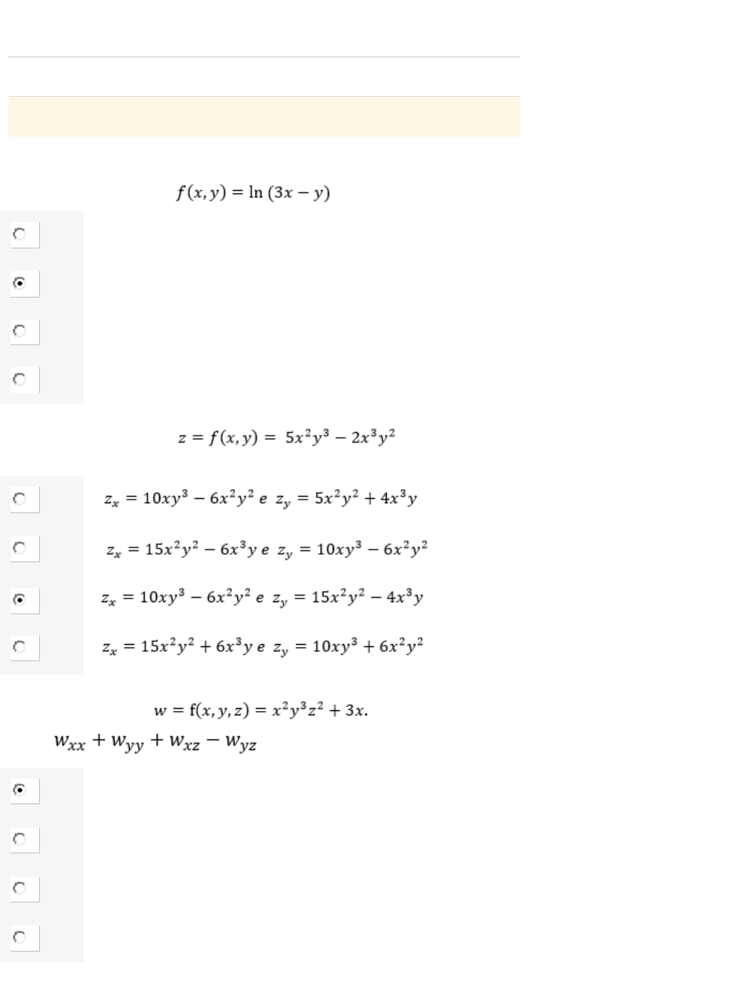Considerando a função . Quais são as expressões das primeiras derivadas?