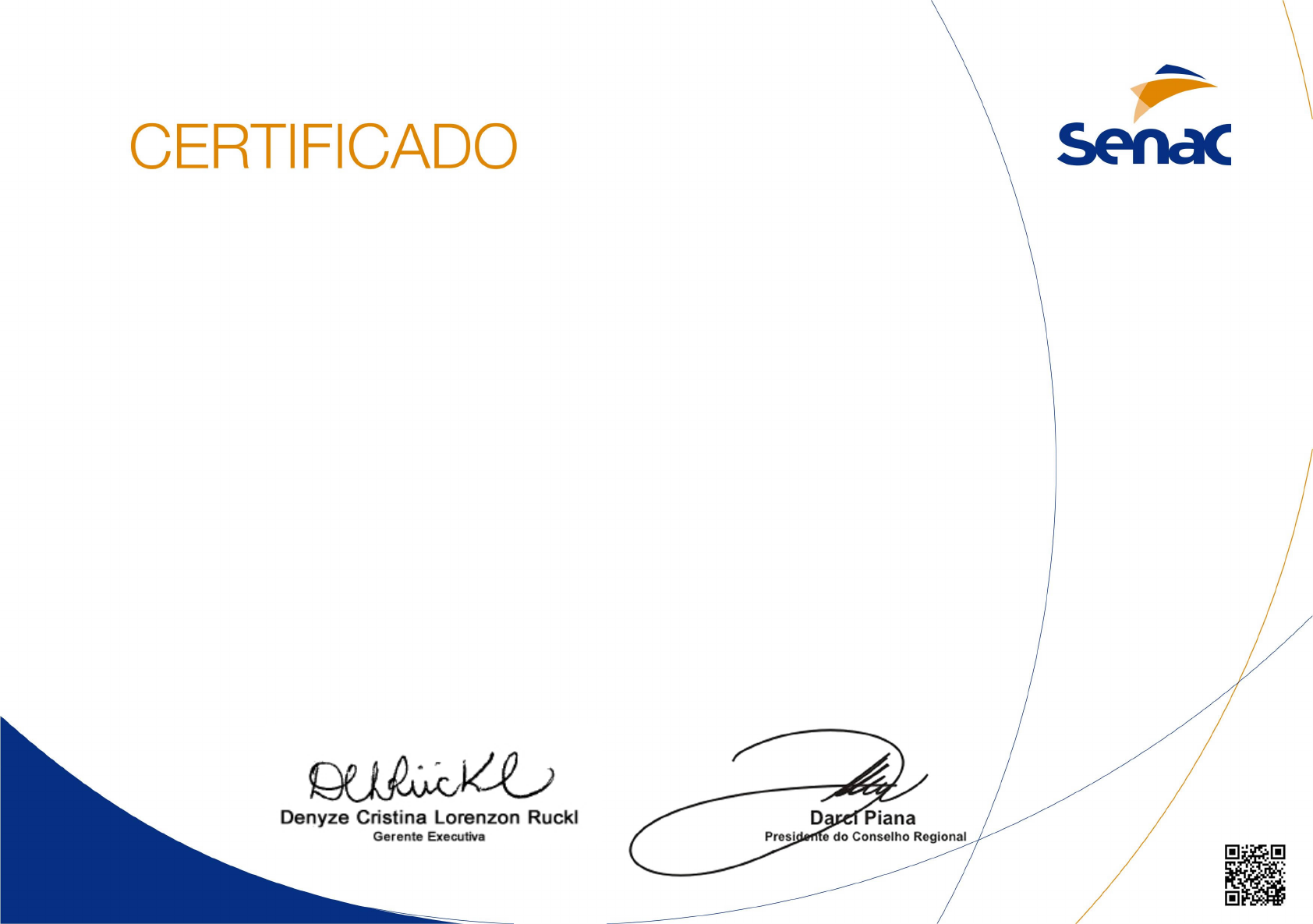 O Senac Paraná confere o certificado para TIAGO FERNANDES DE OLIVEIRA por haver concluído com aproveitamento o Curso de INFORMÁTICA BÁSICA COM INTERNET E MÍDIAS SOCIAIS Carga Horária: 160 horas Concluído em: 03/07/2015 CURITIBA, 06 de Junho de 2018 certificado nº 27.201500181/102861 para verificar a autenticidade deste, acesse www.pr.senac.br/certificados ou por QR Code Aluno(a): TIAGO FERNANDES DE OLIVEIRA C O N T E Ú D O P R O G R A M Á T I C O Disciplina/Componente Curricular/... Início Término Carga Horária (%)Frequência Nota/Conceito/Competência Módulo/Etapa/Bloco Temático: Curso sem Etapa/Modulo 1 Informática Básica com Internet e Mídias Sociais 27/04/2015 03/07/2015 160 100 Apropriou Introdução a Micro Informática: - conceitos de hardware e software; - treinamento básico em digitação. Uso Básico do Micro: - introdução aos sistemas operacionais Windows e Linux; - introdução ao Microsoft Word e BROffice Writer; - como criar um arquivo de texto, formatar e salvar; - introdução ao Microsoft Excel e BROffice Calc; - como criar uma planilha de calculo, formatar e salvar; - introdução ao Microsoft Powepoint e BROffice Impress; - como criar uma apresentação, formatação e apresentação; - introdução a Internet, realizar buscas e fazer download de arquivos da Internet. Introdução as Mídias Sociais: - como criar uma conta de E-mail, YouTube, Facebook, Twitter. Resultado final do Curso: Aprovado