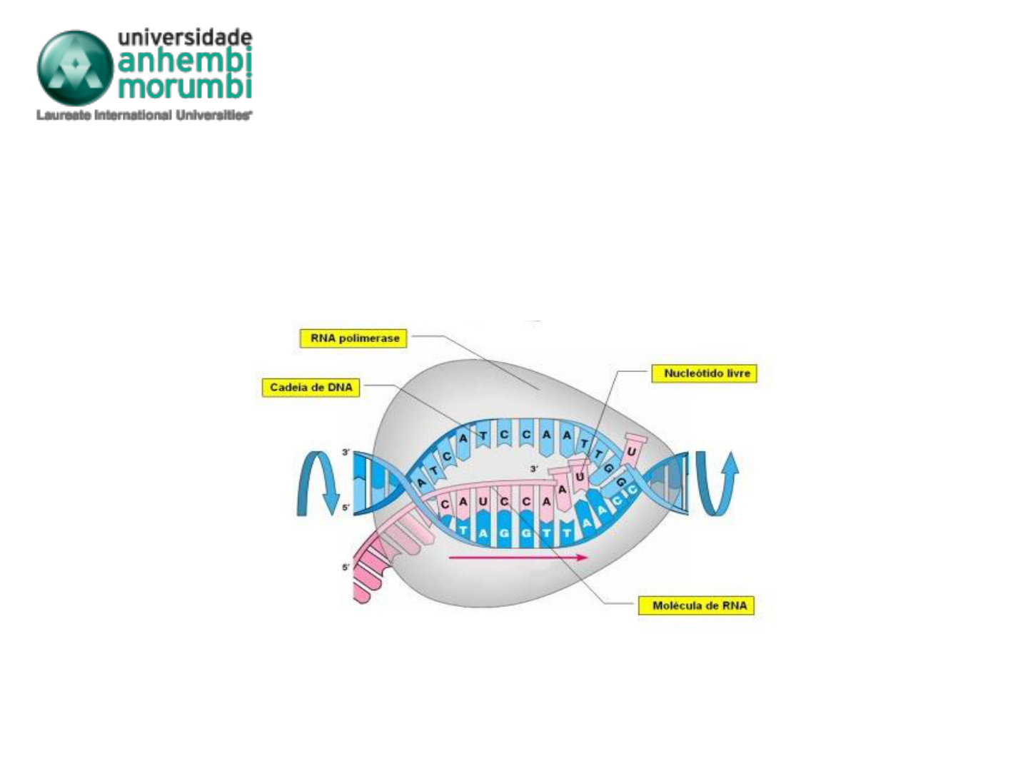 Transcrição - Tradução Síntese Proteica Processos Biológicos 2016 Objetivos da aula Conhecer o conceito de gene Conhecer o processo de transcrição do DNA em RNA Conhecer o processo de tradução do RNA em proteínas. RNA e DNA: Comparação das estruturas Síntese do RNA Síntese do RNA Splicing Splicing Splicing alternativo RNA e Síntese Proteica RNA de transferência (tRNA) RNA de transferência (tRNA) RNA de transferência (tRNA) RNA de transferência (tRNA) RNA de transferência (tRNA) RNA mensageiro (mRNA) RNA ribossômico (rRNA) RNA ribossômico (rRNA) Síntese de Proteínas - TRADUÇÃO Exemplos: CCG ATC GAT CGC ATC GCT ACG TTT AAA TTT ATA TAC DNA ⇒… GGC TAG CTA GCG TAG CGA TGC AAA TTT AAA TAT ATG… RNAm ⇒… CCG AUC GAU CGC AUC GCU ACG UUU AAA UUU AUA UAC… CÓDONS ⇒…[CCG][AUC][GAU][CGC][AUC][GCU][ACG][UUU][AAA][UUU][AUA][UAC]… Síntese de Proteínas - TRADUÇÃO Mutações O que é uma mutação? mutação reparo As mutações surgem de forma espontânea durante a replicação ou induzidas por agentes externos! Quando e como surgem as mutações??? Mutações Mutações Podem ser classificadas em três categorias: Genômicas: quando afetam o número de cromossomos Cromossômicas: alteram a estrutura de cromossomos Gênicas: alteram genes individuais Efeito da mutação depende da REGIÃO ACOMETIDA Região codificante de proteína (exon); promotor, gene supressor de tumor; etc. O genoma humano A menor parte do genoma humano codifica proteínas 3 bi pares de base; 46 cromossomos; 2% – 20.000 genes codificantes de proteínas Mutações Mutações de ponto - troca de um nucleotídeo por outro Mutação silenciosa – muda o códon mas não aminoácido CCA / CCC = prolina Mutação com sentido trocado - MISSense GAA / GUA – glutamato / valina (anemia falciforme) Mutação funcionalmente neutra Há troca de aminoácido mas sem dano a proteína Mutação sem sentido – STOP códon - NOsense Inserções e deleções – mudança no quadro de leitura (frame shift) DMD Anemia falciforme - hemoglobina S Frame shift – mudança de fase Epidermólise bolhosa – gene queratina