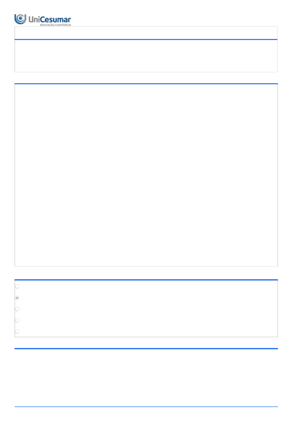 13/08/2018 Unicesumar - Ensino a Distância 1/7 PROVA - GO - PROJETO DE VIDA - 2018B Período:18/07/2018 08:00 a 22/07/2018 23:59 (Horário de Brasília) Status:ENCERRADO Nota máxima:6,00 Gabarito:Gabarito será liberado no dia 13/08/2018 00:00 (Horário de Brasília) Nota ob�da:6,00 1ª QUESTÃO Estruturar um projeto de vida não é uma tarefa fácil e é muito comum as pessoas terem dúvidas sobre o que deve ser feito primeiro ou por onde devem começar. Pensando em dirimir essas possíveis dúvidas e com o foco em criar um método que permitisse gerar segurança e convicção nas decisões, propomos uma série de ferramentas e atividades, com a finalidade de auxiliar na construção de seu projeto de vida. Esse processo está organizado em três etapas (mapeando o estado atual, mapeando meu estado desejado e estabelecendo o plano de ação). Sobre os exercícios utilizados ao longo desse processo, a seguir analise as afirmações sobre Ganhos e Perdas. I. Constitui a representação do estado desejado, por meio de uma ilustração ou desenho e conjuntamente a relação das características e sentimentos predominantes nesse momento de vida futuro. II. Toda conquista exige algum tipo de sacrifício e esse exercício tem como função nos auxiliar nessa reflexão e identificação dos nossos motivadores e sabotadores. III. Precisamos sempre manter o foco naquilo que queremos conquistar e, para isso, é imprescindível ter clareza de propósito. Somente assim, conseguiremos identificar os ganhos e as perdas ao longo de nossa trajetória. IV. Esse exercício tem como objetivo ajudar a compreender melhor a própria trajetória de vida, pois devemos saber contar com propriedade a nossa história, para que possamos desenvolver autoconhecimento, reconhecer a importância de vitórias e fracassos para a construção da nossa forma de ser, pensar e agir. É correto o que se afirma em: ALTERNATIVAS I, apenas. II e III, apenas. III e IV, apenas. I, III e IV, apenas. I, II, III e IV. 2ª QUESTÃO 13/08/2018 Unicesumar - Ensino a Distância 2/7 Conquistar o equilíbrio nas diferentes áreas da vida é sem dúvidas um grande desafio que nos permite desenvolver um olhar introspectivo sobre a qualidade e plenitude de nossa vida. Na concepção do projeto de vida, devemos buscar o sucesso em todas as áreas, contudo é muito comum as pessoas levarem a vida de forma desequilibrada sacrificando áreas da vida para obter sucesso em uma determinada área. Vieira (2010), apresentou um conjunto de dez pilares que se destacam como os principais fundamentos da vida humana e que precisamos gerenciar. Acerca desses pilares, relacione as colunas a seguir: 1.Espiritualidade 2. Família 3. Saúde e bem estar 4. Desenvolvimento pessoal 5. Equilíbrio emocional ( ) Refere-se ao estado de saúde, vitalidade e disposição física do indivíduo. Nesse quesito avalia-se também o preparo físico, energia e flexibilidade e a ausência de dores, obesidade e limitações físicas. ( ) Refere-se à harmonia que existe entre os membros, a afetividade, o toque e a validação. Esse pilar é analisado também pela capacidade de perdoar e conviver amorosamente apesar das diferenças pessoais. Importante ressaltar que a vida amorosa e matrimonial refere-se ao pilar conjugal e não ao familiar. ( ) Esse pilar refere-se ao seu relacionamento com Deus, a fé que você possui, o conhecimento sobre a Palavra, a capacidade de descansar suas inquietações e temores em Deus. Algumas pessoas confundem esse pilar com caridade e paz interior. ( ) Esse pilar é avaliado pelo equilíbrio de todos os seus pilares e também pela alegria de viver a sua própria vida. Pode ser definido muitas vezes pela maneira como você acorda pela manhã e pelo entusiasmo e alegria que você tem ao se deparar com a vida e seus desafios diários. ( ) Representa o quanto você tem investido e se dedicado em buscar o desenvolvimento pessoal, seja na perspectiva intelectual, cultural, humana ou técnica. Esse aprimoramento pode ser conquistado por meio de cursos de graduação, cursos livres, palestras, workshop, entre outros, ou ainda, pode ser adquirido por meio de livros, filmes, cursos on-line. Assinale a alternativa correta: ALTERNATIVAS 3-2-1-5-4. 4-3-2-1-5. 5-4-2-3-1. 1-4-2-3-5. 2-1-3-4-5. 3ª QUESTÃO 13/08/2018 Unicesumar - Ensino a Distância 3/7 Conquistar o equilíbrio nas diferentes áreas da vida é, sem dúvidas, um grande desafio que nos permite desenvolver um olhar introspectivo sobre a qualidade e plenitude de nossa vida. Na concepção do projeto de vida, devemos buscar o sucesso em todas as áreas, contudo é muito comum as pessoas levarem a vida de forma desequilibrada, sacrificando áreas da vida para obter sucesso em uma determinada área. Considerando os diferentes pilares da vida que necessitamos gerenciar, a seguir avalie as afirmações. I. O pilar família analisa sua relação com seus pais e irmãos, caso você tenha filhos, refere-se ao seu relacionamento com seus filhos e não com seus parentes. Esse pilar é analisado também pela capacidade de perdoar e conviver amorosamente apesar das diferenças pessoais. II. Os pilares social e lazer retratam a harmonia e o amor existente. O diálogo, afetividade, respeito, compreensão, flexibilidade, dedicação e intimidade. A capacidade de fazer o outro feliz sem que haja cobrança por isso. É a capacidade de tocar, olhar nos olhos, abraçar e dialogar sem que haja cobranças ou acusações. III. O pilar desenvolvimento pessoal relaciona-se com a carreira, seu crescimento e nível de desempenho do ponto de vista da empresa, fornecedores e clientes. Deve ser avaliado também pelos resultados gerados por você, desde que possam ser mensurados. Quanto melhor sua avaliação e quanto maior forem os resultados gerados por você, maior sua nota de avaliação. IV. O pilar profissional refere-se ao quanto você se sente realizado e próspero frente a tudo que tem vivido, o quanto você se sen