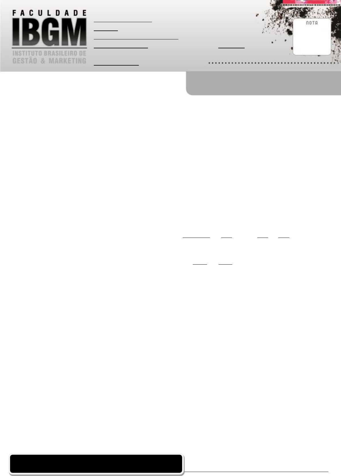 R. JOAQUIM FELIPE, 250 – BOA VISTA – RECIFE/PE EXERCÍCIOS DE FIXAÇÃO CURSO: ADMINISTRAÇÃO ALUNO(A):_________________________________________________________________ DISCIPLINA: MATEMÁTICA APLICADA PROF.(A): JONAS CRUZ TURMA: 1 N DATA: _/____/2016 WWW.IBGM.ORG 3036-0001 1. Calcule a razão entre as grandezas: a) 256 e 960 b) 1,25 e 3,75 c) 5 e 1/3 d) 1/2 e 0,2 e) 27 m³ e 3 litros de álcool f) 24 Kg e 80.000 g g) 40 g e 5 cm³ h) 20 cm e 4 dm i) 20 dias e 2 meses 15 dias 2. No vestibular de 2.005 da faculdade concorreram, para 50 vagas da opção Administração, 150 candidatos. Qual a relação candidato vaga para essa opção? 3. Tenho duas soluções de água e álcool. A primeira contém 279 litros de álcool e 1.116 litros de água. A segunda contém 1 155 litros de álcool e 5 775 litros de água. Qual das duas soluções tem maior teor alcoólico? 4. Numa prova de matemática, um aluno acertou 20 questões e errou 5. Escreva a razão entre: a) o número de acertos e o número de questões b) o número de acertos e o número de erros 5. Verificar se são ou não proporções as seguintes igualdades: a) 4/15 = 72/270 b) 0,75/ 0,25 = 3 c) 2 82,45,9 = 60 1,14 d) 3/2 9/5 = 8,0 3/2 6. Encontrar o valor de x nas proporções: a) x/20 = 4/10 b 12/121 = 6/x c) x x 2 = 3 2 x 7. Escreva quatro proporções utilizando os números 3,4, 6 e 8. 8. Calcular x e y na proporção x/7 = y/12, sabendo que x + y = 76. 9. Na série de razões x/10 = y/120 = z/14, calcular x, y e z, sabendo que x + y + z = 88. 10. Verificar se os números 18, 6 e 3 são ou não diretamente proporcionais aos números 6, 2 e 1. 11. Verificar se os números da sucessão (30, 24, 20) são ou não inversamente proporcionais aos números da sucessão (4, 5, 6). 12. Encontrar x e y, sabendo que os números 20, x, y são diretamente proporcionais aos números 4, 2 e 1. 13. Encontrar x, y e z sabendo que as sucessões (x, 3, z) e (9, y, 36) são inversamente proporcionais com coeficiente de proporcionalidade igual a 36. 14. O número de dias gastos na execução de uma obra é direta ou inversamente proporcional ao número de máquinas empregadas na obra? Por quê? 15. Dividir 720 em partes diretamente proporcionais a 4, 6 e 8. R. JOAQUIM FELIPE, 250 – BOA VISTA – RECIFE/PE EXERCÍCIOS DE FIXAÇÃO CURSO: ADMINISTRAÇÃO ALUNO(A):_________________________________________________________________ DISCIPLINA: MATEMÁTICA APLICADA PROF.(A): JONAS CRUZ TURMA: 1 N DATA: _/____/2016 WWW.IBGM.ORG 3036-0001 16. Dividir o número 260 em parte inversamente proporcionais aos números 2, 3 e 4. 17. Dois operários contratam um serviço por R$ 180,00. Como devem repartir essa quantia, se um trabalhou 7 horas e o outro 8 horas, sendo a divisão diretamente proporcional ao tempo de trabalho? 18. A Federação Brasileira de futebol resolveu distribui prêmios num total de 320.000,00 para os quatro jogadores brasileiros que tiveram o melhor ataque durante a Copa do Mundo, ou seja, para aqueles que fizeram o maior número de gols na razão direta desses gols. Os jogadores premiados fizeram 9, 6, 3 e 2 gols. Quanto recebeu cada jogador? 19. Um pai deixou R$ 2.870,00 para serem divididos entre seus três filhos na razão inversa de suas idades: 8, 12 e 28 anos. Quanto recebeu cada um? 20. Um número foi dividido em partes diretamente proporcionais a 4 e 3. Sabendo que a parte correspondente a 4 era 2.000, encontre esse número. 21. Dividir o número 4.680 em partes diretamente proporcionais a 3 e 6 e, em seguida, diretamente proporcionais a 5 e 4. 22. Dividir o número 2 640 em partes diretamente proporcionais a ¾ e ½ e inversamente proporcionais a 5/6 e 2/3. 23. Um milionário resolveu dividir parte de sua fortuna entre três sobrinhas, de modo que a divisão fosse diretamente proporcionais às suas idades e inversamente proporcionais a seus pesos. As moças tinham 16, 18 e 21 anos e pesavam, respectivamente, 52, 48 e 50 quilos. A quantia a ser dividida entre elas era de R$ 5.734.000, 00. Quanto cada uma recebeu? 24. A importância de R$ 20.650,00 foi dividida entre duas pessoas. A primeira recebeu na razão direta de 8 e na razão inversa de 3; a segunda recebeu na razão direta de 9 e na razão inversa de 4. Quanto recebeu cada pessoa? 25. Um comerciante deseja premiar, no primeiro dia útil de cada mês, os três primeiros fregueses que chegarem ao seu estabelecimento. Para tanto, dividiu R$ 507,00 em partes inversamente proporcionais a 2 ¼ , 3 5 e 1,2. Nessas condições, qual o prêmio de menor valor a ser pago? 26. Dividindo o número 570 em três partes, de tal forma que a primeira esteja para a segunda como 4 está para 5 e a segunda esteja para a terceira como 6 está para 12. Qual o valor da 3ª parte? (300) 27. Três sócios sofreram um prejuízo de R$ 14.400,00. Os três entraram para a sociedade com o mesmo capital, ficando o primeiro durante 11 meses, o segundo12 e o terceiro 13 meses. Qual foi o prejuízo de cada um? R. JOAQUIM FELIPE, 250 – BOA VISTA – RECIFE/PE EXERCÍCIOS DE FIXAÇÃO CURSO: ADMINISTRAÇÃO ALUNO(A):_________________________________________________________________ DISCIPLINA: MATEMÁTICA APLICADA PROF.(A): JONAS CRUZ TURMA: 1 N DATA: _/____/2016 WWW.IBGM.ORG 3036-0001 28. Um investimento total de R$ 60.000,00 foi feito por três amigos. Sabendo que o tempo foi o mesmo e que o segundo sócio ganhou o dobro do primeiro, e o terceiro o triplo, quanto investiu cada um? 29. Jonas e Paulo se associaram para jogar na loteria. Jonas deu R$ 1,80 e Paulo R$ 1,20. Tendo acertado um terno, eles ganharam R$ 1.600,00. Quanto receberá cada um? 30. Três pedreiros, ganhando o mesmo salário-hora, trabalharam, respectivamente, 24, 18 e 20 horas. Na hora do pagamento, o dono da obra tinha em mãos um envelope com R$ 3.100,00. Como foi feita a divisão do dinheiro? 31. Uma sociedade entre dois amigos, A e B, foi estabelecida com as seguintes características: CAPITAL TEMPO DE APLICAÇÃO SÓCIO A 2500,00 1 ano 