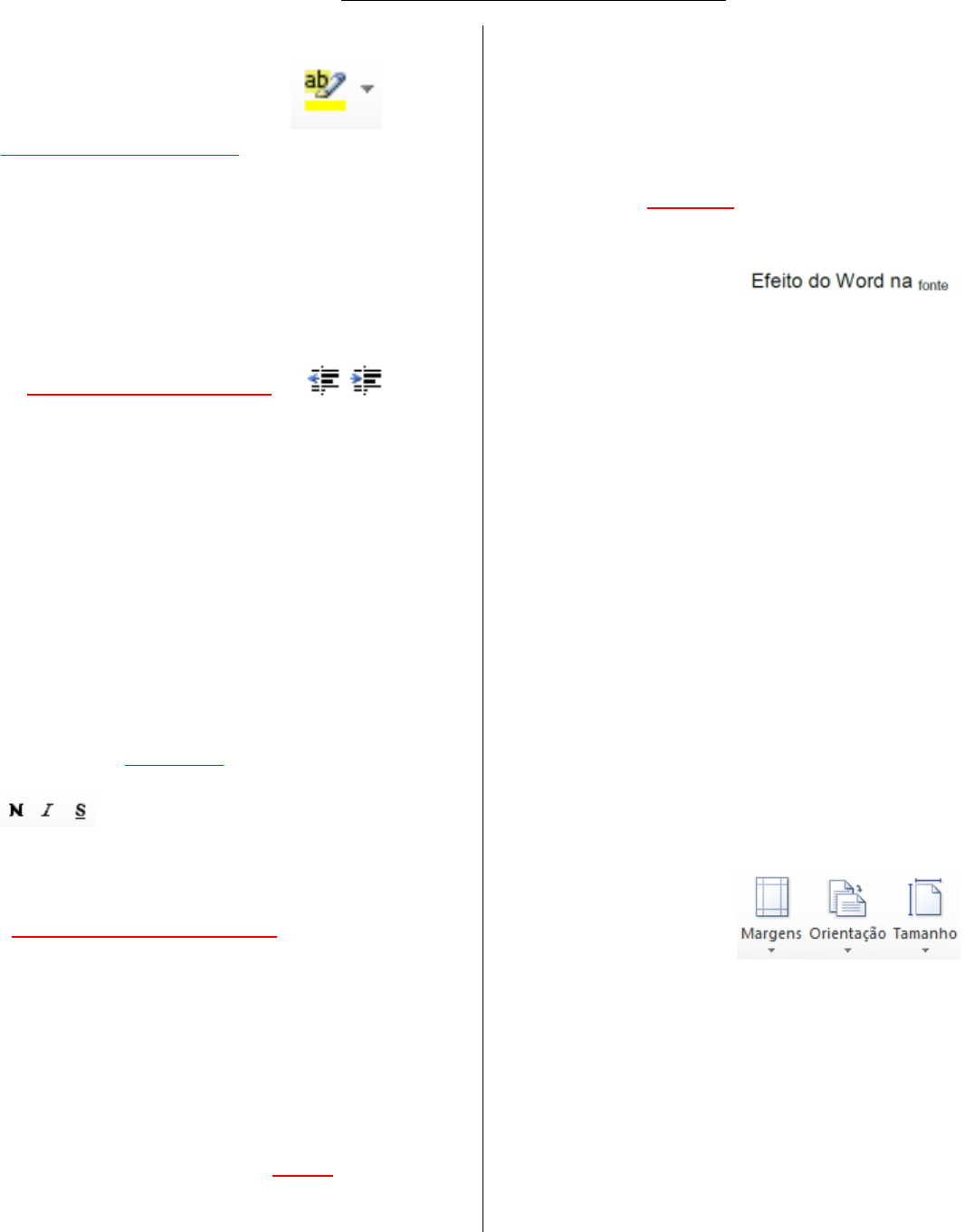 Exercício de Revisão para a Prova de Word No Microsoft Word 2010, qual a função do botão apresentado na figura ? A)Aumentar/Diminuir Recuo. B) Cor do Realce do Texto. C) Cor da Fonte. D) Efeitos de Texto. E) Sombreamento No Microsoft Word 2010, qual a função dos botões apresentados na figura a seguir, respectivamente, da esquerda para a direita ? A) Diminuir/ Aumentar Recuo. B) Cor do Realce do Texto. C) Cor da Fonte. D) Efeitos de Texto. E) Sombreamento. No Word 2010, é possível criar um documento com determinados campos, como um formulário, por exemplo, e salvá-lo de maneira que se possa utilizar esse documento como base para novos arquivos do mesmo tipo. Assinale a alternativa que apresenta a denominação CORRETA desse tipo de documento: A) Guia. B) Padrão. C) Estilo. D) Formato. E) Modelo. Essa barra de ferramenta formata, respectivamente, com as formas: A) Sublinhar, negritar e itálico. B) Itálico, negritar e sublinhar. C) Negritar, itálico e sublinhar. D) Negritar, sublinhar e itálico. E) Sublinhar, itálico e negritar. Os editores de texto são certamente os softwares mais utilizados em informática. Eles possibilitam a confecção dos mais diversos tipos de texto. Dentre os mais conhecidos temos o Microsoft Word 2010, cuja extensão padrão é: A) .xlsx B) .word C) .docx D) .text E) .soft No Word se um texto já foi formatado e você deseja repetir a mesma formatação para outro texto, pode-se copiar a formatação do primeiro texto usando a ferramenta: A) desfazer B) refazer C) recortar D) colar E) pincel Analise a imagem abaixo: Analisando a imagem qual efeito do Word foi aplicado na palavra fonte? A) sobrescrito. B) baixo relevo. C) subscrito. D) relevo. E) caixa alta Preencha as lacunas e marque a alternativa correta: No Microsoft Word 2010, para criar um cabeçalho no texto, o usuário precisa criar na guia _A__ e, em seguida clicar na opção __C____. a) Exibir / Cabeçalho b) Inserir / Cabeçalho e Rodapé c) Inserir / Cabeçalho d) Exibição / Cabeçalho e Rodapé e) Layout da página / Cabeçalho e Rodapé Quando se deseja criar um documento com aparência agradável e alinhado noWord2010, é possível usar as quatro formas de alinhamento horizontal do texto encontradas nesse aplicativo, que são: a) justificado, à direita, à esquerda e centralizado b) extremo, à direita, centralizado e justo c) extremo, à esquerda, direita e centralizado d) justificado, extremo, à direita, à esquerda e) superior, inferior, esquerda, direita As opções descritas na figura estão relacionado a qual dos seguintes itens: a) Tabela b) Figuras c) Fonte d) Layout de página e) Sumário Reproduzam o modelo de organograma fornecido abaixo, seguindo as seguintes observações: a. Utilize o Layout “ORGANOGRAMA” para fazer o seu organograma. b. Salvem o documento com o nome ORGANOGRAMA. Formate: O titulo alunos tamanho 16, fonte Arial, cor Azul. Coloque bordas pontilhadas. Coloque sombreamento entre as linhas alterando a cor. (Azul e Verde) Títulos como: numero, nome, português, matemática e informática coloque o tamanho 14, Negrito, Sublinhado e itálico. Alunos Numero Nome Português Matemática Informática 1 Ana Castro 12 16 14 2 Sandra Neves 10 9 15 3 Antônio Maia 9 10 12 4 Rui Victor 4 11 13 5 Carlos Silva 14 13 17 6 Nuno Rodrigo 11 15 12 7 Daniela Lopes 14 18 11 8 José Pinto 10 12 10 9 Helena Cunha 12 11 18 10 Joana Nunes 11 10 11