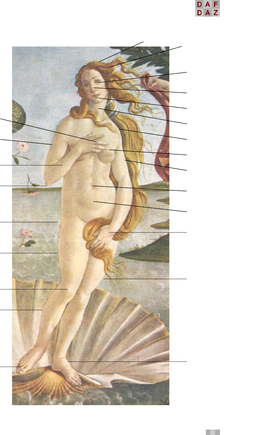Auschnitt aus: Sandro Botticelli: Die Geburt der Venus www.graf-gutfreund.at © copyright by I G G 1 Der Körper 1 der Finger der Oberarm der Unterarm der Ellbogen die Hüfte der Ober- schenkel das Knie der Unter- schenkel die Zehe der Fuß das Bein die Hand der Bauch der Nabel der Arm die Brust, der Busen die Schulter der Hals der Mund die Nase das Auge das Haar der Kopf Auschnitt aus: Sandro Botticelli: Die Geburt der Venus www.graf-gutfreund.at © copyright by I G G 2 Schreiben Sie bitte die Namen der Körperteile
