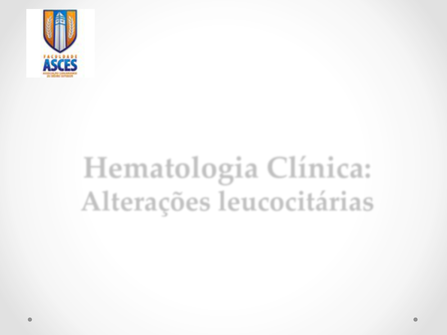 Faculdade ASCES Associação Caruaruense de Ensino Superior Disciplina de Hematologia Clínica - 6P Hematologia Clínica: Alterações leucocitárias Leucócitos Leucograma – Avaliação dos leucócitos no sangue periférico. Compartimentos dos leucócitos: • Medula Óssea • Sangue periférico • Tecidos Linhagem granulocítica Neutrófilos – Eosinófilos - Basófilos Granulopoiese Mieloblasto Promielócito Mielócito Bastonete Segmentado Metamielócito Linhagem monocítica Monoblasto Promonócito Monócito Linfoblasto Prolinfócito Linfócito Linhagem linfóide Plasmócito Contagem Total dos leucócitos Valores de referência: 4,0 a 11,0 x 10³/uL (ou 109/L) - Leucocitose = leucócitos totais > 11,0 x 10³/uL - Leucopenia = leucócitos totais < 4,0 x 10³/uL Patologia dos leucócitos • Anomalias leucocitárias –Estão relacionadas a alterações de forma e função dos leucócitos –São de caráter hereditário Compreendem: • Anomalias leucocitárias propriamente ditas – existe alteração de forma e função; • Anomalias funcionais dos leucócitos – quase não há alteração de forma; • Doenças proliferativas da linhagem mielóide; • Doenças proliferativas da linhagem linfóide; Patologia dos leucócitos Anomalias leucocitárias propriamente ditas • Anomalia de Pelger-Huet • Anomalia de May-Hegglin • Hipersegmentação constitucional dos neutrófilos • Gigantismo dos segmentados neutrófilos • Anomalia de Alder-Reilly • Anomalia de Chediak-Higashi • Anomalia de Alius-Grignaschi ou Anomalia de Jordan Anomalia de Pelger-Huet • Hereditária autossômica dominante • Anomalia na forma do núcleo dos neutrófilos – frequente • Falta de segmentação com assincronismo de maturação • Núcleos arredondados em bastão (lentes de óculos) • Citoplasma c/ coloração e granulações normais • Forma heterozigótica e homozigótica: sem deficiência funcional • Pelgeróides (pseudo-pelger): Leucemias, metástases medulares, mielomas, malária Anomalia de Pelger-Huet Anomalia de May-Hegglin • Hereditária autossômica dominante • Inclusões basófilas de RNA no citoplasma de granulócitos e monócitos • Trombocitopenia leve associada a plaquetas gigantes, deficientes (n° e forma) Anomalias leucocitárias Hipersegmentação constitucional dos neutrófilos Neutrófilos normais: 12 µm Gigantismo: 16 µm Anomalia de Alder-Reilly • Provoca depósito em todos os leucócitos • Granulações lisossomais acumuladas citoplasma • Comum em mucopolissacaridoses, especialmente o tipo VI (diminuição ou falta de enzimas que metabolizam glicosaminoglicanos) Anomalia de Chediak-Higash • Hereditária autossômica recessiva • Grandes inclusões eosinofílicas • Defeito genético na membrana lisossomal: grânulos gigantes, deficiência na quimiotaxia, MPO anormal, ↓defesa imunológica • Quadro clínico grave – homozigótica (incompatível c/ sobrevida) heterozigóticos (+ brando) • Albinismo total ou parcial, adeno-hepato-esplenomegalia e manifestações neurológicas • Pseudo- Chediak-Higash: leucemias agudas e Síndromes mielodisplásicas. Anomalia de Chediak-Higash Patologia dos leucócitos Anomalias funcionais dos leucócitos • Devidas a alterações intrínsecas dos granulócitos: – Deficiência de adesão leucocitária ao endotélio – Síndrome do leucócito preguiçoso – Síndrome de Chediak-Higashi-Steibrinck – Geração deficiente de peróxido de hidrogênio • Devido a alterações extracelulares: – Deficiência de fatores quimiotáticos – Deficiência de opsoninas Síndrome do leucócito preguiçoso Anomalias funcionais dos leucócitos • Alteração na polimerização das proteínas contráteis • Motilidade dos neutrófilos: lentos e quimiotaxia deficiente • Rara. Capacidade de morte bacteriana comprometida Geração deficiente de peróxido de hidrogênio Anomalias funcionais dos leucócitos • Geração deficiente de H₂O₂ decorrente da ↓NADPH e NADH (precursores) • Polimerização anormal de tubulina • Deficiência de MPO: sem quadro clínico severo desde que outros mecanismos estejam normais Anomalias devidas a alterações extracelulares Anomalias funcionais dos leucócitos • Deficiência de fatores quimiotáticos: - Fagócitos (neutrófilos e monócitos) – normalidade intrínseca e produção de substâncias que atuam na quimiotaxia - Agentes quimiotáticos importantes: natureza protéica - Defeito na síntese proteica: inibidores ou inativadores das frações do SC ( alteração no mecanismo inflamatório) • Deficiência de opsoninas: substâncias que atuam na fagocitose por neutrófilos e monócitos • Defeito na síntese de proteínas: falha na opsonização e fagocitose > suscetibilidade à infecções Anomalias leucocitárias adquiridas Diagnóstico laboratorial diferencial Granulações Tóxicas Corpúsculos de Döhle Pseudo-Pelger-Huet Vacuolizações Tóxicas Hipersegmentação nuclear Atipias linfocitárias Algumas causas de atipias linfocitárias - Mononucleose infecciosa (vírus de Epstein-Barr) - Coqueluche (Bordetella pertussis) - Infecção por Citomegalovirus - Dengue - Rubéola - Varicela - Herpes (simples e zoster) - Meningite linfocitária - AIDS inicial (2ª semana após contaminação pelo HIV) - Infecção bacteriana: brucelose, tuberculose e sífilis. - Infecção por protozoários: Toxoplasmose, Malária, Babesiose. - Hipersensibilidade a drogas: fenotiazimas, ácido-aminosalísilico, mensantonia, sulfasalazina, etc. Atipias linfocitárias Atipia por hiperbasofilia citoplasmática e polimorfismo nuclear – Mononucleose e Hepatite viral Atipias linfocitárias Atipia por hiperbasofilia citoplasmática– Dengue Atipias linfocitárias Linfócitos atípicos lobulados– Coqueluche Alterações linfocitárias • Algumas causas de linfocitose: Muitas infecções virais (mononucleose infecciosa, citomegalovírus, varicela, hepatites, adenovírus, sarampo, pa