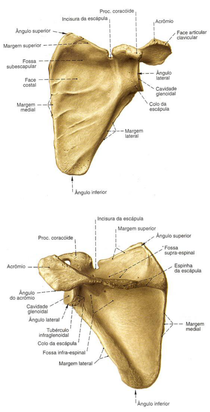 Escápula - Vista Anterior Úmero - Vista Anterior e Posterior Ulna - Vistas Anterior, Posterior e Lateral Rádio - Vistas Anterior, Posterior e Medial Fêmur - Vista Anterior Fêmur - Vista Posterior MUSCULOS DELTÓIDE Ombro Inserção Proximal: 1/3 lateral da borda anterior da clavícula, acrômio e espinha da escápula Inserção Distal: Tuberosidade deltóidea - úmero Inervação: Nervo Axilar (C5 e C6) Ação: Abdução do braço, auxilia nos movimentos de flexão, extensão, rotação lateral e medial, flexão e extensão horizontal do braço. Estabilização da articulação do ombro SUPRA-ESPINHAL Ombro Inserção Medial: Fossa supra-espinhal - escápula Inserção Lateral: Faceta superior do tubérculo maior do úmero Inervação: Nervo Supra-escapular (C5 e C6) Ação: Abdução do braço INFRA-ESPINHAL Ombro Inserção Medial: Fossa infra-espinhal da escápula Inserção Lateral: Faceta média do tubérculo maior do úmero Inervação: Nervo Supra-escapular (C5 e C6) Ação: Rotação lateral do braço REDONDO MENOR Ombro Inserção Medial: 2/3 superior da borda lateral da escápula Inserção Lateral: Faceta inferior do tubérculo maior do úmero Inervação: Nervo Axilar (C5 e C6) Ação: Rotação lateral e adução do braço REDONDO MAIOR Ombro Inserção Medial: 1/3 inferior da borda lateral da escápula e ângulo inferior da escápula Inserção Lateral: Crista do tubérculo menor do úmero Inervação: Nervo Subscapular Inferior - Fascículo posterior do plexo braquial (C5 e C6) Ação: Rotação medial, adução e extensão da articulação do ombro BÍCEPS BRAQUIAL Braço - Região Anterior Inserção Proximal: Porção Longa: Tubérculo supra-glenoidal Porção Curta: Processo coracóide Inserção Distal: Tuberosidade radial Inervação: Nervo Musculocutâneo (C5 e C6) Ação: Flexão de cotovelo / ombro e supinação do antebraço BRAQUIAL ANTERIOR Braço - Região Anterior Inserção Proximal: Face anterior da metade distal do úmero Inserção Distal: Processo coronóide e tuberosidade da ulna Inervação: Nervo Musculocutâneo (C5 e C6) Ação: Flexão de cotovelo CORACOBRAQUIAL Braço - Região Anterior Inserção Proximal: Processo coracóide - escápula Inserção Distal: 1/3 médio da face medial do corpo do úmero Inervação: Nervo Musculocutâneo (C5 e C6) Ação: Flexão e adução do braço TRÍCEPS BRAQUIAL Braço - Região Posterior Inserção Proximal: Porção Longa: Tubérculo infra-glenoidal Porção Medial: ½ distal da face posterior do úmero (abaixo do sulco radial) Porção Lateral: ½ proximal da face posterior do úmero (acima do sulco radial) Inserção Distal: Olécrano Inervação: Nervo Radial (C7 - C8) Ação: Extensão do cotovelo PRONADOR REDONDO Antebraço - Região Anterior - 1ª Camada Inserção Proximal: Epicôndilo medial do úmero e processo coronóide da ulna Inserção Distal: Face lateral do 1/3 médio da diáfise do rádio Inervação: Nervo Mediano (C6 - C7) Ação: Pronação do antebraço e auxiliar na flexão do cotovelo PALMAR LONGO Antebraço - Região Anterior - 1ª Camada Inserção Proximal: Epicôndilo medial Inserção Distal: Aponeurose palmar e retináculo dos flexores Inervação: Nervo Mediano (C6 - C8) Ação: Flexão do punho, tensão da aponeurose palmar e retináculo dos flexores GLÚTEO MÁXIMO Quadril (Região Glútea) Inserção Medial: Linha glútea posterior do ilíaco, sacro, cóccix e ligamento sacrotuberoso Inserção Lateral: Trato íleotibial da fáscia lata e tuberosidade glútea do fêmur Inervação: Nervo Glúteo Inferior (L5 - S2) Ação: Extensão e rotação lateral do quadril GLÚTEO MÉDIO Quadril (Região Glútea) Inserção Superior: Face externa do íleo entre a crista ilíaca, linha glútea posterior e anterior Inserção Inferior: Trocânter maior Inervação: Nervo Glúteo Superior (L4 - S1) Ação: Abdução e rotação medial da coxa GLÚTEO MÍNIMO Quadril (Região Glútea) Inserção Superior: Asa ilíaca (entre linha glútea anterior e inferior) Inserção Inferior: Trocânter maior Inervação: Nervo Glúteo Superior (L4 - S1) Ação: Abdução e rotação medial da coxa. As fibras anteriores realizam flexão do quadril BÍCEPS FEMORAL Coxa - Região Posterior Inserção Proximal: Cabeça Longa: Tuberosidade isquiática e ligamento sacro-tuberoso Cabeça Curta: Lábio lateral da linha áspera Inserção Distal: Cabeça da fíbula e côndilo lateral da tíbia Inervação: Nervo Isquiático (L5 - S2), exceto L5 para a cabeça longa Ação: Extensão do quadril, flexão do joelho e rotação lateral do joelho SEMITENDÍNEO Coxa - Região Posterior Inserção Proximal: Tuberosidade isquiática Inserção Distal: Superfície medial da tuberosidade da tíbia (pata de ganso) Inervação: Nervo Isquiático (L5 – S2) Ação: Extensão do quadril, flexão e rotação medial do joelho SEMIMEMBRANÁCEO Coxa - Região Ântero-Lateral Inserção Proximal: Tuberosidade isquiática Inserção Distal: Côndilo medial da tíbia Inervação: Nervo Isquiático (L5 – S2) Ação: Extensão do quadril, flexão e rotação medial do joelho TENSOR DA FÁSCIA LATA Coxa - Região Ântero-Lateral Inserção Proximal: Crista ilíaca e EIAS Inserção Distal: Trato íleo-tibial Inervação: Nervo do Glúteo Superior (L4 - S1) Ação: Flexão, abdução e rotação medial do quadril e rotação lateral do joelho QUADRÍCEPS Coxa - Região Ântero-Lateral Inserção Proximal: Reto Anterior: Espinha ilíaca ântero-inferior Vasto Lateral: Trocânter maior, linha áspera, linha intertrocantérica e tuberosidade glútea Vasto Medial: Linha áspera e linha intertrocantérica Vasto Intermédio: 2/3 proximais da face anterior e lateral do fêmur e ½ distal da linha áspera Inserção Distal: Patela e, através do ligamento patelar, na tuberosidade anterior da tíbia Inervação: Nervo Femoral (L2 - L4) Ação: Extensão do joelho e o reto femural realiza flexão do quadril. O vasto medial realiza rotaçã