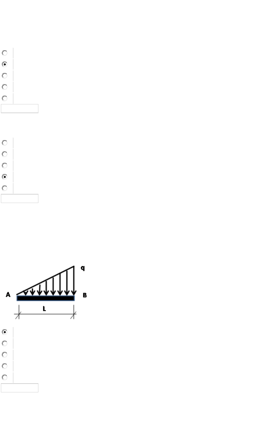 Em uma barra AB de comprimento “L”, em que atua uma força uniformemente distribuída triangular com a maior carga “q” atuando na extremidade B da barra, a força equivalente resultante e a distância da linha de ação desta força equivalente até o ponto A situado na extremidade da barra é: