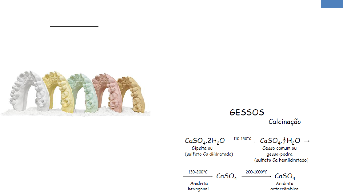 1 Mariana Magalhães – 5º Período MATERIAIS II Prof. Maria Carmen Serpa GESSOS ODONTOLÓGICOS - São materiais utilizados para obtenção de trabalhos indiretos - Moldagem → Molde → Réplica - Moldagem, é o processo de moldar. Molde é uma cópia negativa. Réplica é a reprodução do modelo. - Materiais para moldagem devem ser plásti- cos, ou seja, possuir boa capacidade de escoamento Indicações: CONSTRUÇÃO DE MODELOS DIVERSOS: - Modelo de estudo (ortodontia) - Modelo de trabalho (executados em labora- tório) - Antagonista - Montagem em articulador OBTENÇÃO DE TROQUÉIS (modelo de gesso de dente unitário, utilizado para construção de padrões de cera para fundição) COMO CONSTITUINTE DE REVESTIMENTO DE FUNDIÇÃO - Os gessos são obtidos a partir da Gipsita (gesso natural/mineral), encontrado na natureza - Devemos ter consciência na sua utilização e evitar desperdícios - Encontrado em abundância na Alemanha, Escócia e Brasil (Mossoró- RN) - Os gessos odontológicos são obtidos a partir da calcinação da Gipsita (gesso natural). A formação de obtenção do pó determina as características do gesso após a presa - Sulfato de cálcio diidratado é ressecado até que seja funcional para a odontologia - O que diferencia um gesso natural, de um gesso odontológico, é sua estrutura crista- lina (possuem características distintas, devido aos métodos de fabricação) Fabricação: - O gesso é triturado em partículas bem finas e é calcinado, em temperaturas que variam de 110° a 130°C, com isso ocorre a perda de água, convertendo a forma de diidrato em hemidrato de CaSO4. Calcinação x Características Físicas - Quando a gipsita é aquecida sob pressão em ambiente úmido é produzido um hemi- hidrato cristalino na forma de bastões ou prismas chamado gesso-pedra. - Os pós resultantes, são frequentemente chamados de α-hemidrato para o gesso- pedra e β-hemihidrato para o gesso comum. - α-hemidrato: Cristais clivados, bastões e prismas, mais densos. - β-hemidrato: Cristais finos, esponjoso, com poros capilares, irregular. - Quando as partículas do hemi-hidrato são misturadas com a água, a reção química mostrada anteriormente se inverte. - O α-hemidrato produz uma estrutura de di- hidrato muito mais resistente e dura do que daquela resultante do β-hemidrato. - A principal razão para essa diferença, é que os cristar de β-hemidrato são mais irregulares e porosos e, por esse motivo, necessitam de mais água para molhar as partículas do pó para que possam ser misturadas e vazadas - A forma alfa requer menos água para reagir que a forma beta, e produz um produto final com mais dureza. - O pó resultante é esfriado e a ele é adicionado elementos químicos (controlam as propriedades) e aditivos (controlam a alteração dimensional) - Quando os gessos tomam presa,com o passar do tempo, ocorre uma ligeira alteração dimensional para mais. 2 Mariana Magalhães – 5º Período Tipos de Gesso - A produção de diferentes tipos de gesso depende: . da granulometria do pó . do tipo de calcinação (forno aberto ou fechado) . temperatura e ambiente (dentro do forno) - Os mais usados na Odontologia, são os tipos: II, III e IV. - Aumento da resistência mecânica: I < II < III < IV < V - A reação química que ocorre nos diferentes tipos de gesso é a mesma: Hidratação - ¾ da água de cristalização são eliminados durante essa reação - A estrutura cristalina se altera sem reorganização das partículas - Diferenças: . Forma de liberação da água . Formato dos cristais de hemi-hidrato - Quanto melhor a manipulação, maior a quantidade de partículas hidratadas. SEMPRE COLOCAR O PÓ NA ÁGUA!!!! Tipo II, Paris ou Comum - É um β-hemidrato - Aquece rápido - Fabricados em calcinadores abertos (110° a 120°C) - É poroso, irregular - Exige maior proporção água/pó - Indicação: Modelo, preenchimento de mufla para a confecção de Prótese Total Removível, quando a expansão de presa não é crítica, e a resistência é adequada - Geralmente comercializado na cor branca natural, dessa forma contrastando com o gesso-pedra que geralmente é colorido Tipo III, gesso-pedra - É um α-hemidrato - Calcinação feita em autoclave a 125°C - Possui melhor qualidade dos cristais, maior rigidez final - Exige menor proporção água/pó que o tipo II - Suas partículas são pequenas, uniformes, regulares e mais densas - Utilizados para confecção de modelos para Prótese Total Removível, pois apresenta resistência suficiente para esse propósito e é fácil remover o gesso da prótese após o processamento. Tipo IV, gesso-pedra de alta resis- tência, especial, para troquel - É um α-hemidrato - Sua calcinação é feita em forno fechado, em contato com cloreto de Ca - A água do gesso é evaporada e substituída pelo cloreto de Ca (atrai água) - Exige menos água para sua reação que o tipo II e III - Utilizado para a confecção de troquel 3 Mariana Magalhães – 5º Período - Requisitos para ser usado na confecção de troquel: resistência, dureza e expansão de presa mínima Tipo V, gesso de alta expansão e alta dureza - Alta resistência com menor proporção água/pó - Cristais do tipo Densita, menos densos - Alta expansão para compensar a contração de solidificação de algumas ligas, como aquelas de metais básicos, que apresentam uma maior contração de resfriamento do que as ligas tradicionais de metais nobres - Utilizado para a fabricação de troquéis - Deve-se evitar o uso do gesso tipo V para a produção de troqueis para inlays e onlays, uma vez que a alta expansão pode resultar em peças excessivamente justas no dente preparado - É específico Gesso sintético - α e β-hemidrato (subprodutos da fabri- cação de ac. fosfórico) - Seu método de processamento é um segredo industrial - Possui maior dureza e resistência - É menos poroso - Mais caro $$$$ Proporção Água/Pó: QUANTO MAIOR A PROPORÇÃO A:P
