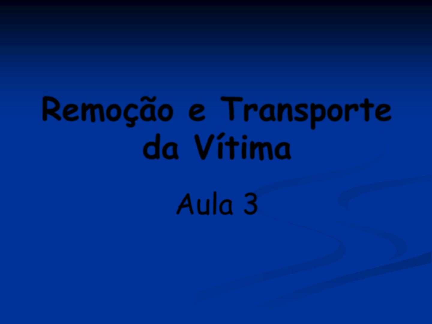 Remoção e Transporte da Vítima Aula 3 Remoção da Vítima As vítimas de trauma só devem ser transportadas se não houver a possibilidade da equipe de atendimento de emergência chegar ao local, essas vítimas devem ser cuidadosamente movimentadas, devido ao risco de agravamentos das lesões, especialmente se houver suspeita de lesão de coluna. Extricação Extricação é um termo muito utilizado em resgate, salvamento e medicina pré-hospitalar em geral. Extricar significa: "retirar uma vítima de um local do qual ela não pode, ou não deve sair por seus próprios meios". Rolar uma vítima para a prancha longa, ou colocação de um colar cervical são manobras de extricação. Em muitas situações, especialmente no caso de acidentes automobilísticos, a extricação da vítima pode ser um processo delicado e complexo. Um típico exemplo é o da vítima presa às ferragens. Nesta circunstância é clássica a máxima: "não retira-se a vítima das ferragens, retira-se as ferragens de entorno à vítima". Para um procedimento de extricação técnico e seguro, além dos cuidados básicos como avaliação da cena, é fundamental a existência de equipamentos e profissionais específicos Indicações Obstáculos físicos Inconsciência Riscos de lesão secundárias Combinação destes fatores Existem duas técnicas: Padrão:cenas seguras e vítimas estáveis Rápida: pacientes instáveis ou na presença de risco no local Encarceramento É o aprisionamento do paciente por obstáculos físicos e ocorre em situações de colisão e desabamentos. As técnicas de desencarceramento visam retirar ferragens e escombros da vítima e não ao contrário. Princípios Gerais da Remoção Um transporte de EMERGÊNCIA deve ser feito quando: O local do acidente oferecer risco iminente Cuidados que precisam de reposicionamento Ter acesso a outros pacientes Situação NÃO Emergencial Regras: 1. O paciente deve estar consciente 2. A avaliação inicial deverá ser completa 3. FC e FR devem estar estáveis 4. Não deverá haver hemorragia externa incontrolável ou indícios de hemorragia interna 5. Nenhum sinal de trauma na coluna Mobilização Termo genérico usado para descrever qualquer procedimento organizado para reposicionar ou transportar uma pessoa de um local para o outro, ou grande número de técnicas para remoção de pacientes. A mobilização é justificada pela necessidade, em situações de emergência, de afastar-se de um local perigoso ou transportar rapidamente um paciente que apresente uma alteração acentuada no seu estado de saúde. Noções de Mecânica Os músculos que devem ser utilizados quando se deseja elevar um objeto são os da coxa, pois são os mais fortes do corpo humano. A musculatura das costas é fraca e mais propensa a lesões secundárias a esforço. Técnicas Manter a coluna ereta antes de elevar um peso, dobrar os joelhos, posicionar –se de bem próximo a vitima, sempre trabalhar em conjunto. Transporte de Pacientes em situações de Emergência Técnicas de mobilização/manipulação Rolamento 90º Rolamento 180º Elevação a Cavaleiro Remoção de Capacete Sempre que movimentar a vítima considerá-la como um bloco único, o corpo não pode ser torcido nem movimentado ântero-posterior ou lateralmente Para girar a vítima, seja para colocá-la deitada de costas para uma avaliação melhor ou evitar aspirações, o movimento deve ser sincronizado e com ajuda de outras pessoas. Rolamento 90º Utilizado para vítimas em decúbito dorsal Técnica 1. Líder estabiliza a cabeça 2. Auxiliar aplica o colar cervical 3. Posicionar a prancha lateralmente a vítima do lado oposto ao do rolamento 4. Dois auxiliares se ajoelham lado a lado no nível dos ombros e joelhos da vítima 5. Rolar a vitima em bloco ao comando ate a posição de decúbito lateral para o lado dos socorrista 6. A prancha é deslizada até encostar no corpo do paciente 7. Ao segundo comando a vítima é devolvida ao decúbito dorsal em bloco sobre a prancha 8. Ajustar a vítima sobre a prancha, mantendo todo o tempo a estabilização manual da cabeça e pescoço 9. Fixar o tronco e extremidades com os cintos de aplicação rápida 10. Aplicar e fixar a cabeça da vitima ao imobilizador lateral ROLAMENTO DE 90º Rolamento de 180º Indicado para vítimas em decúbito ventral Técnica 1. Socorrista atrás da cabeça da vítima realizando estabilização manual 2. Posicionar a prancha paralelamente ao corpo da vítima, do lado para qual o rolamento será realizado( no lado oposto ao qual a cabeça da vítima está voltada) 3. Os dois auxiliares se colocam sobre a prancha no nível de seus ombros e quadril 4. Após o comando, rolar a vítima em bloco 90ºpara o lado da prancha, deixando –a em decúbito lateral 5. Os auxiliares saem da prancha se ajoelhando no solo 6. Ao novo comando rola-se a vítima sobre a prancha 7. Aplicação do colar e fixação Elevação a Cavaleiro Indicação Vítimas encontradas em decúbito dorsal nas quais não é possível se posicionar ao seu redor Técnica 1. O socorrista se posiciona a cavaleiro no nível dos ombros da vítima estabilizando manualmente sua cabeça e pescoço 2. O Colar cervical é aplicado e a prancha é posicionada próximo aos pés do paciente 3. O segundo auxiliar se posiciona a cavaleiro no nível do quadril da vítima 4. O terceiro auxiliar se posiciona a cavaleiro ao nível das pernas 5. Após comando a vítima é elevada até a metade da amplitude. 6. O quarto auxiliar desliza a prancha por baixo do corpo da vítima e após novo comando o paciente é posicionado na prancha Retirada do Capacete Técnica empregada para retirada do capacete , a fim de facilitar a avaliação e tratamento de possíveis lesões que o paciente possa apresentar Contra indicações: 1. Quando ao menor toque o paciente sentir dor 2. Quando houver objetos transfixados 3. Quando há presença de rachaduras recentes Técnica São necessários dois socorristas O socorris