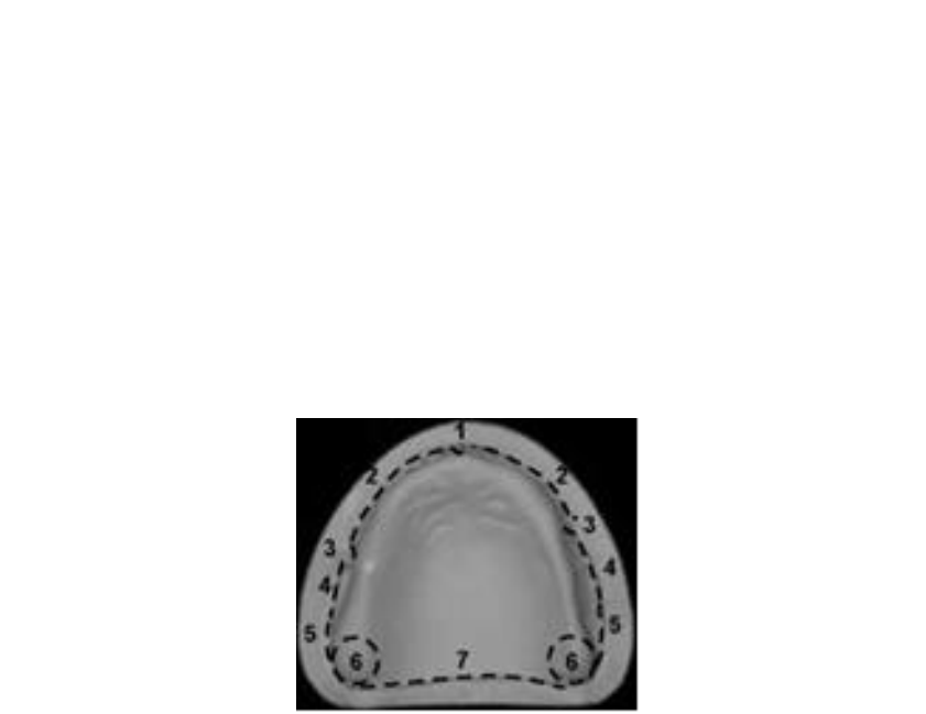 Aula 4- PT- Zonas de Suporte em Prótese Total 26/02/2018 -Área chapeável: Área Chapeável é definida por toda a área tecidual que será recoberta pela base da dentadura, ou seja, toda área de resina acrílica que vai estar em contato com a fibromucosa. • Partes constituintes da área chapeável superior: 1-Freio Labial superior 2-Sulco vestíbulo- labial anterior 3-Freio lateral 4-Processo zigomático da maxila 5-Espaço retro-zigomático 6-Túber da maxila 7- Linha do Ah! (limite entre palato duro e palato mole) -obs.: é importante ter uma adaptação e vedamento completo dessa região, para que não entre ar entre a PT e a mucosa e a prótese caia. Existem 3 tipos de relação entre palato mole e palato duro: Tipo 1- Tenho palato duro e palato mole contidos Tipo 2- Pequena angulação entre palato mole e palato duro Tipo 3-Angulação quase de 90° entre palato duro e palato mole *A importância de saber isso é que se eu tiver uma relação tipo 1, por exemplo, eu posso sobre estender um pouco o limite posterior dessa PT pra aumentar a área que vai ser recoberta, para que no final a prótese tenha uma estabilidade um pouco maior. Se eu tenho uma relação do tipo 3, ou seja, uma angulação de 90° (mais ou menos) entre palatos duro e mole, não consigo sobre estender a PT além desse limite, e provavelmente vou ter uma prótese que não tem retenção tão boa quanto uma prótese feita em cima de uma relação tipo 1 de palato duro e palato mole. • Partes constituintes da área chapeável inferior 1-Sulco vestíbulo- anterior 2-Freio lateral 3-Linha oblíqua externa (inserção do masseter) 4-Região disto lingual 5-Linha milo-hioidea 6-Sulco alvéolo-lingual 7-Freio lingual 8- Papila piriforme 9-Fossa retro-milo-hioidea (entrada do nervo alveolar inferior na mandíbula) • Subdivisões da área chapeável 1. Zona de suporte primário: Inclui o rebordo residual desde o ponto de inserção dos músculos por vestibular, até os tecidos compressíveis da face lingual ou palatina. *A crista é considerada uma área de suporte primário porque toda vez que o paciente mastigar, a transmissão de esforço vai correr de forma perpendicular, então toda região plana da área chapeável vai ser uma área de suporte primário, pois ela é responsável por receber forças mastigatórias no sentido perpendicular. Área plana: área de rebordo, crista de rebordo, tanto na maxila quanto mandíbula e principalmente as áreas posteriores, porque é um osso mais compacto e além disso tem a região de rafe palatina, que são áreas planas. Isso é o que define uma zona de suporte primário, é a que vai receber os esforços mastigatórios de forma perpendicular. 2. Zona de suporte secundário: Na maxila, inclui todo o palato duro, com exceção da área de alívio, estando limitada posteriormente pelos tecidos moles do palato mole, e a vertente vestibular do rebordo alveolar. Na mandíbula, compreende as vertentes vestibulares e linguais dos rebordos, até próximo ao fundo de sulco e do soalho da boca. Engloba a linha oblíqua externa e as linhas horizontais do músculo bucinador que suportam a prótese. *É toda área mais arredondada, que não é plana, ou seja, que tem da parte da crista até a rafe palatina, essa região de fundo de sulco até crista não é uma área plana. Então toda vez que um paciente fizer algum esforço mastigatório, a força vai incidir na PT, a PT faz o movimento único e na hora que esse esforço nessa região for transmitido pro osso alveolar, vai haver uma angulação e essa angulação não é mais um esforço perpendicular, tem um aumento de força nessa região e então é considerada uma área de suporte secundário. Envolve toda região vestibular e toda região lingual dos rebordos. Essa região vai ser importante para estabilizar a prótese no sentido látero-lateral. Toda área de vertente de rebordo vestibular e lingual é uma área que é paralela e ela vai ser responsável por estabilizar a prótese nesse sentido (látero-lateral), ela não vai receber forças no sentido perpendicular. Então dessa forma se diferencia uma área de suporte primário de uma de suporte secundário. 3. Zona do selado periférico: Tanto para a maxila quanto para a mandíbula, compreende a faixa de 2 a 3 mm da mucosa móvel que contorna toda a volta da área chapeável. *Regiões que vão ser importantes para que haja vedamento da PT. Quando se chega nessa região de fundo de sulco há a transição: termina o tecido ósseo e a região de fundo de sulco tem as inserções musculares. Então toda essa região que termina o rebordo e começa essas inserções musculares de lábios e bochechas são chamadas de zona de selado periférico. Nessa zona é feito um tipo de moldagem para que se consiga obter uma pressão seletiva dessa região e aí finalmente entramos na moldagem final da PT que deve ser feita através de uma pressão seletiva. Toda a parte anterior de fundo de sulco vestibular é considerada zona de selado periférico e na mandíbula é toda parte vestibular de fundo de sulco e além disso, a parte interna onde tem o assoalho da cavidade oral. 4. Zona do selado posterior: Para a maxila, é a zona que fica na parte posterior da área chapeável, limitada pela divisa entre os palatos duro e mole. Para a mandíbula, se localiza até 2/3 da papila piriforme ou englobando-a. Nessa zona não há mais a transição de fundo de sulco (tecido ósseo e depois musculatura). Na maxila temos a linha do Ah! E nessa zona é feita uma moldagem específica para que possa haver um travamento dessa região e que não tenha nenhum espaço para penetração de ar, para que não haja a quebra do vedamento entre a saliva e a mucosa. Na mandíbula temos a região onde se localiza a papila piriforme. 5. Zona de alívio: Compreendem as áreas que deverão ficar livre dos esforços oriundos das próteses. Áreas retentivas: Papila Incisiva; Forames; Rafe do palato; Fóveas palatin